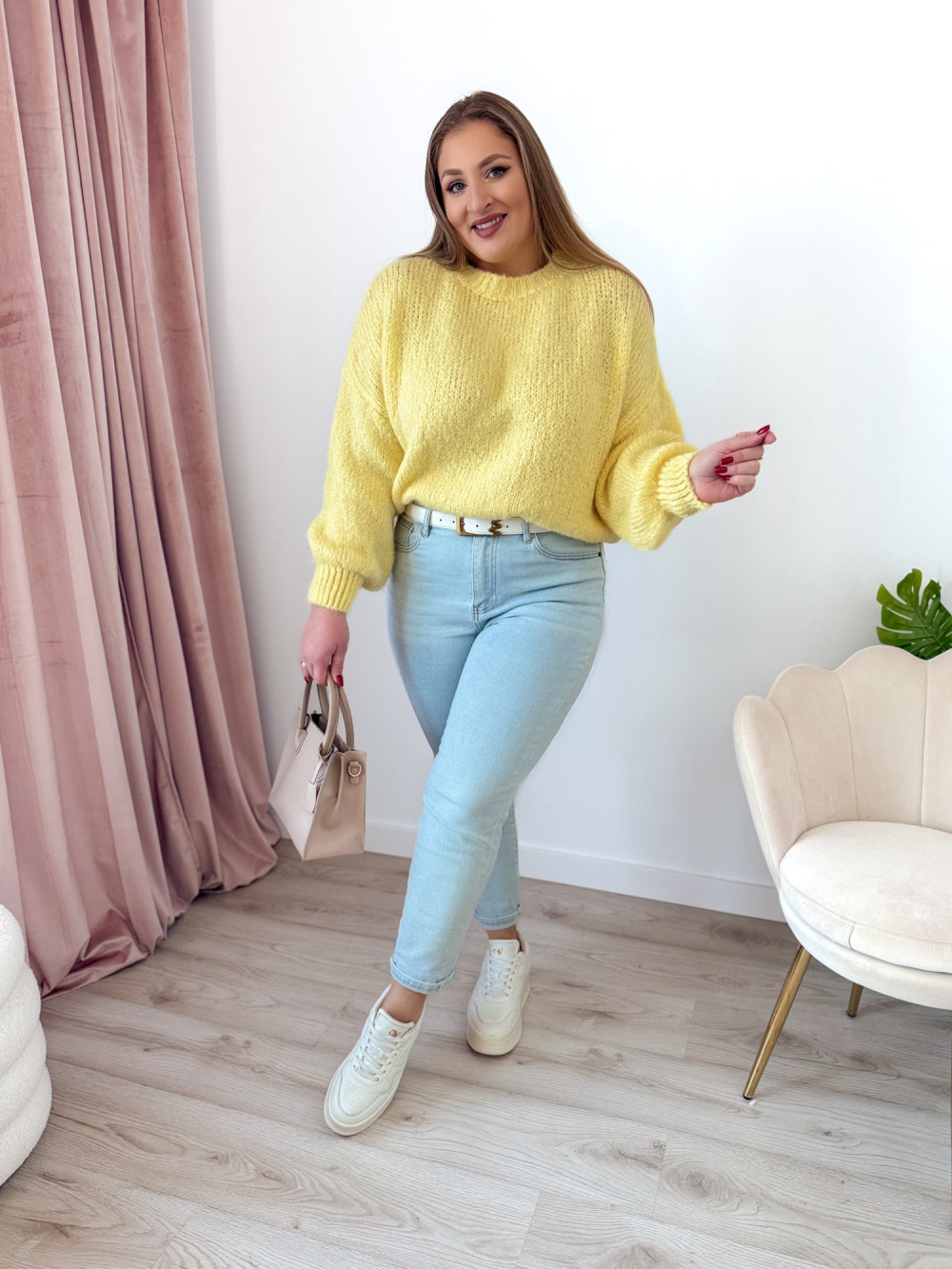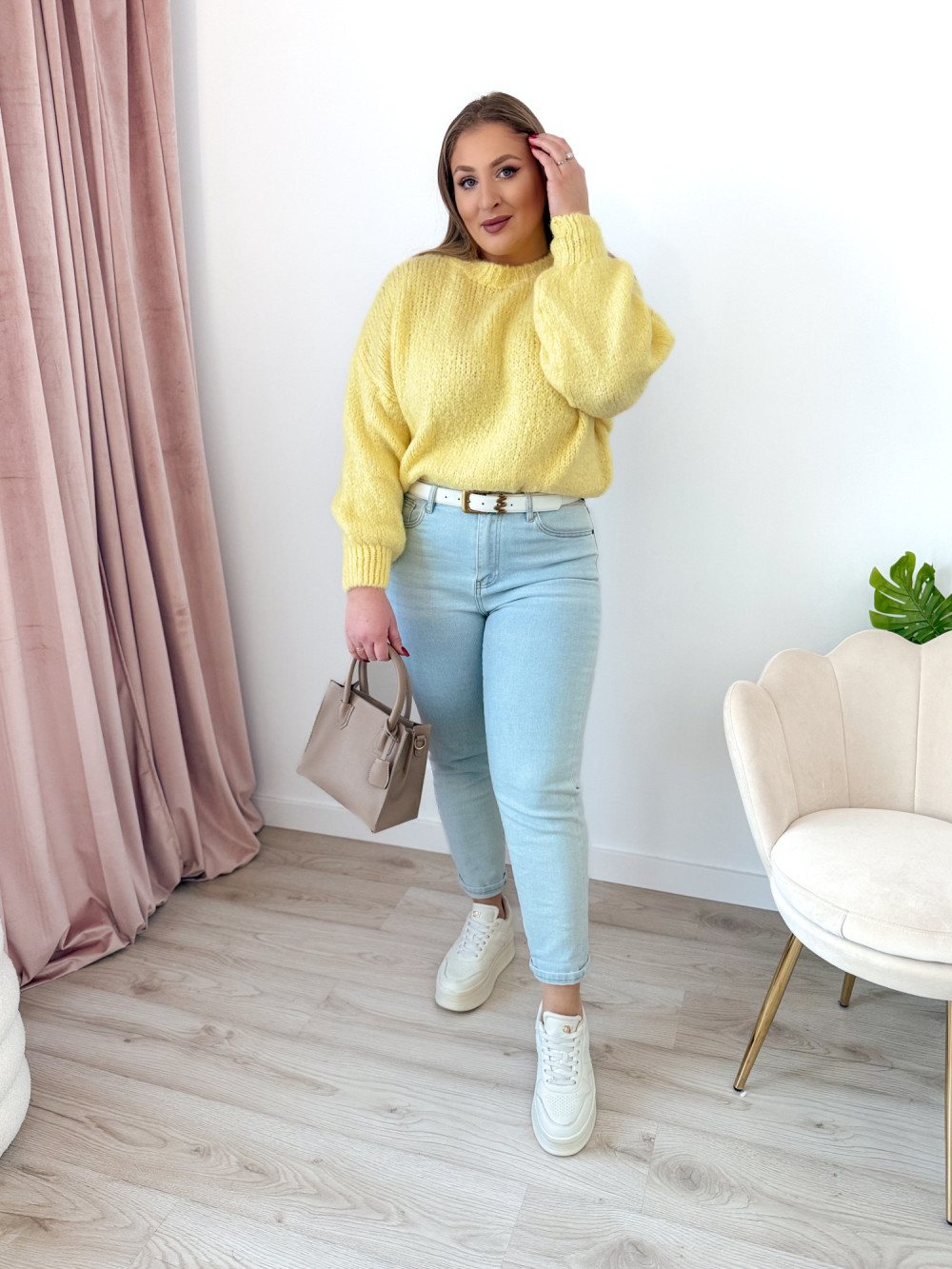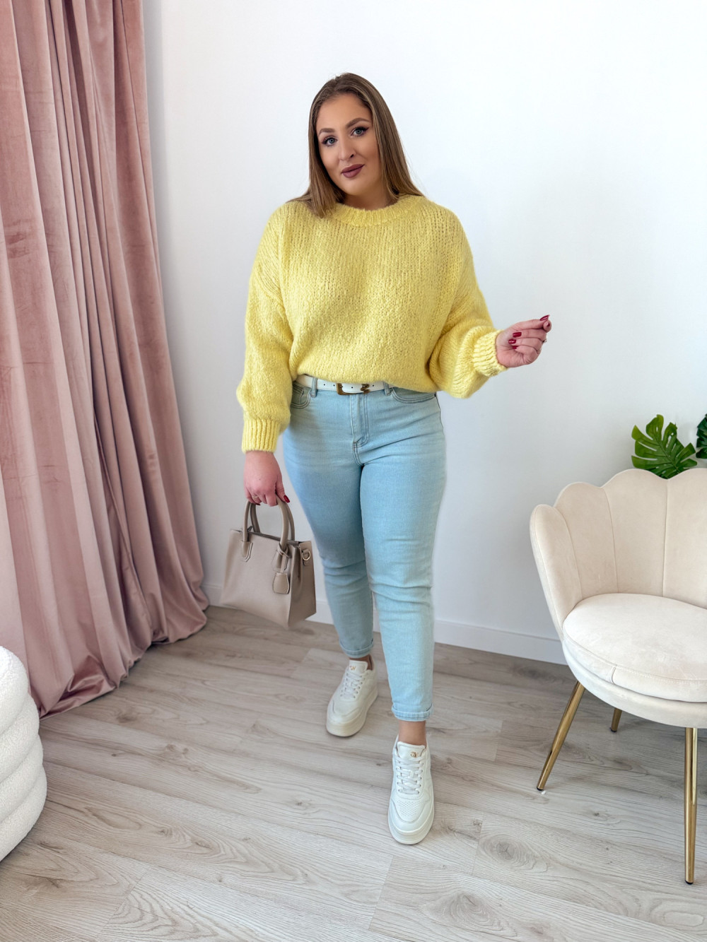 Sweter o fasonie oversize to idealna propozycja dla osób ceniących wygodę i modny, swobodny styl. Klasyczny okrągły dekolt oraz długi rękaw sprawiają, że model jest uniwersalny i doskonale sprawdzi się w codziennych stylizacjach. Wykonany w 65% z akrylu, sweter jest miękki, lekki i przyjemny w noszeniu, a jednocześnie łatwy w pielęgnacji. Świetnie komponuje się zarówno z jeansami, jak i legginsami czy spódnicą.
