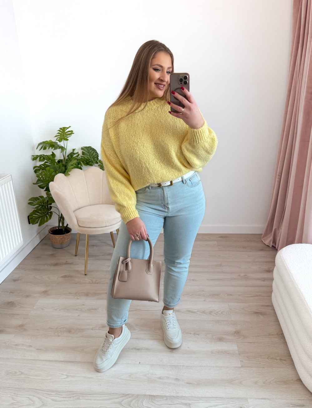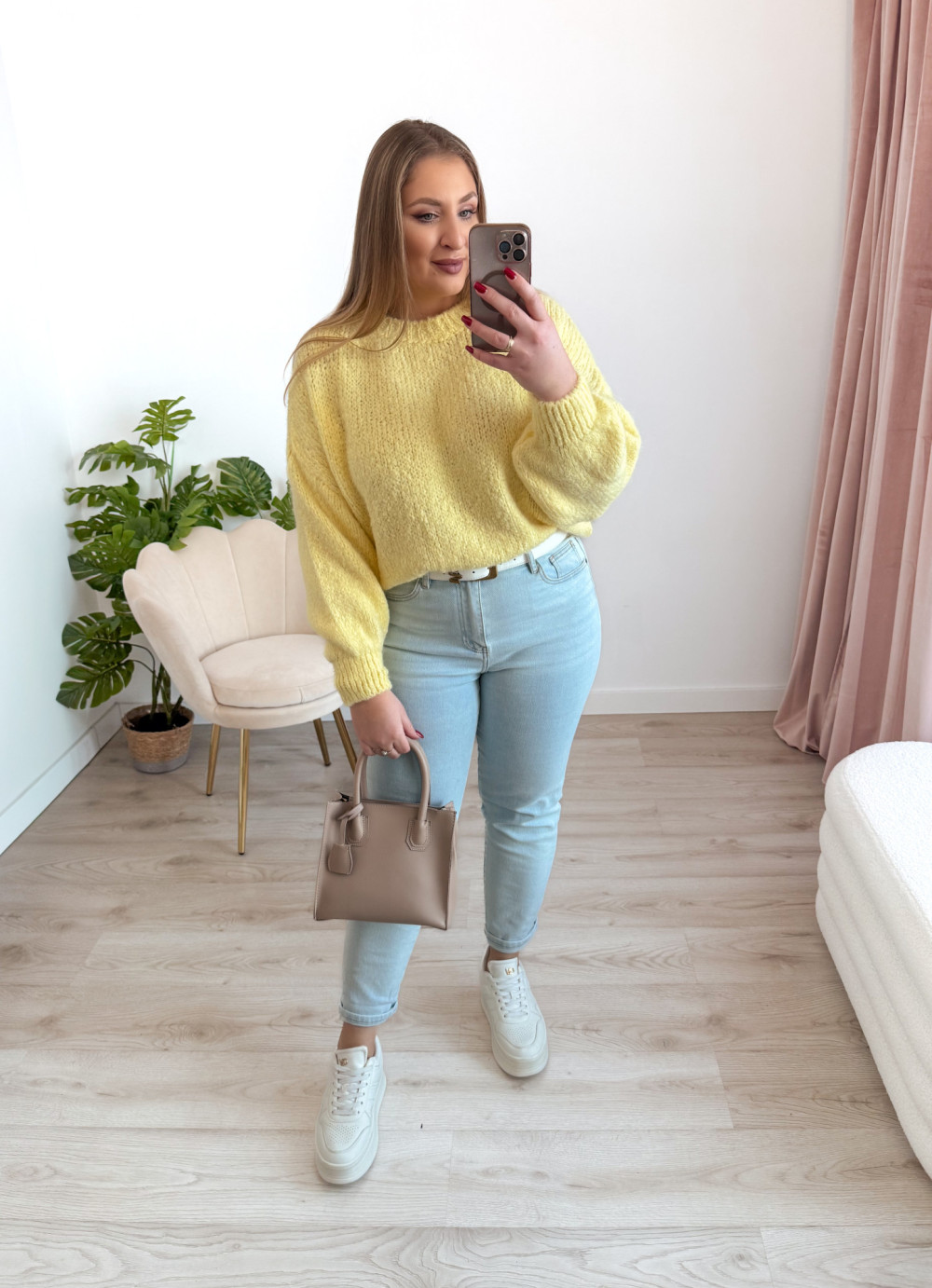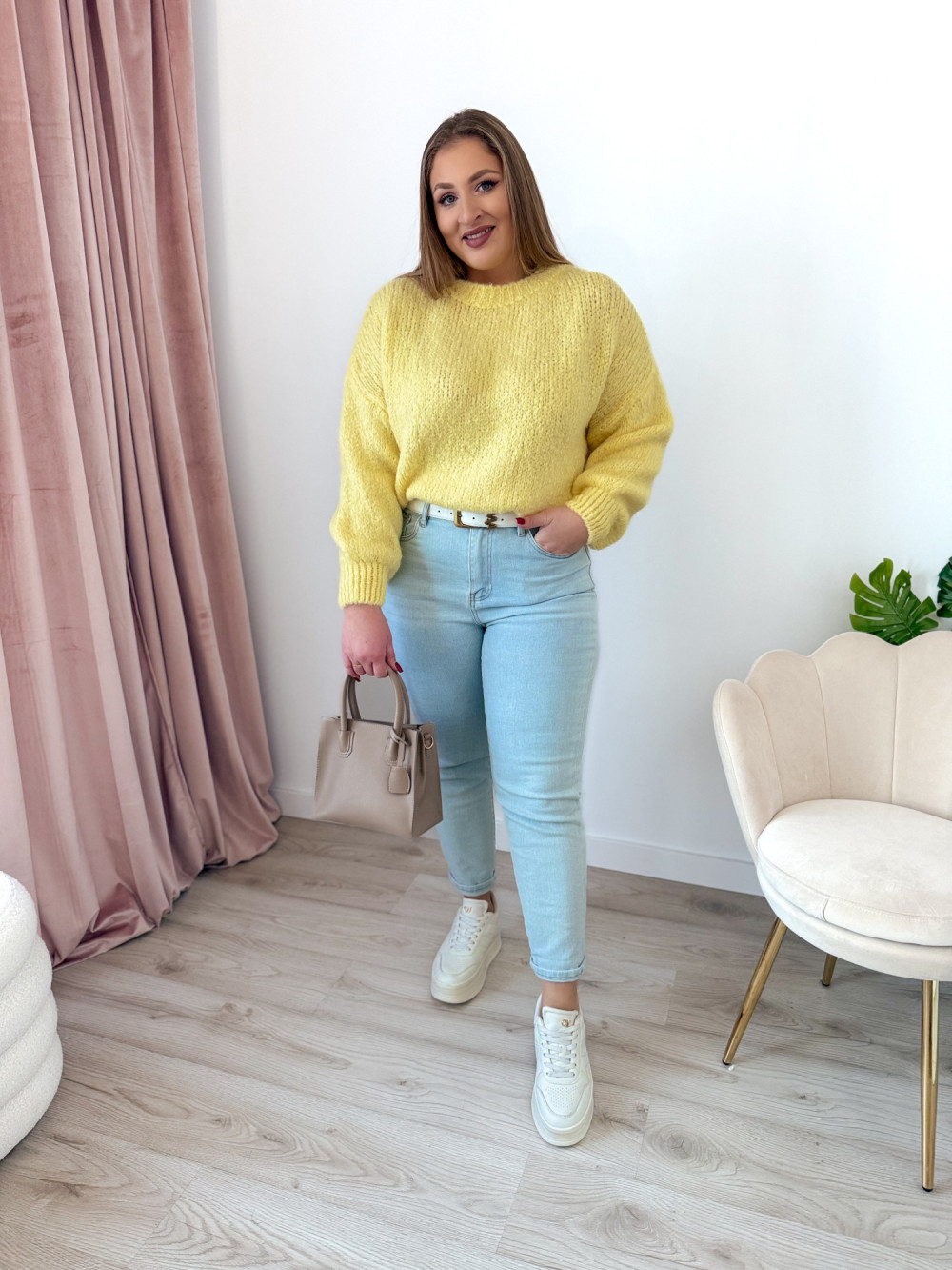 Sweter o fasonie oversize to idealna propozycja dla osób ceniących wygodę i modny, swobodny styl. Klasyczny okrągły dekolt oraz długi rękaw sprawiają, że model jest uniwersalny i doskonale sprawdzi się w codziennych stylizacjach. Wykonany w 65% z akrylu, sweter jest miękki, lekki i przyjemny w noszeniu, a jednocześnie łatwy w pielęgnacji. Świetnie komponuje się zarówno z jeansami, jak i legginsami czy spódnicą.