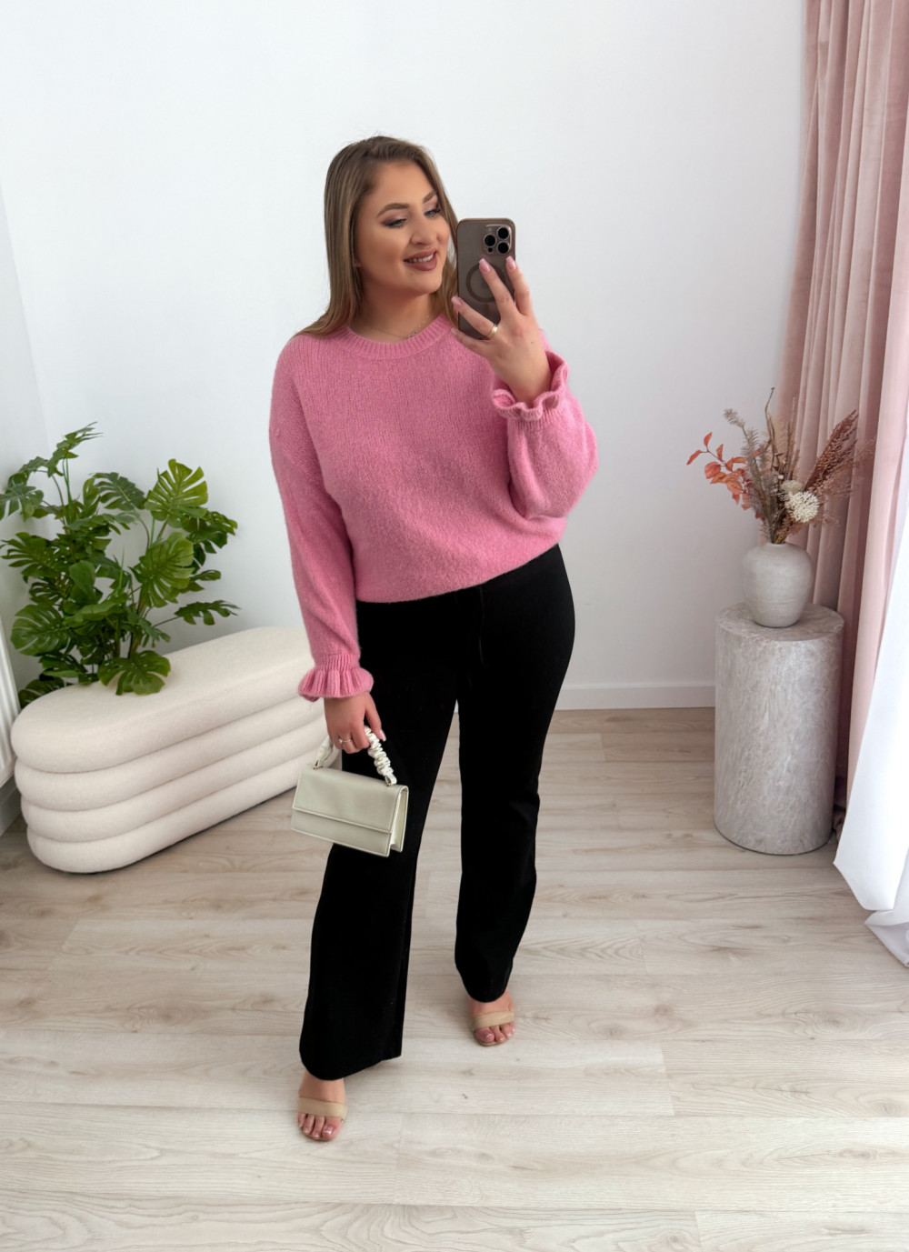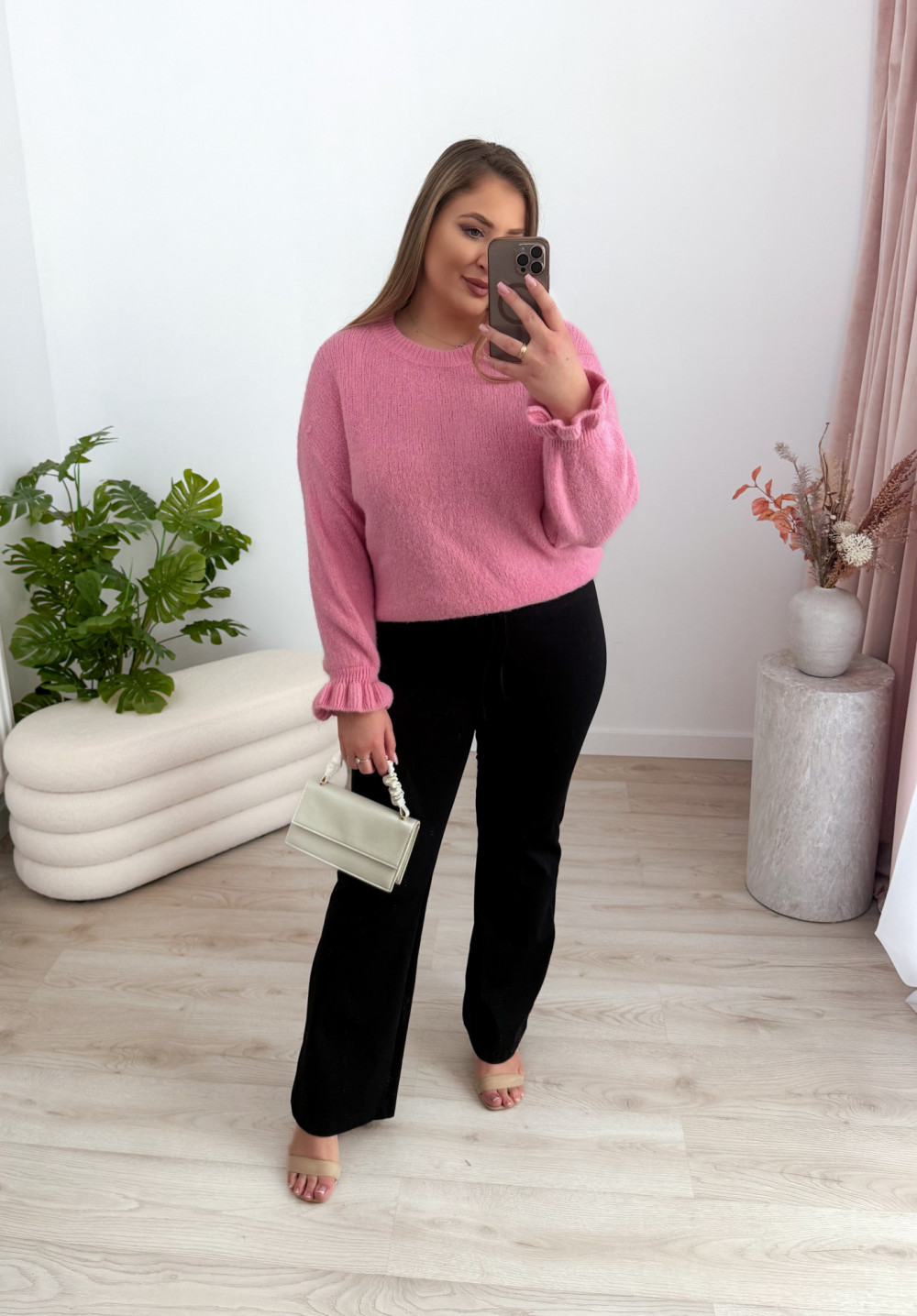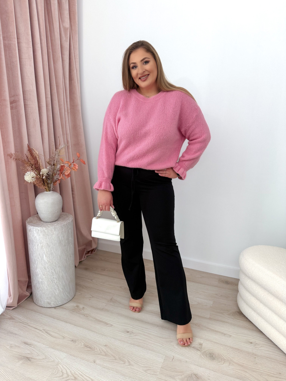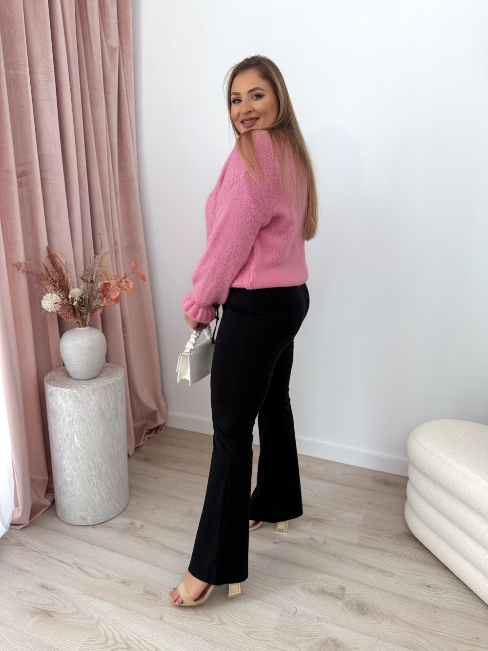 - modny krój dzwonów optycznie wydłużający nogi