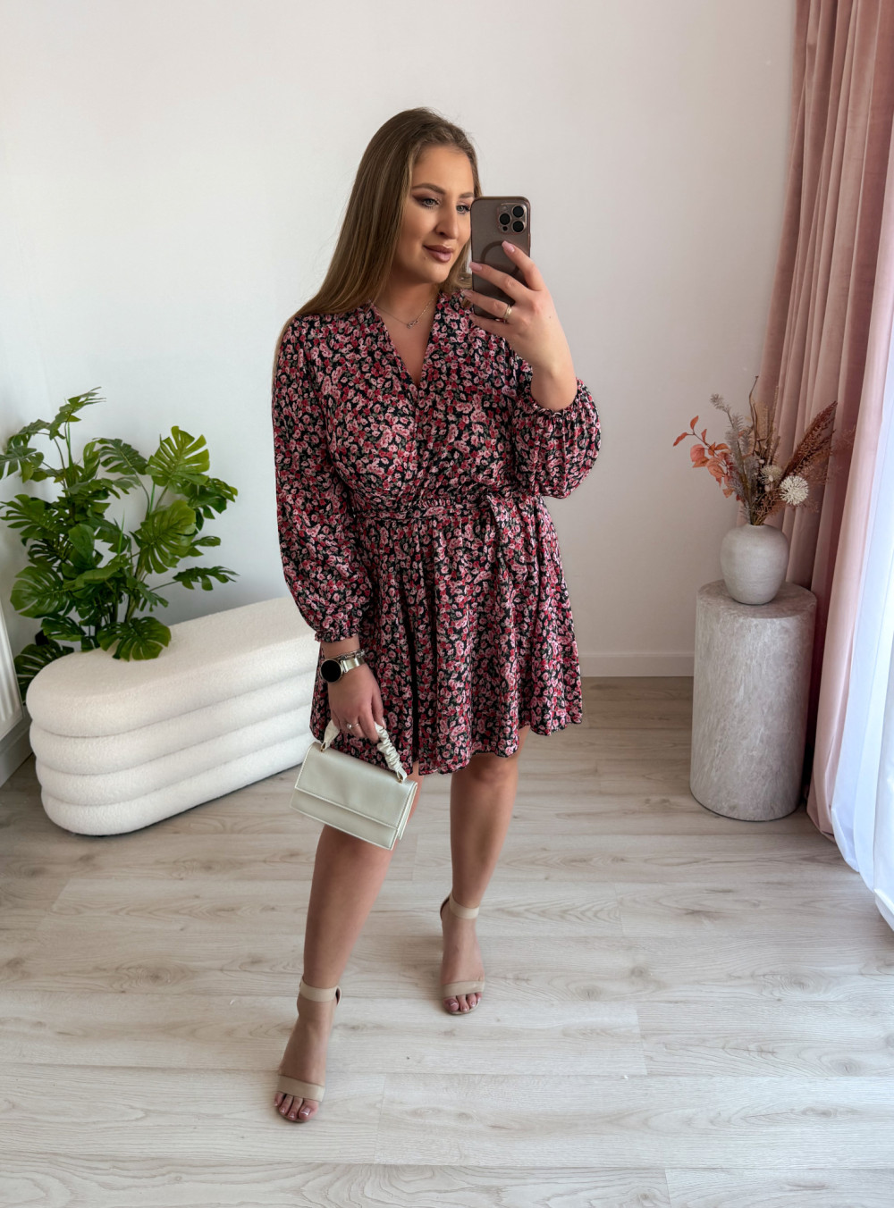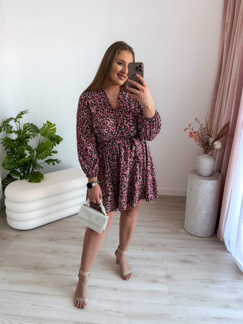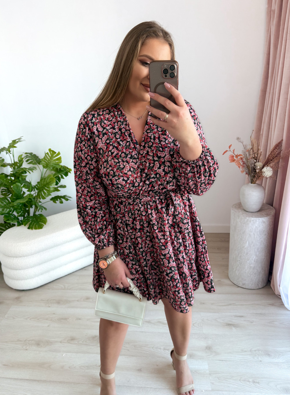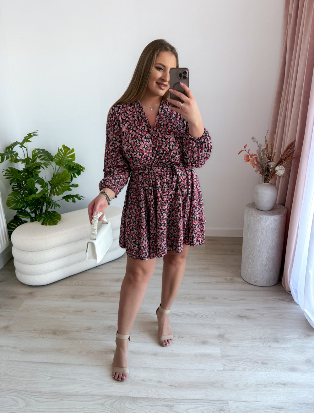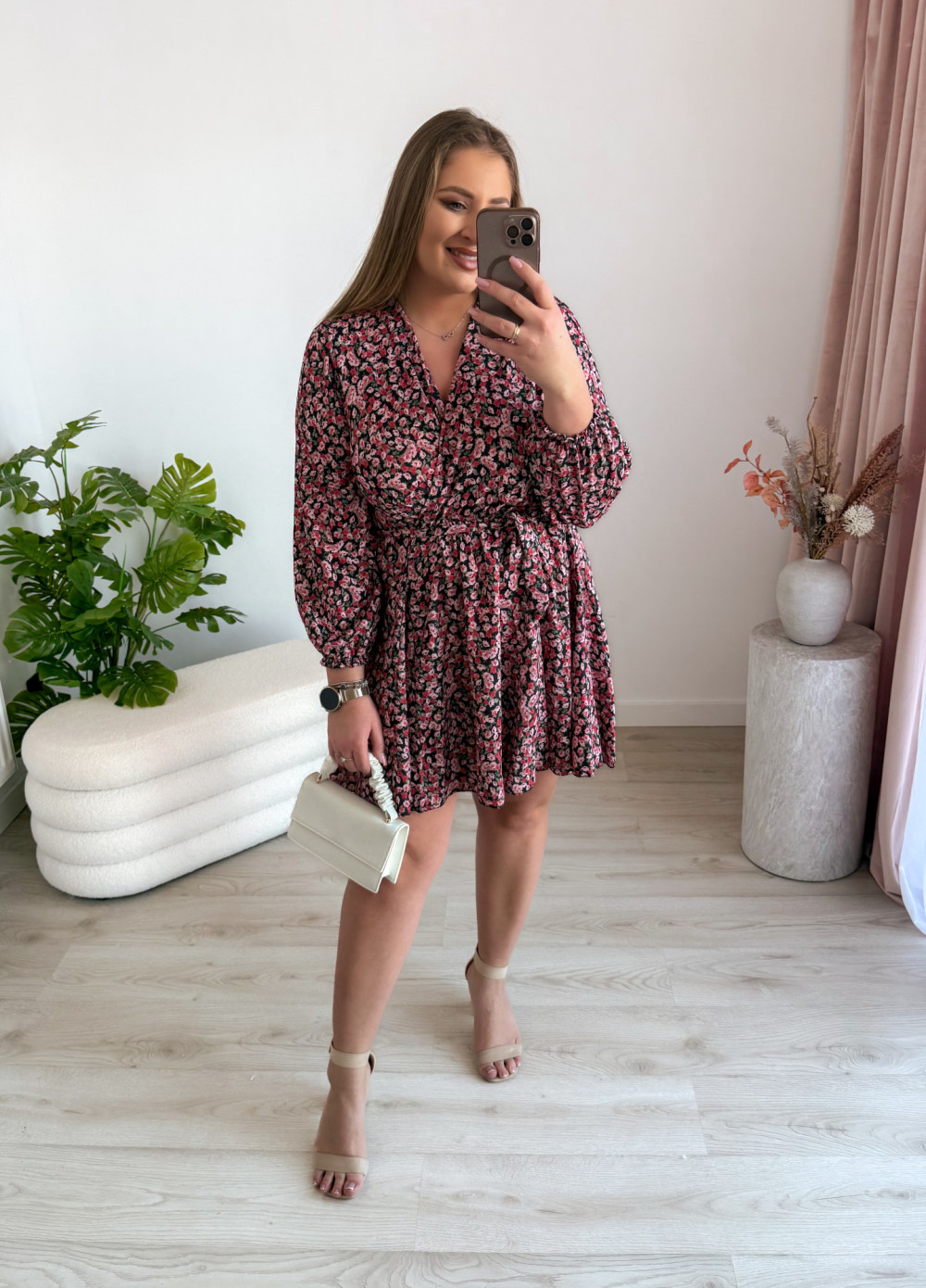 Sukienka krótka czarna w czerwono-różowe kwiatki Amari