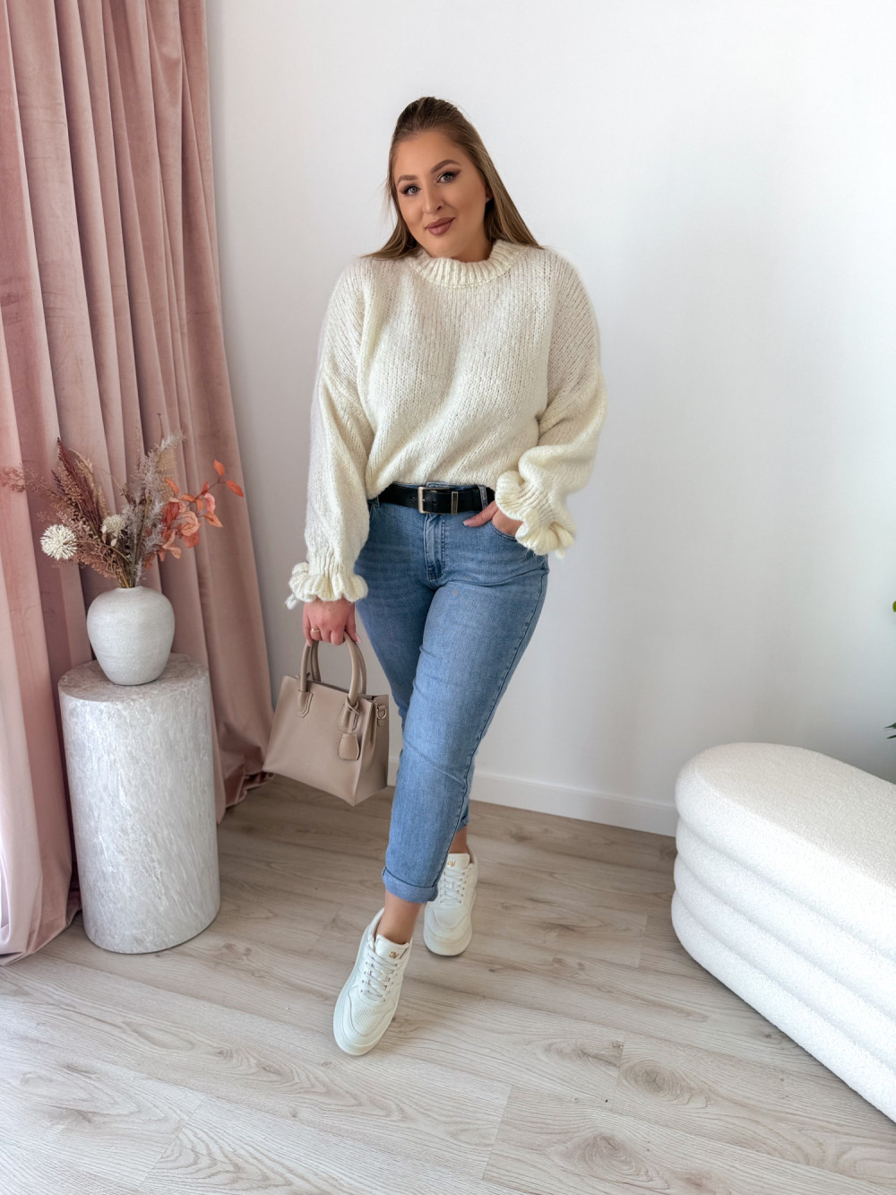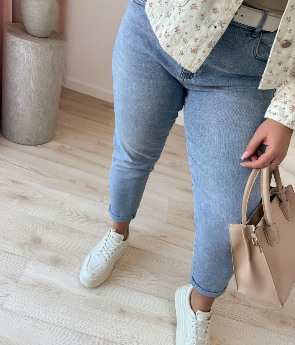 Stylowe spodnie mom fit, które łączą luz z kobiecym krojem. Idealne na co dzień, kiedy chcesz wyglądać modnie i czuć się komfortowo.