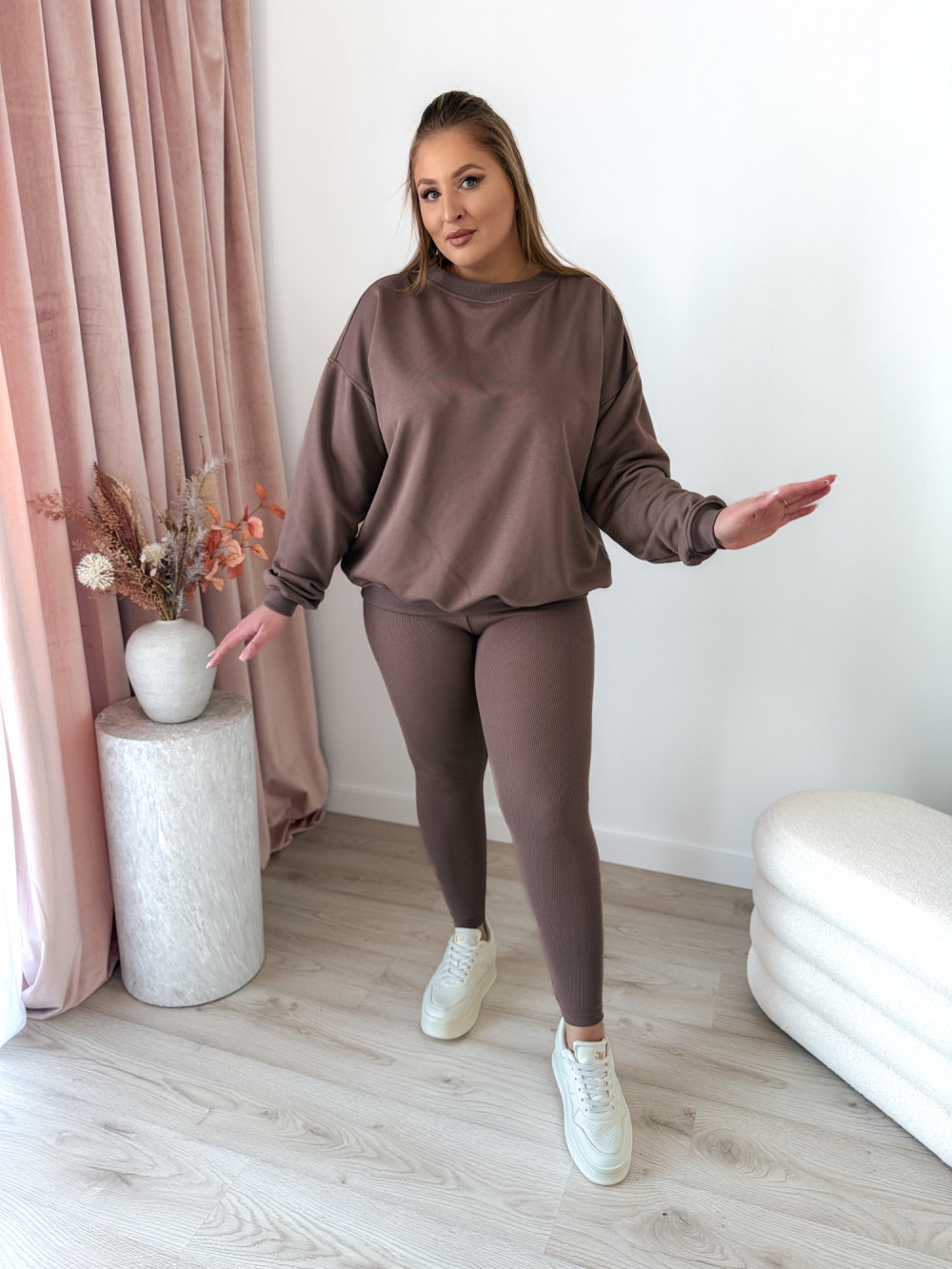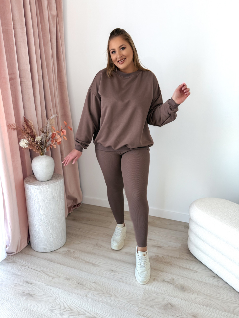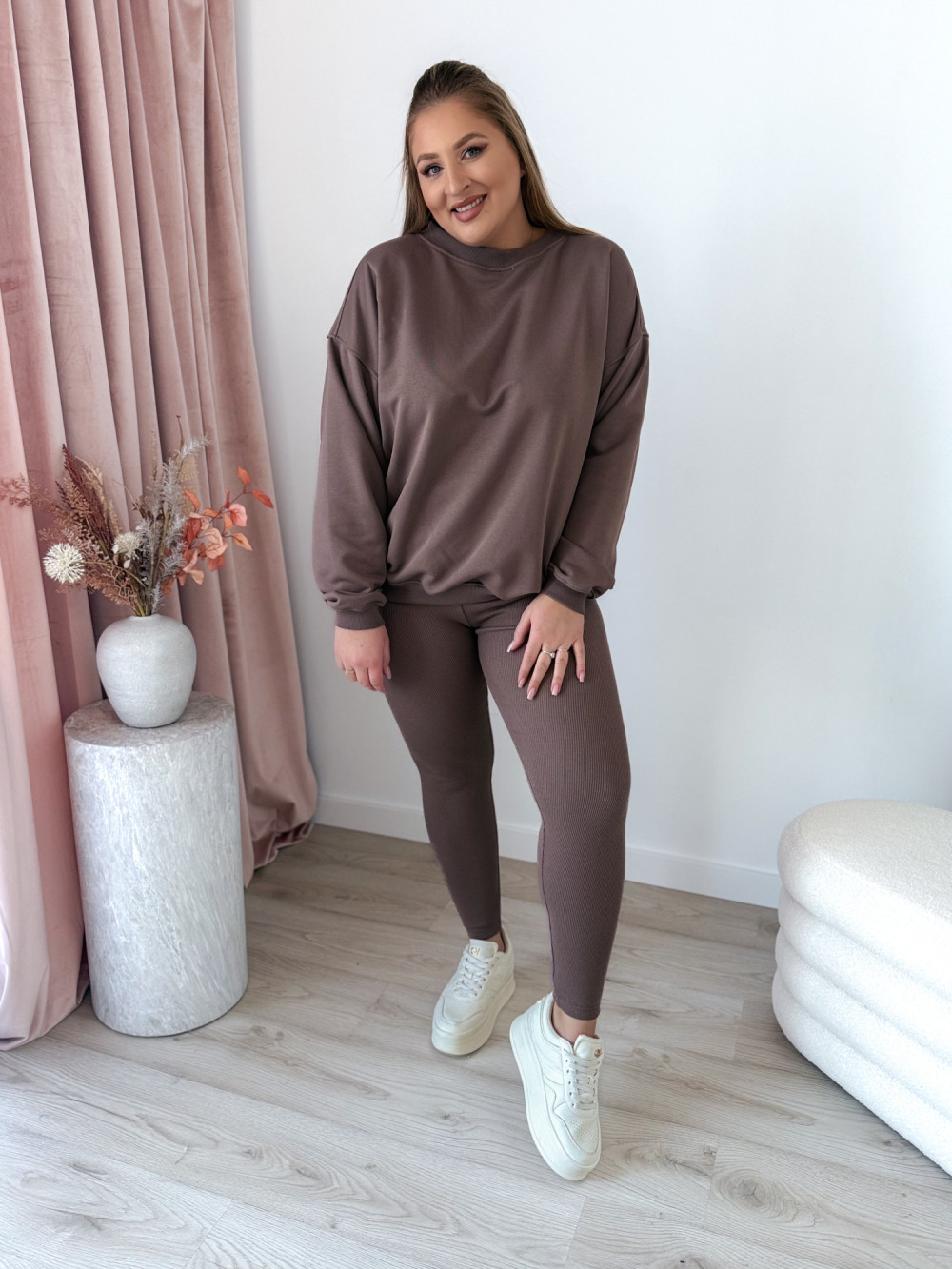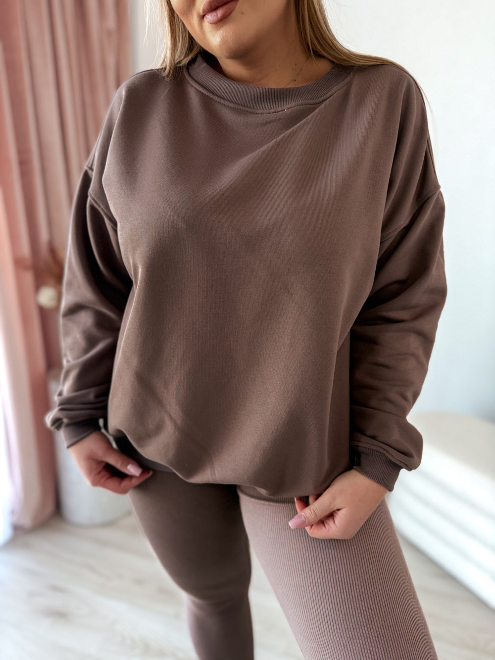 Komplet bluza oversize+prążkowane legginsy Moment Set - mokka