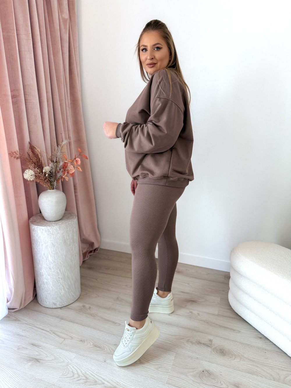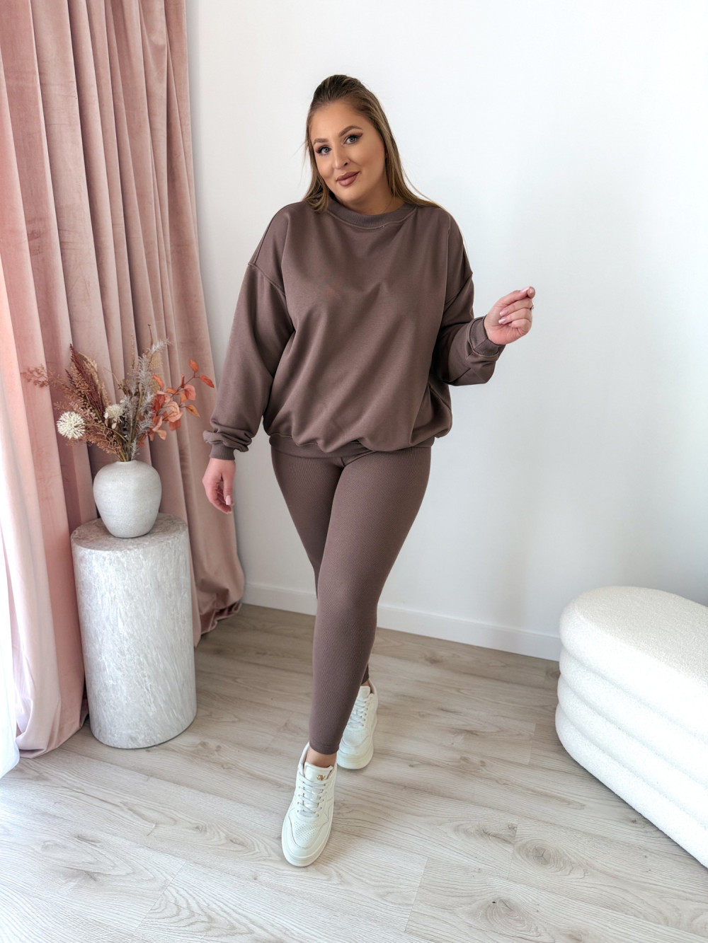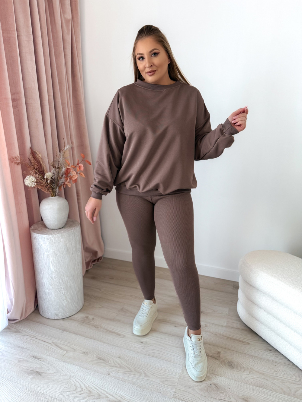 Komplet bluza oversize+prążkowane legginsy Moment Set - mokka