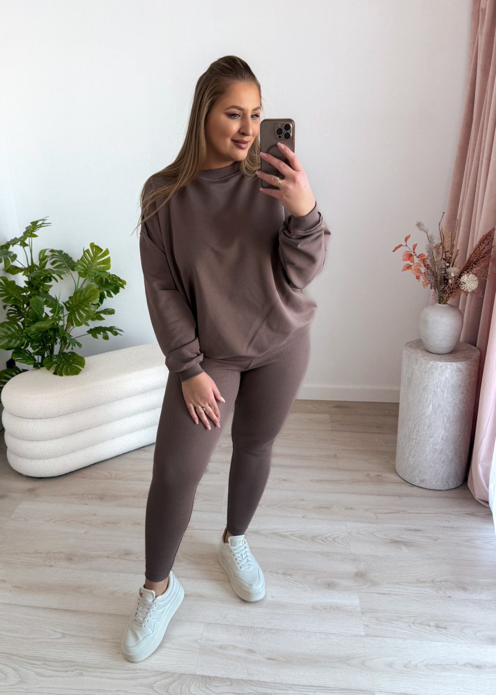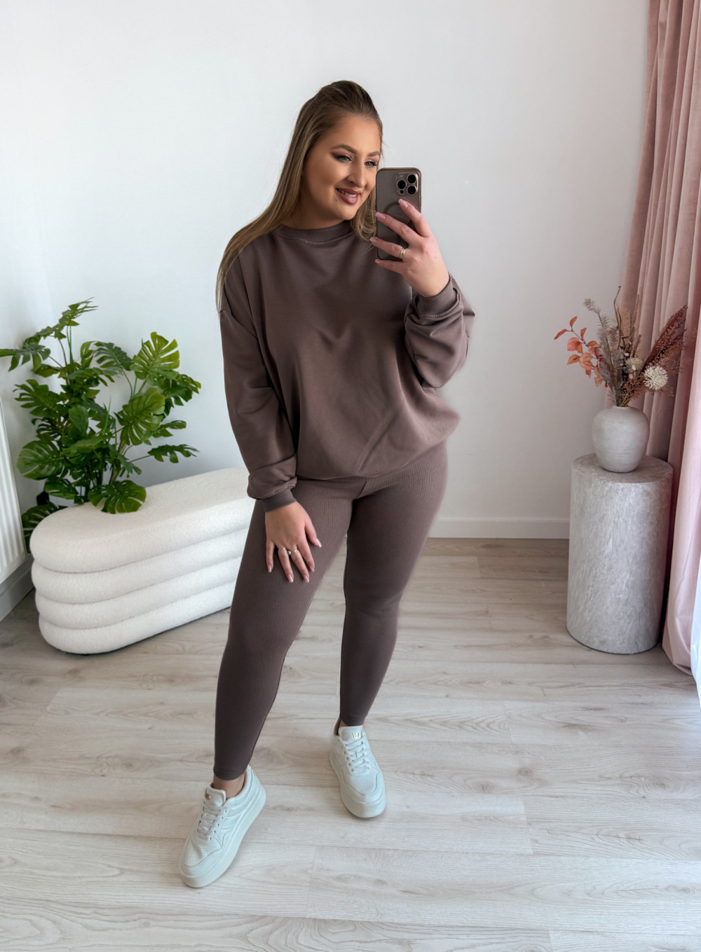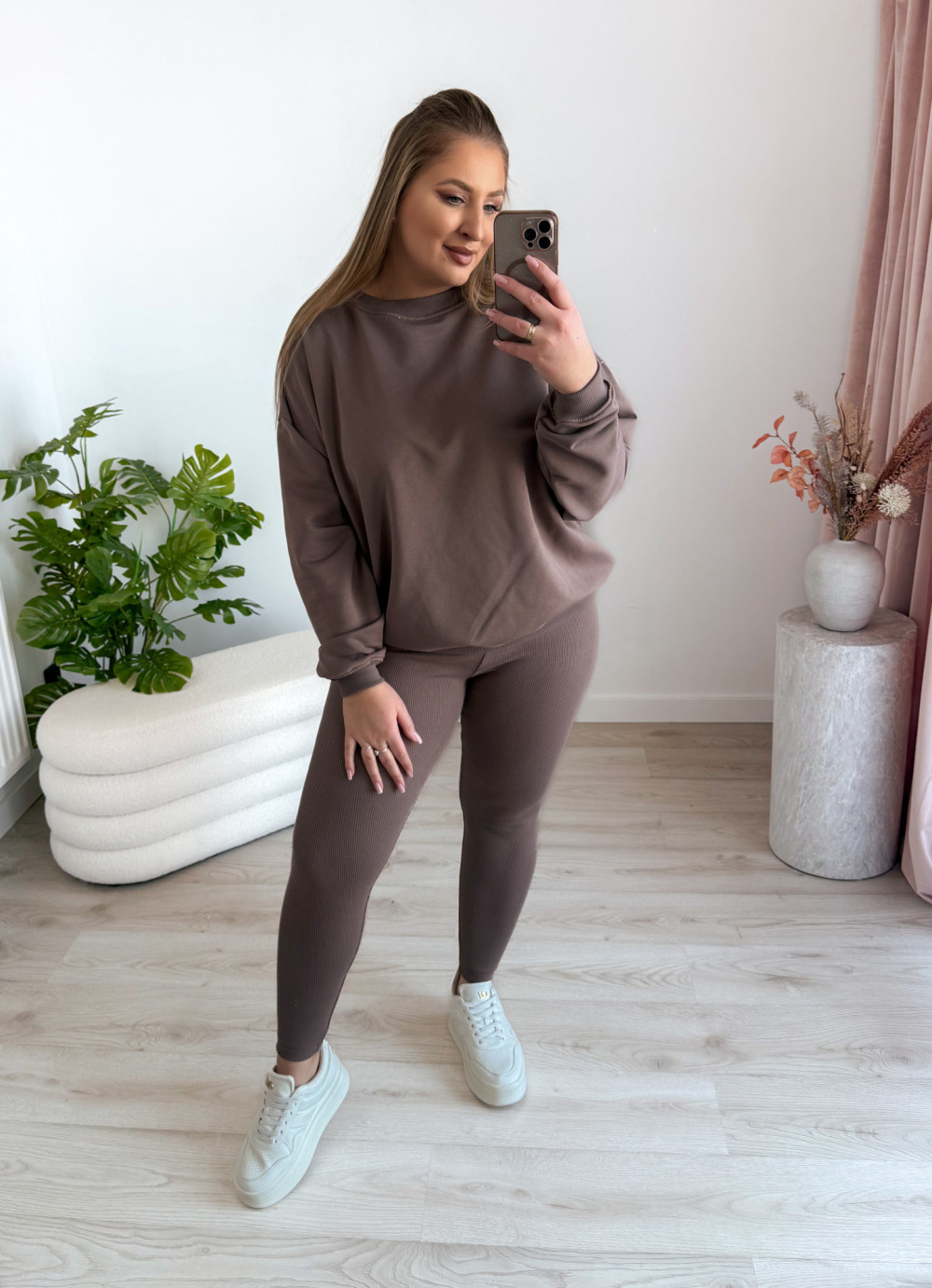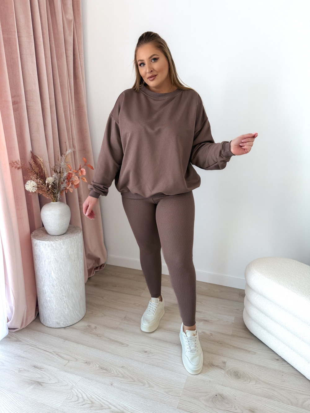 Komplet bluza oversize+prążkowane legginsy Moment Set - mokka