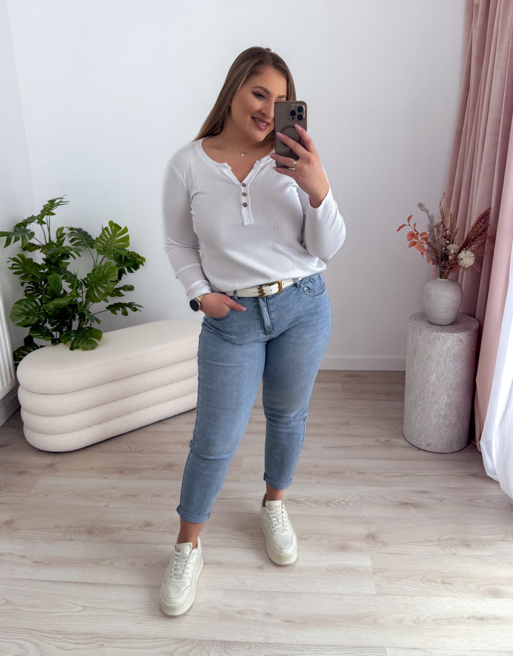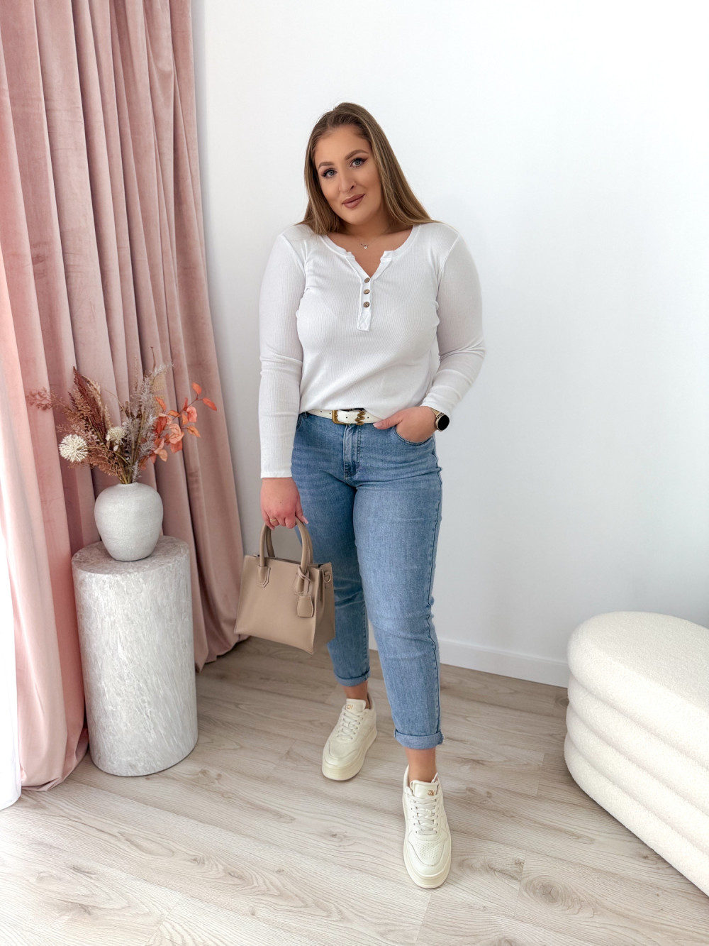 - Świetnie komponuje się z jeansami, spódnicami czy szortami, tworząc prosty, a zarazem stylowy look.