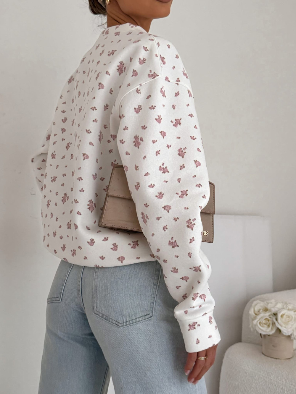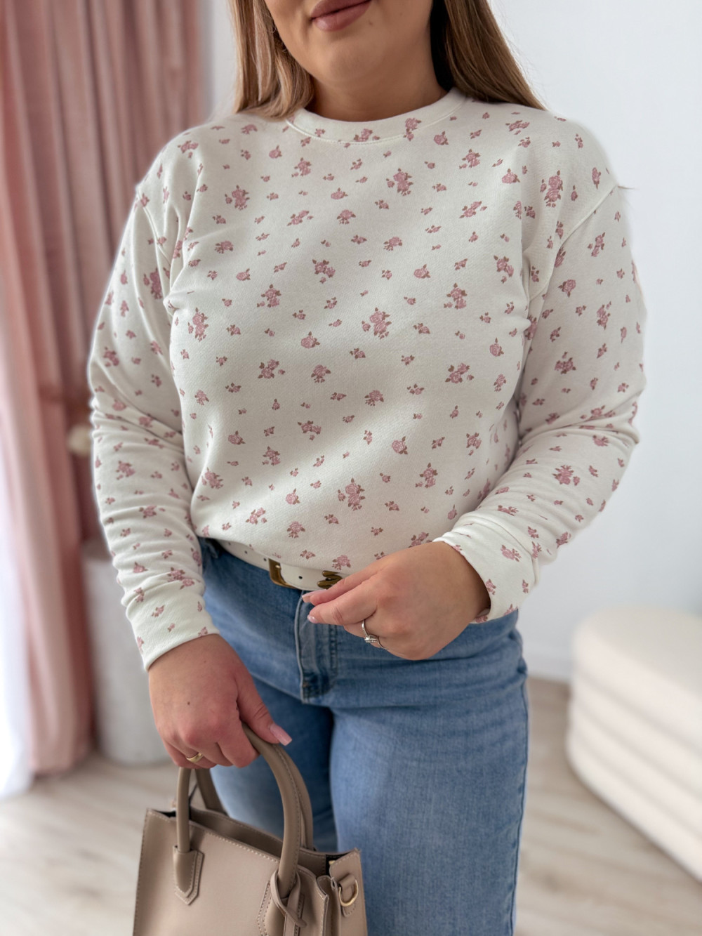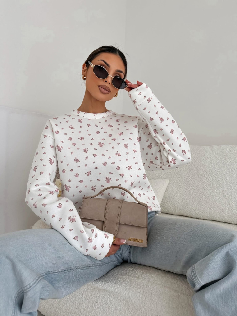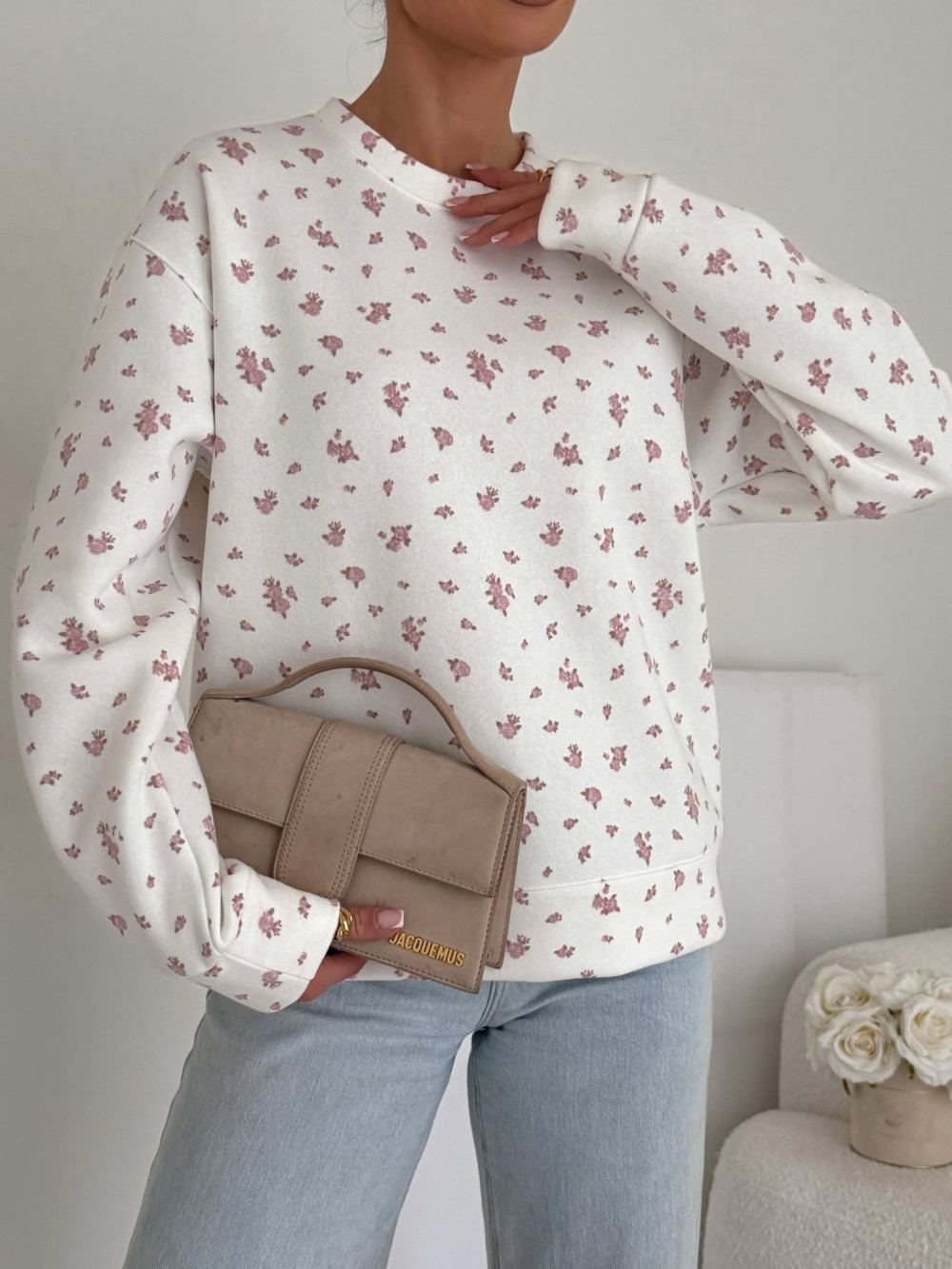 Ta bluza z motywem drobnych kwiatków to wygodna i urocza propozycja na codzienne stylizacje w wiosennym klimacie. Klasyczny fason z okrągłym dekoltem i długim rękawem zapewnia komfort i łatwość w noszeniu, a delikatny kwiatowy wzór dodaje subtelnego uroku.
