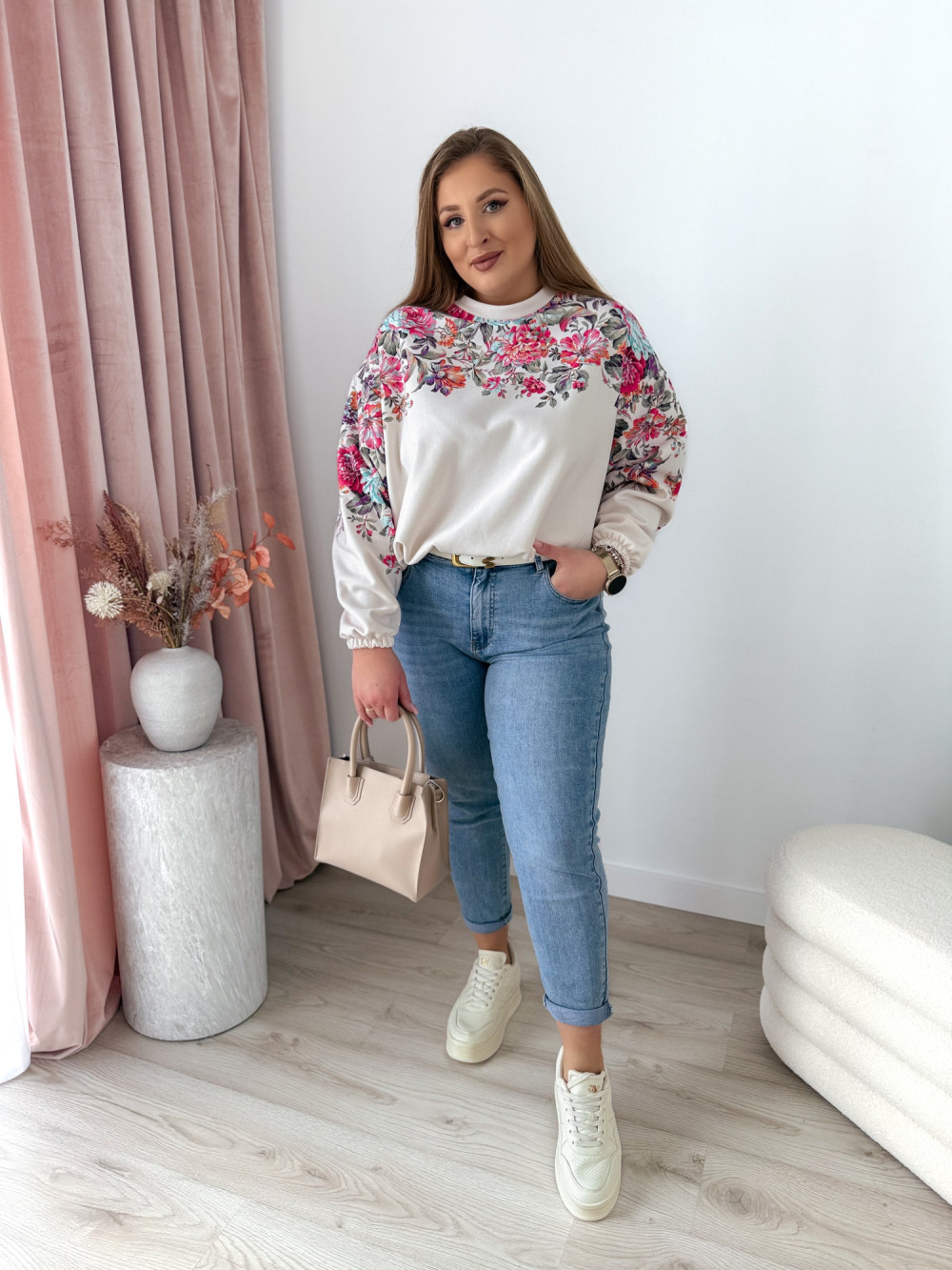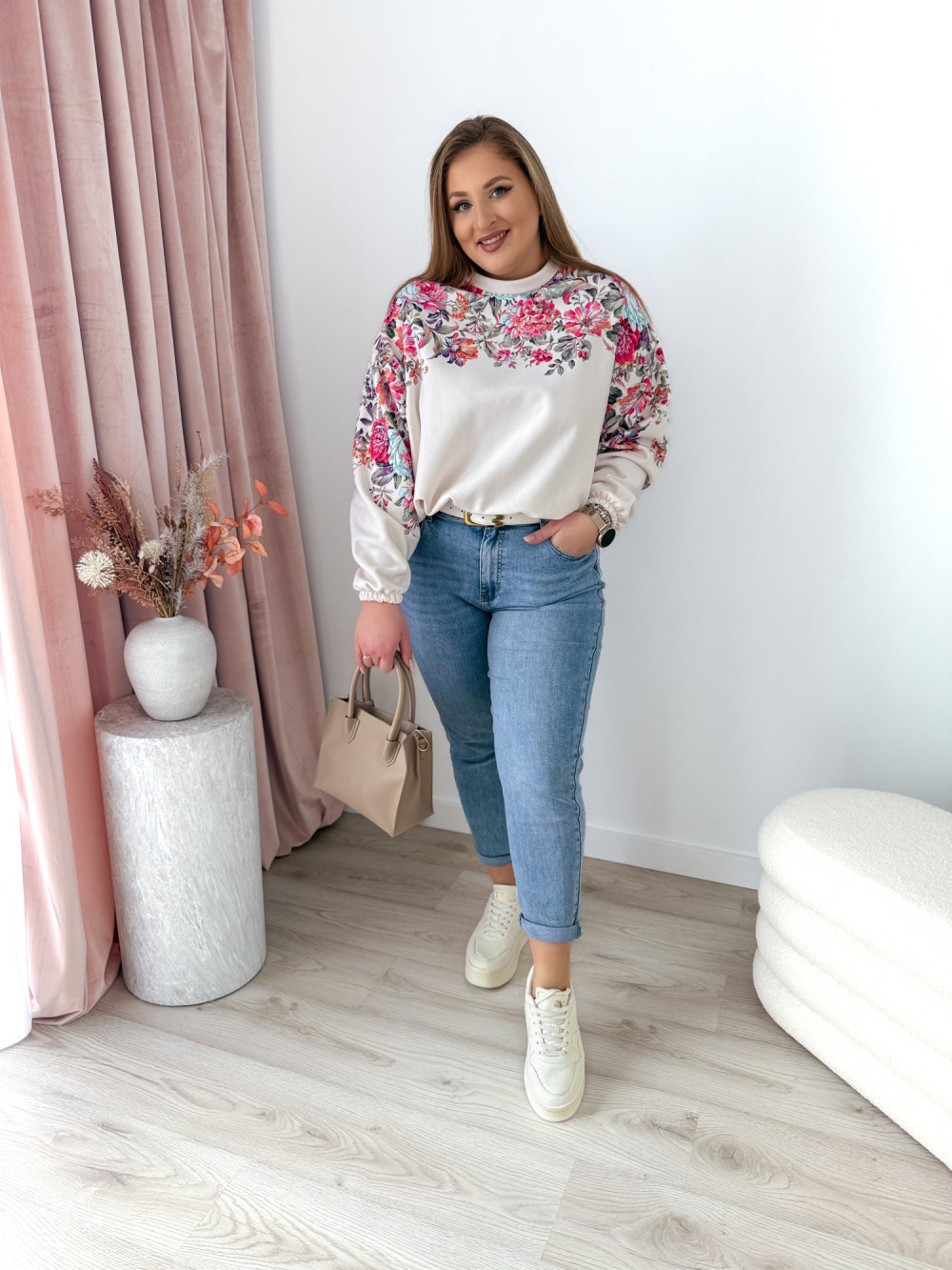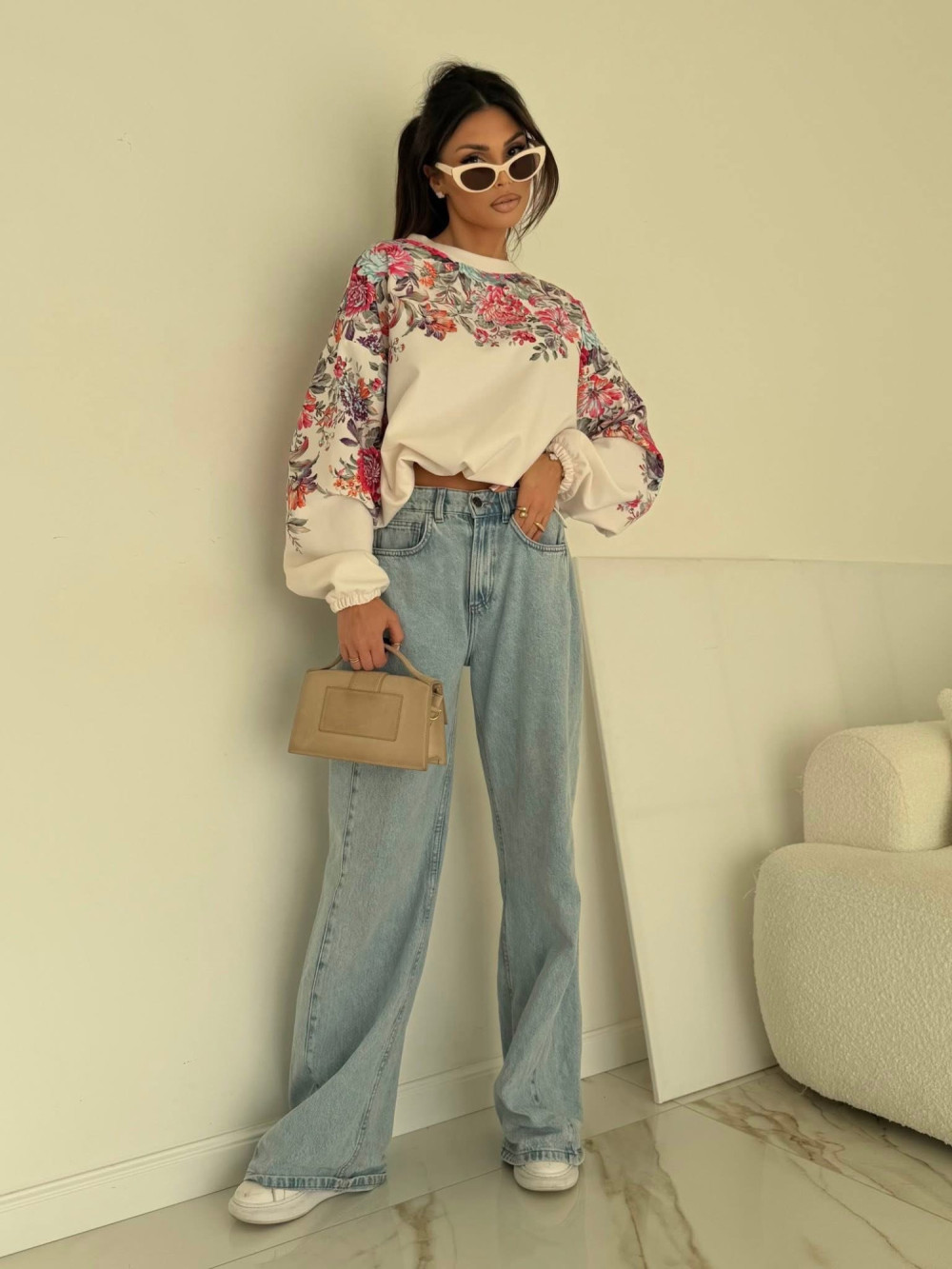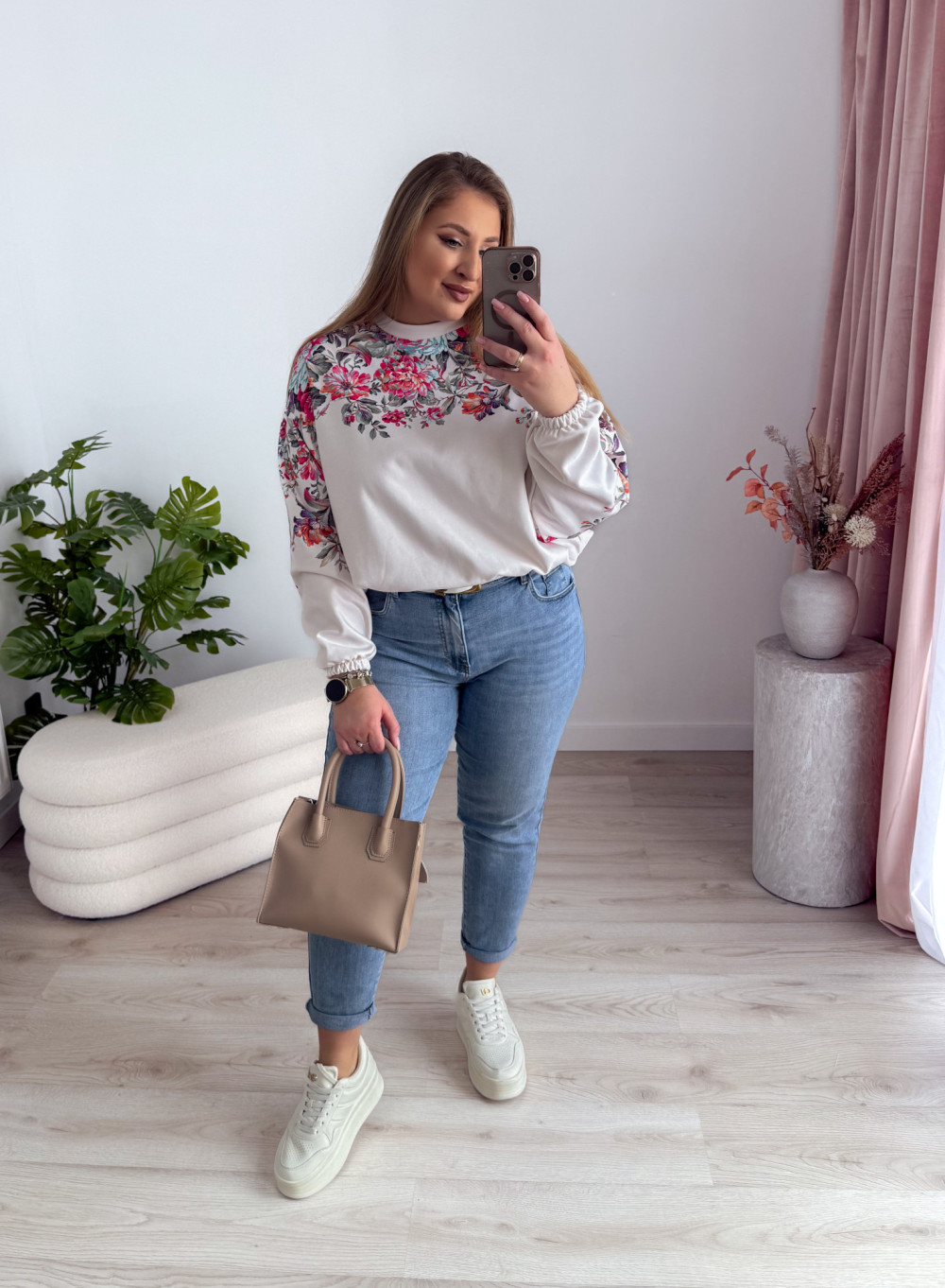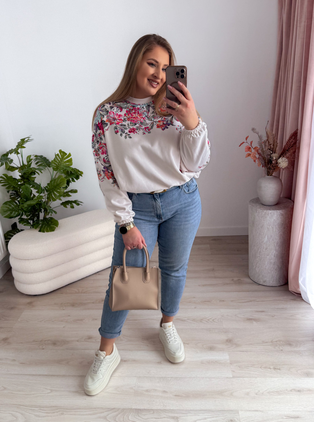- kwiatowy wzór na rękawach i w górnej części bluzy dodaje wiosennego uroku