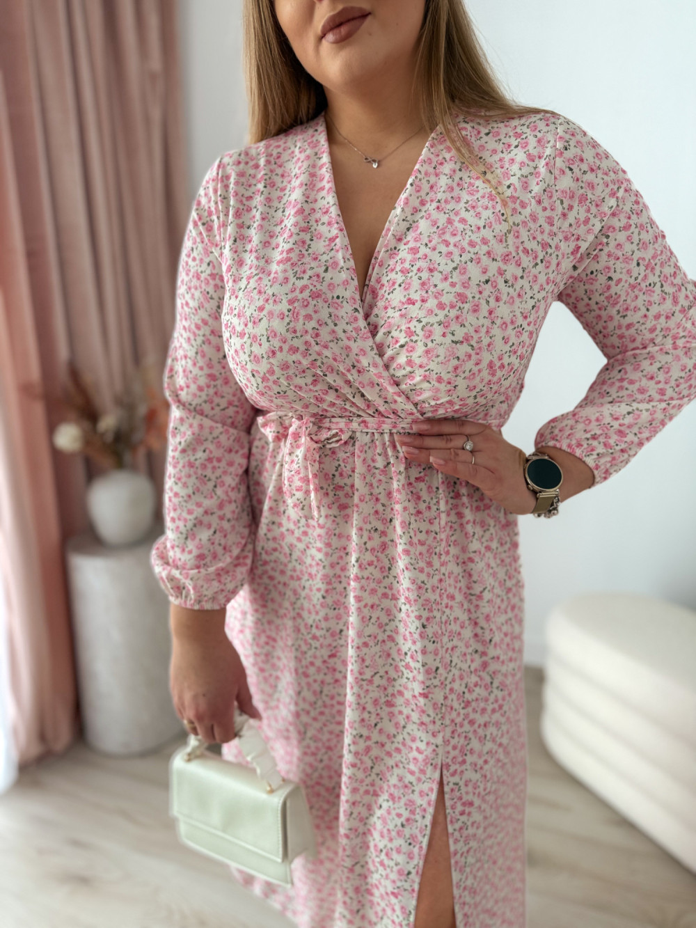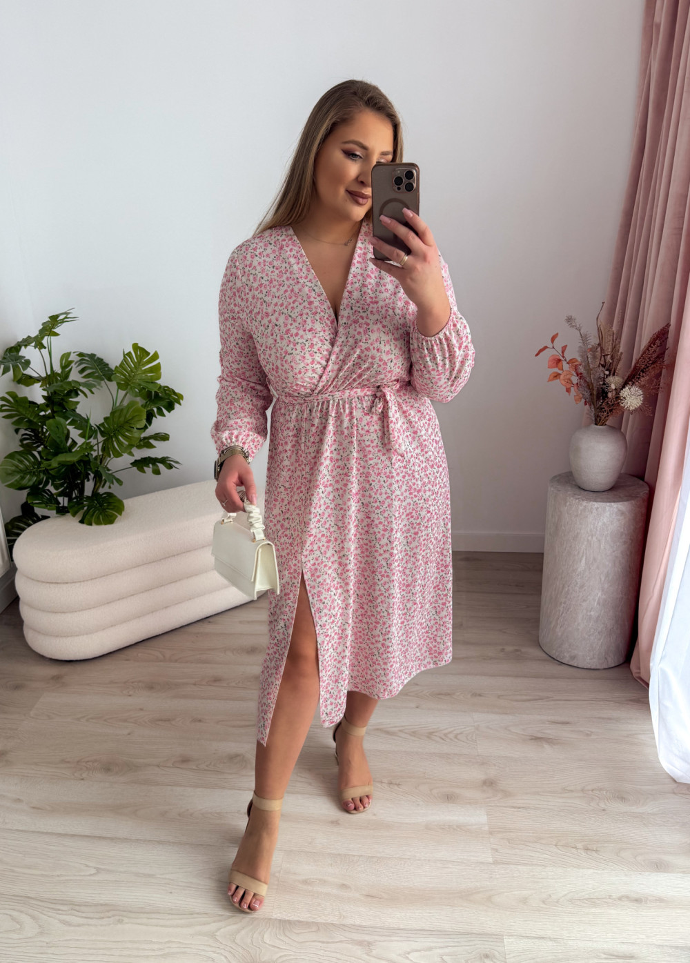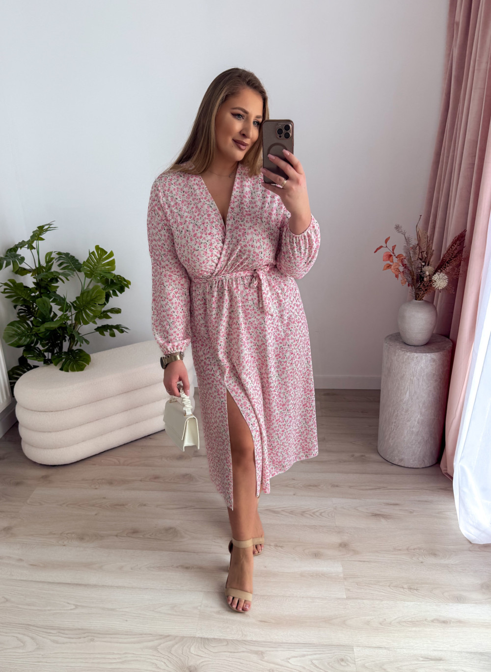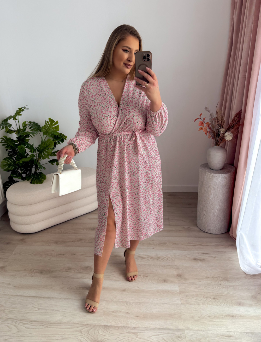 Sukienka nietoperzowa midi w pastelowe kwiatki z rozcięciem na nogę Marina