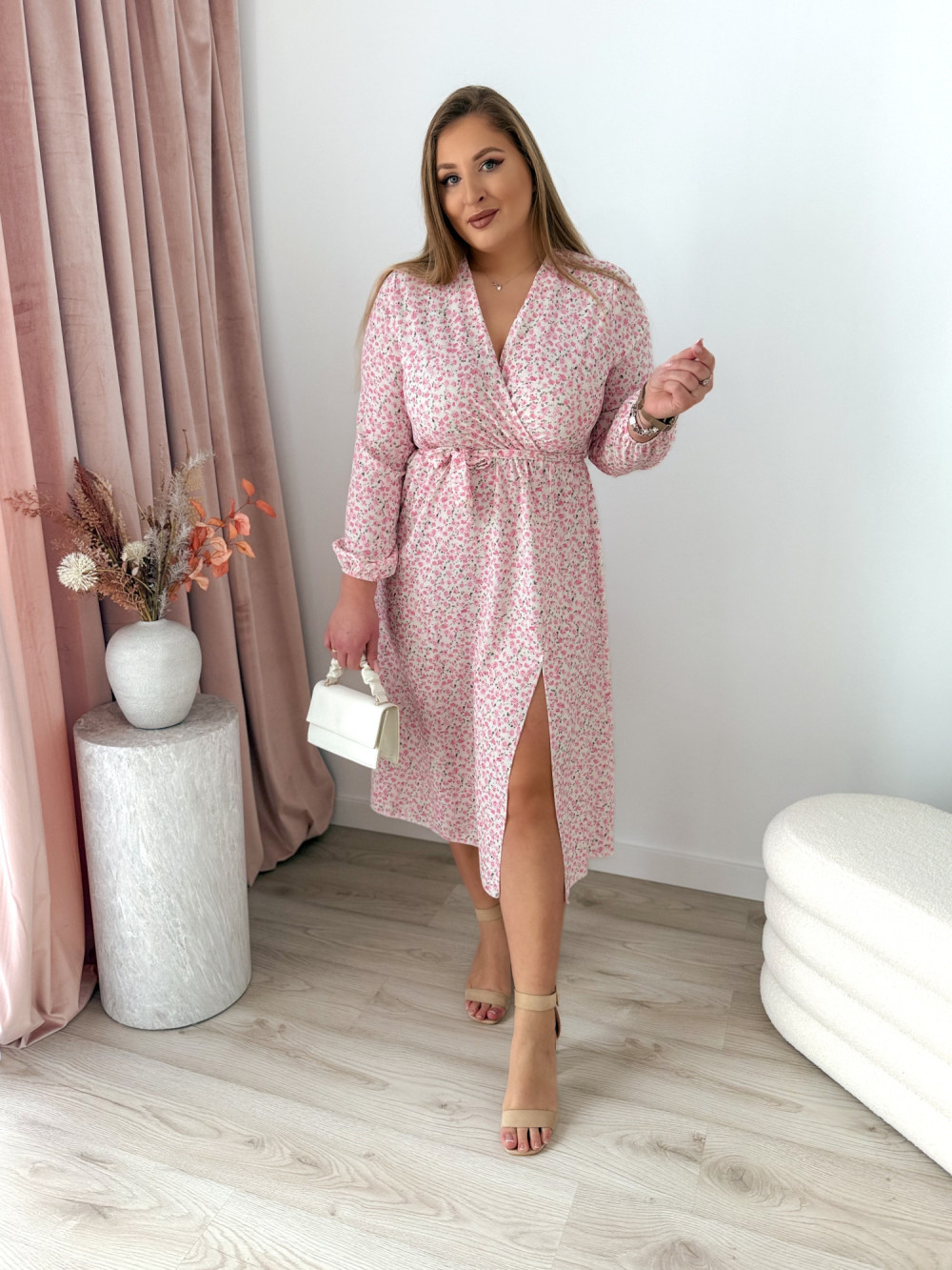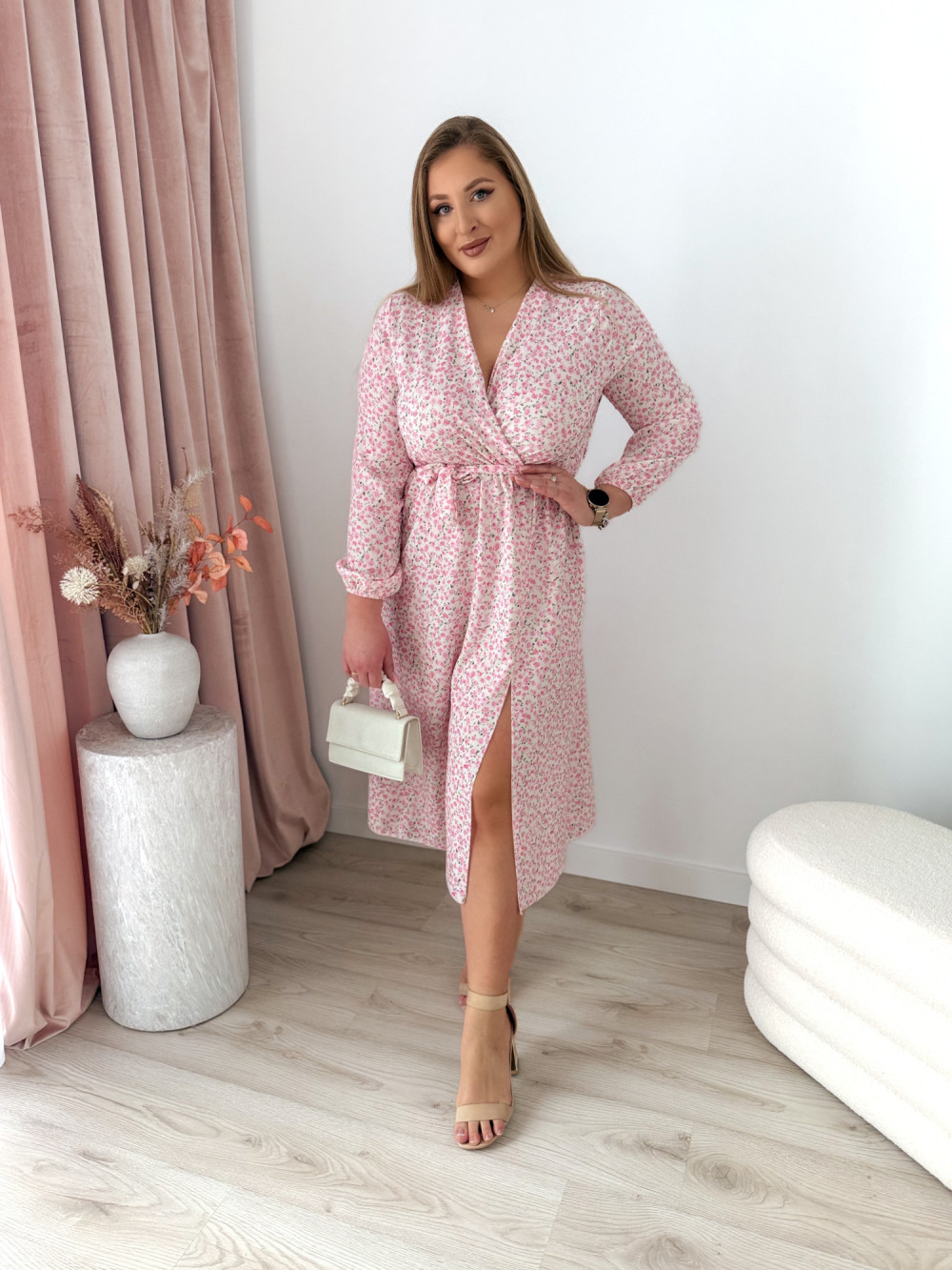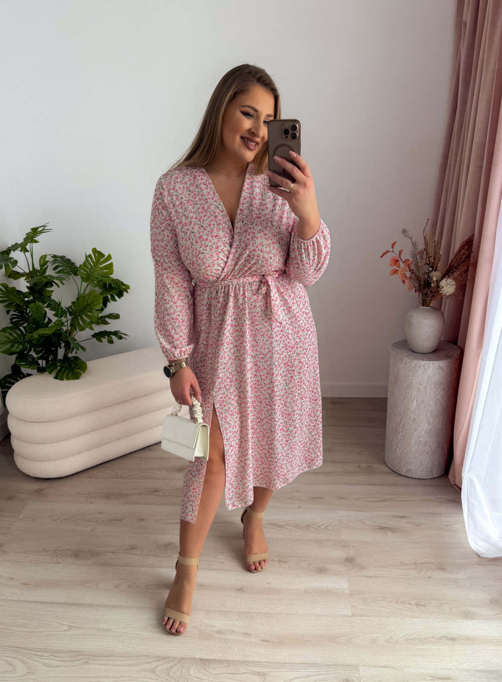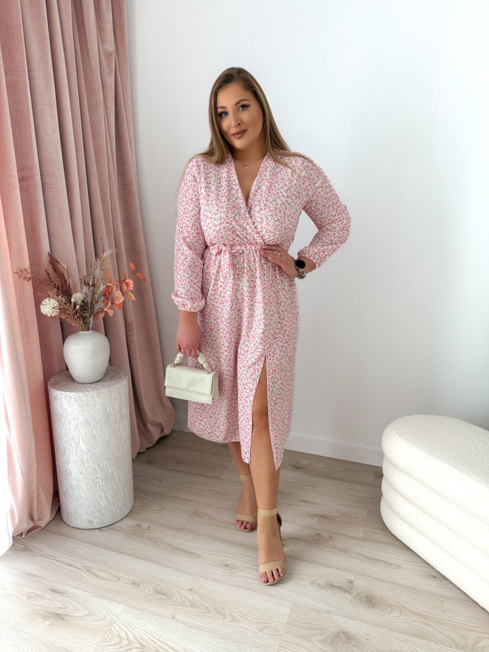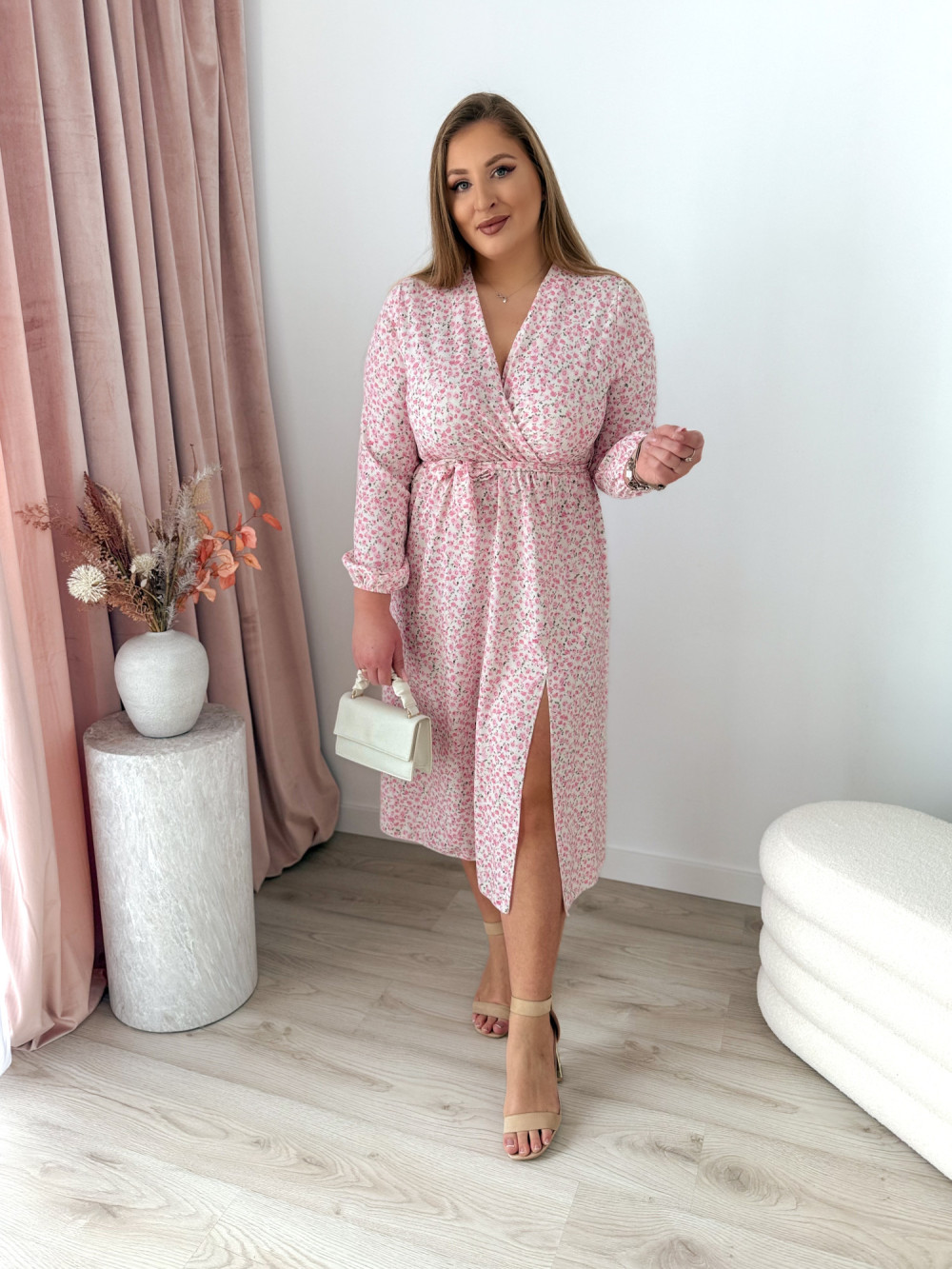 Sukienka nietoperzowa midi w pastelowe kwiatki z rozcięciem na nogę Marina
