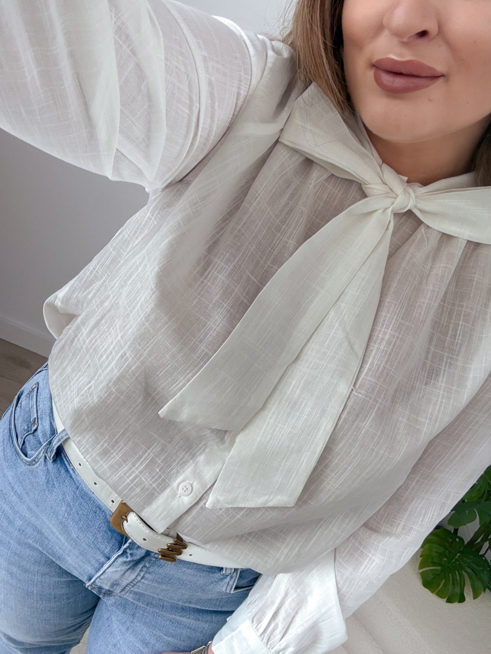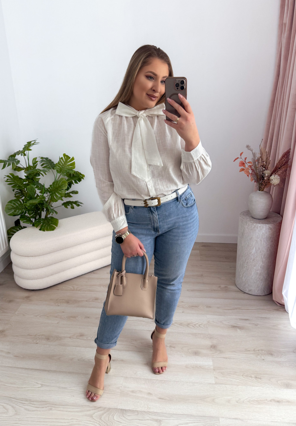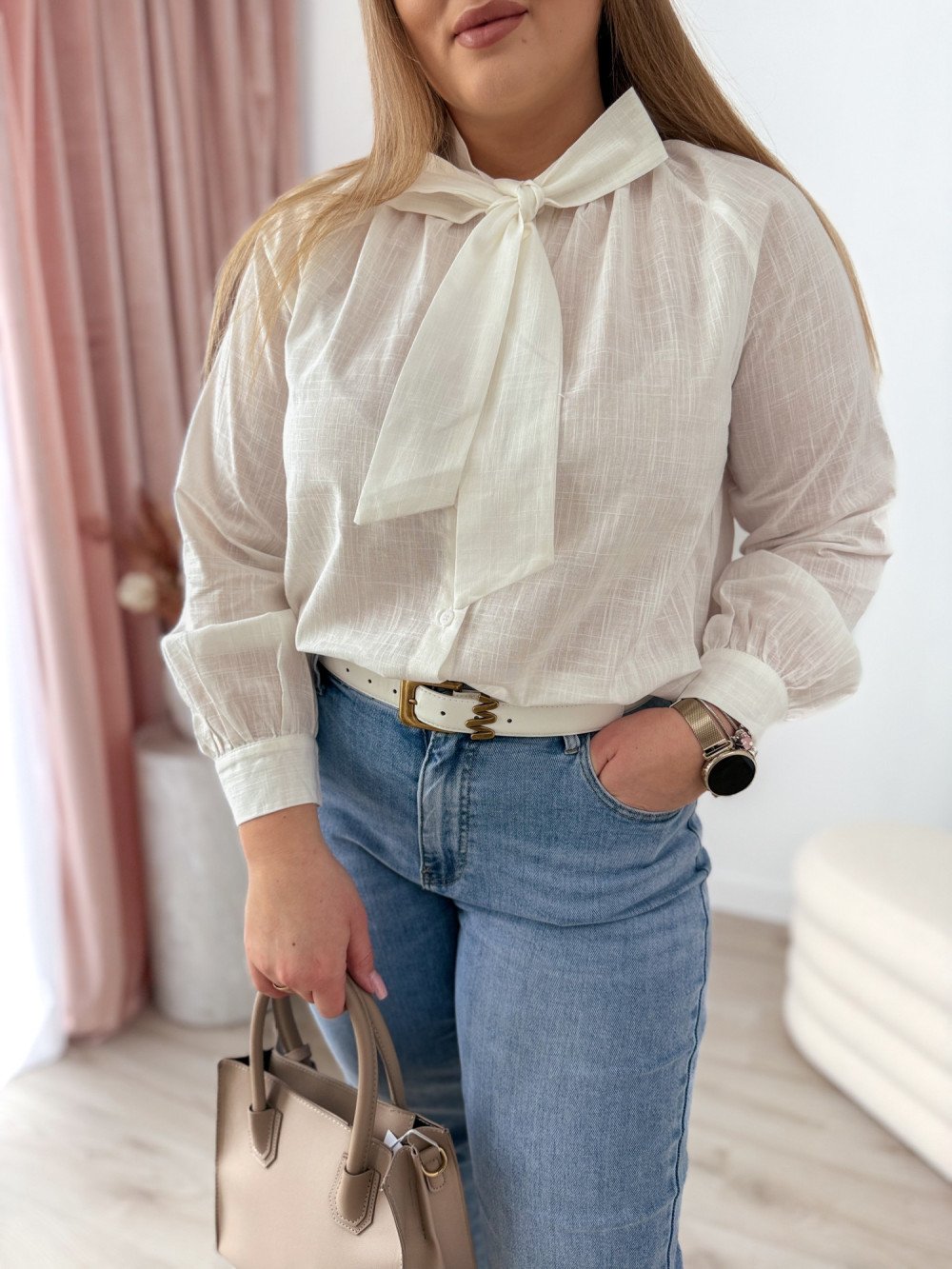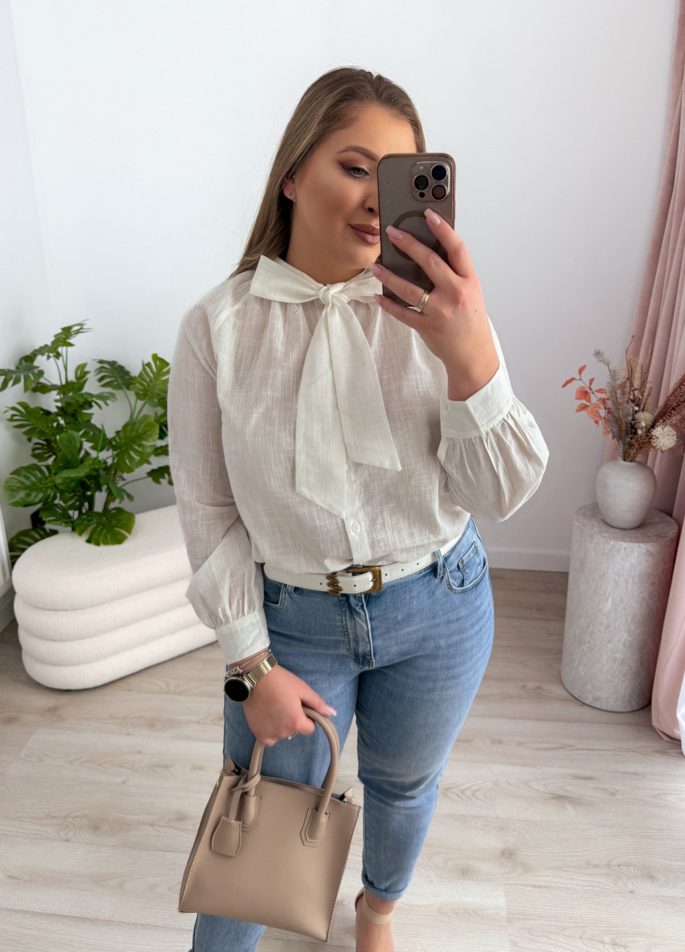Koszula kremowa z wiazaniem w kokardkę Gentle