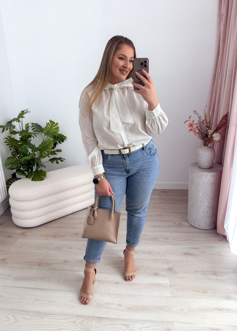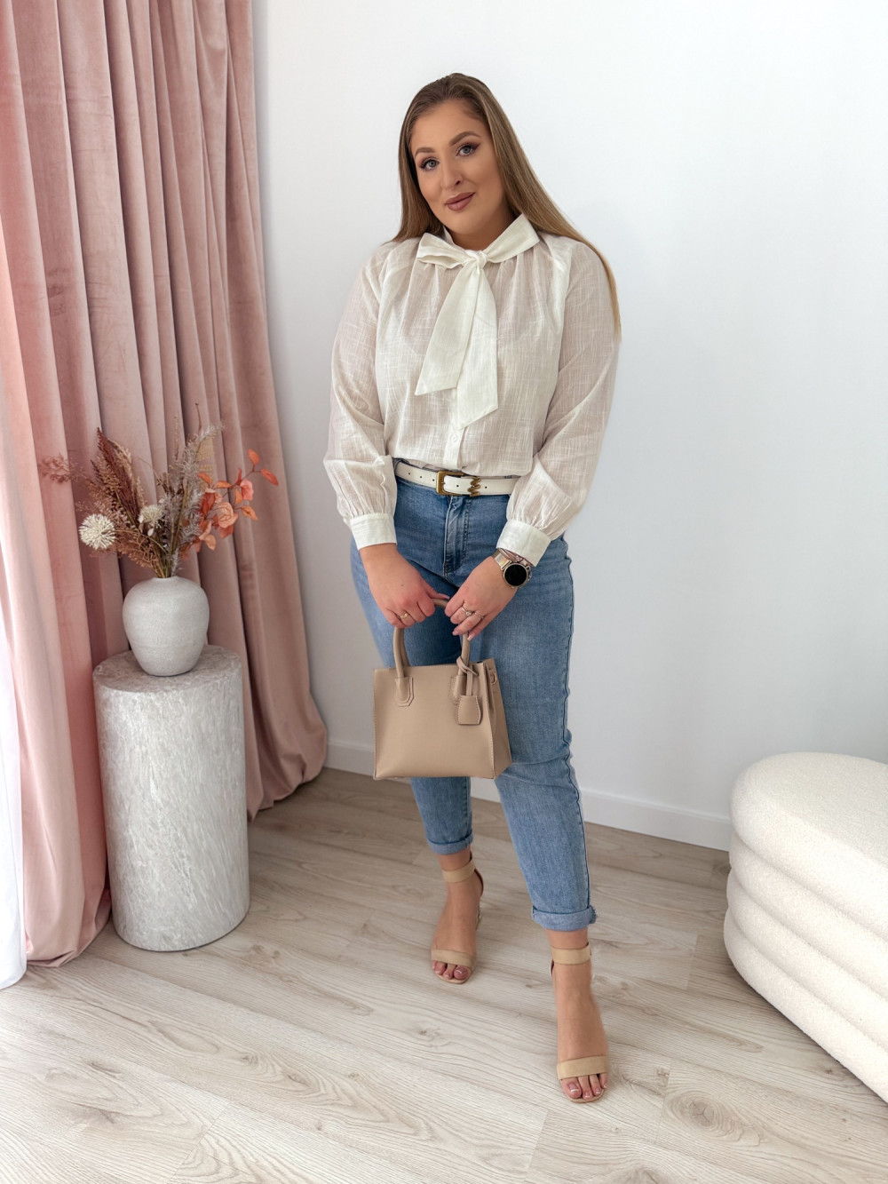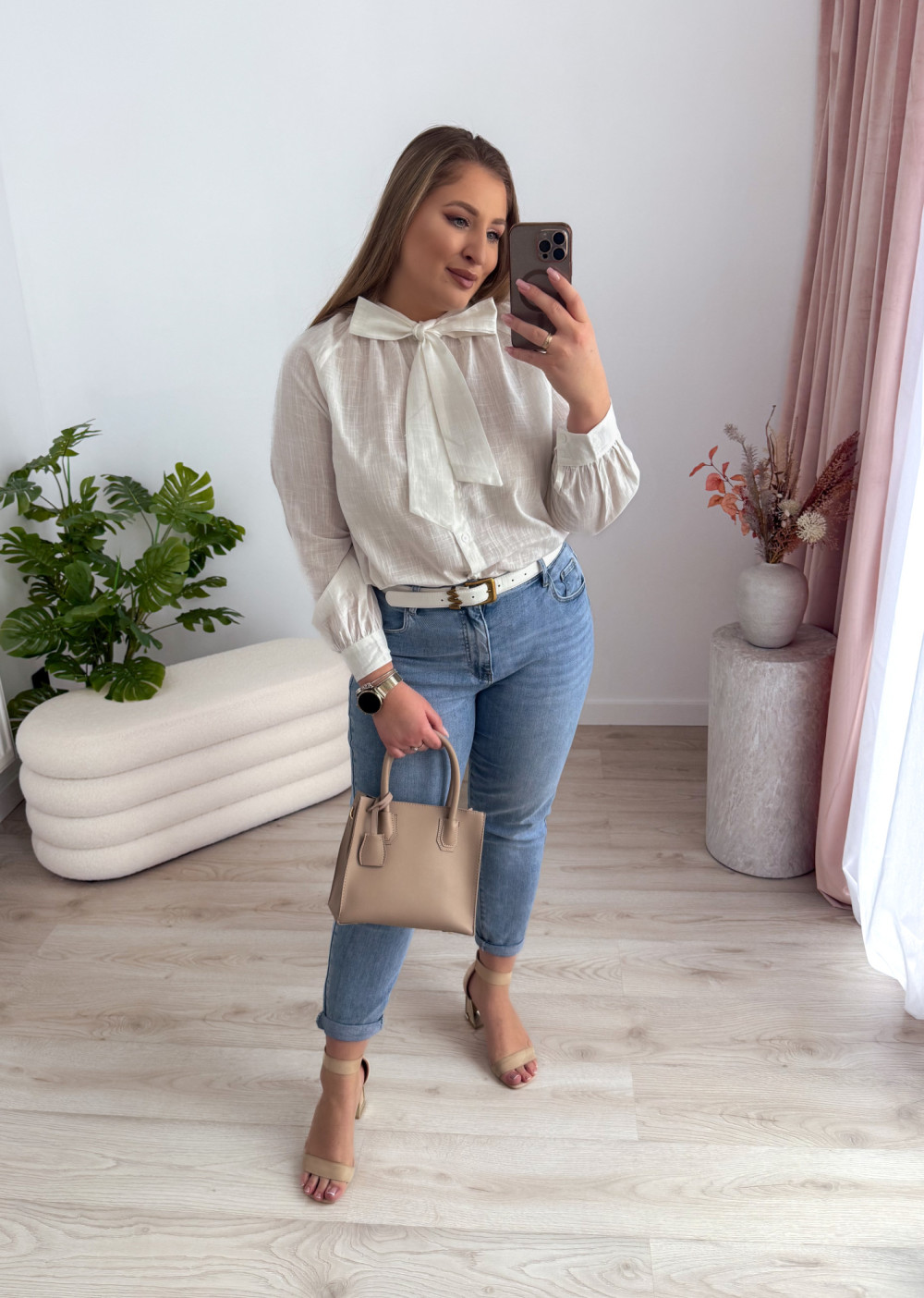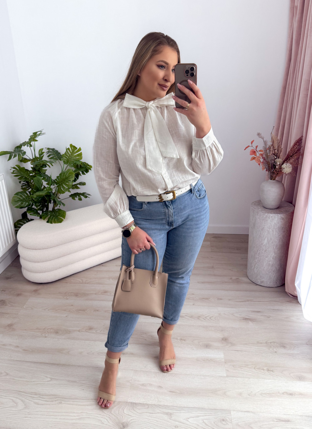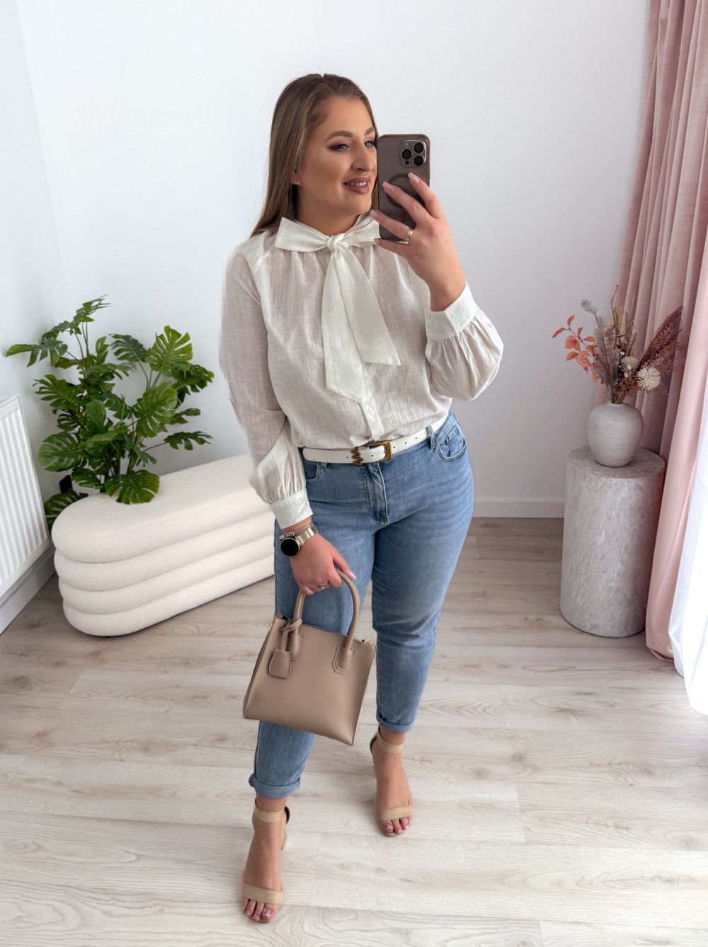 Koszula kremowa z wiazaniem w kokardkę Gentle