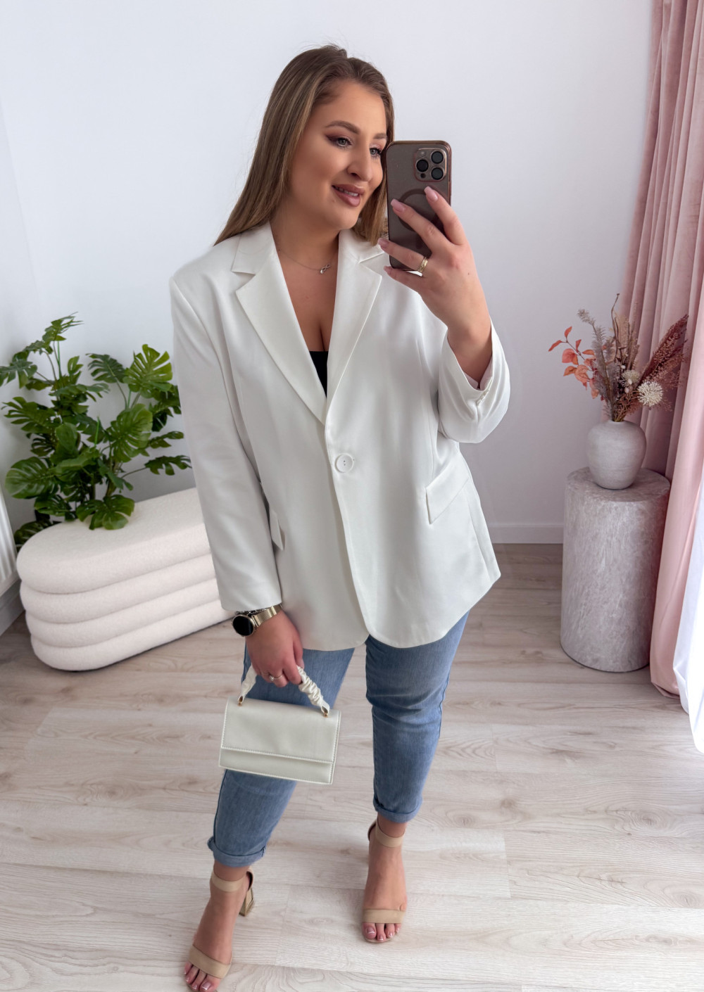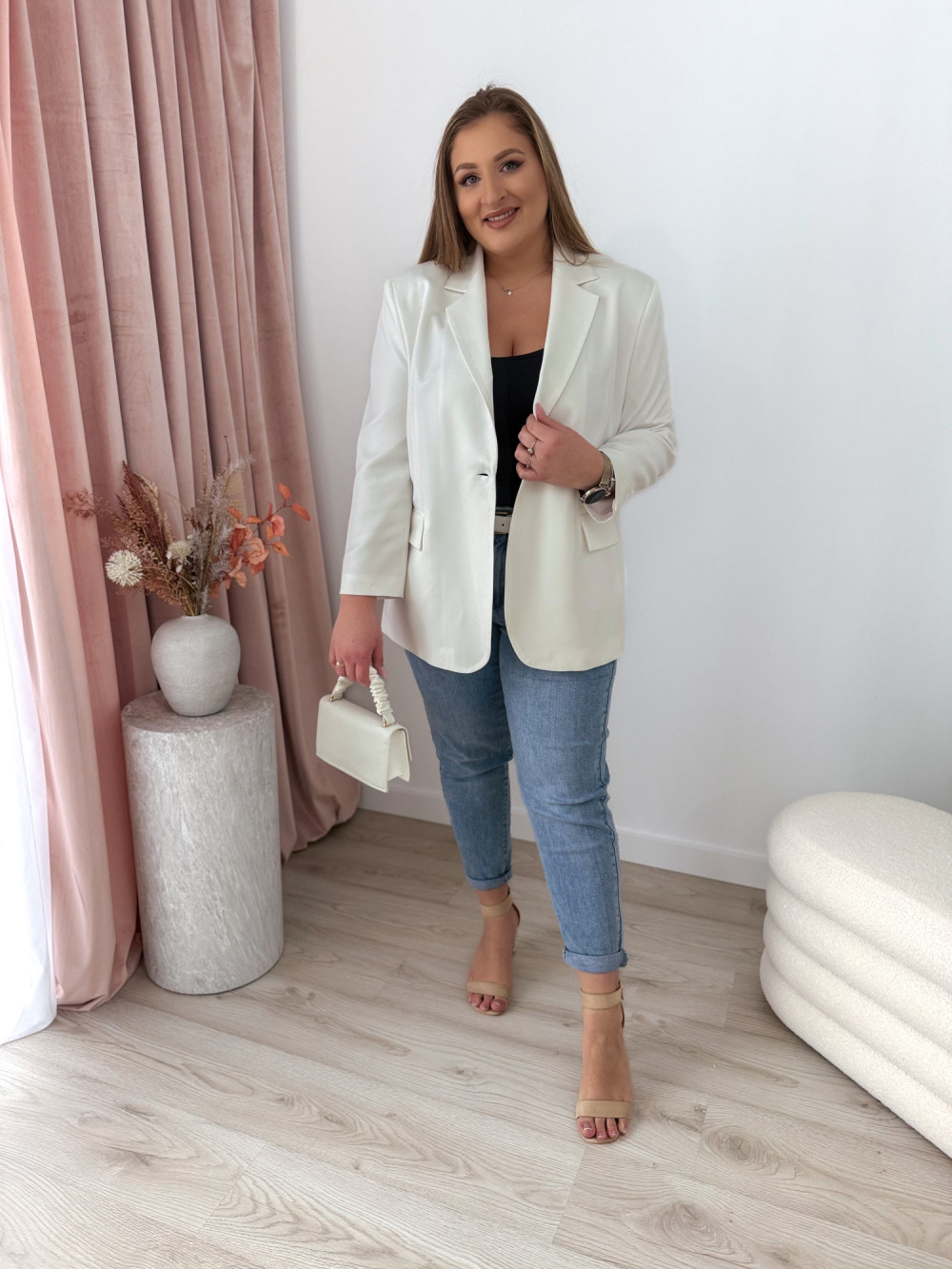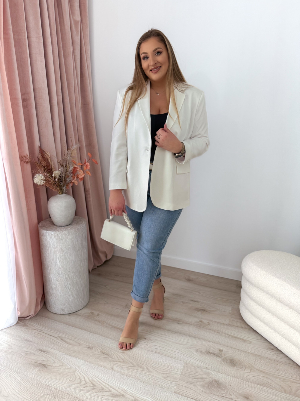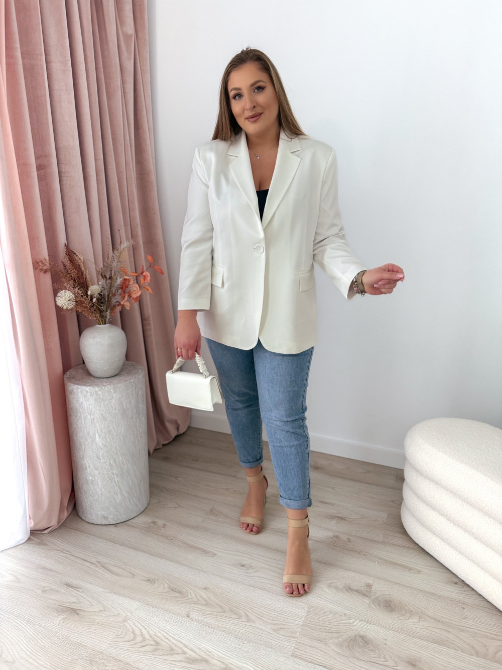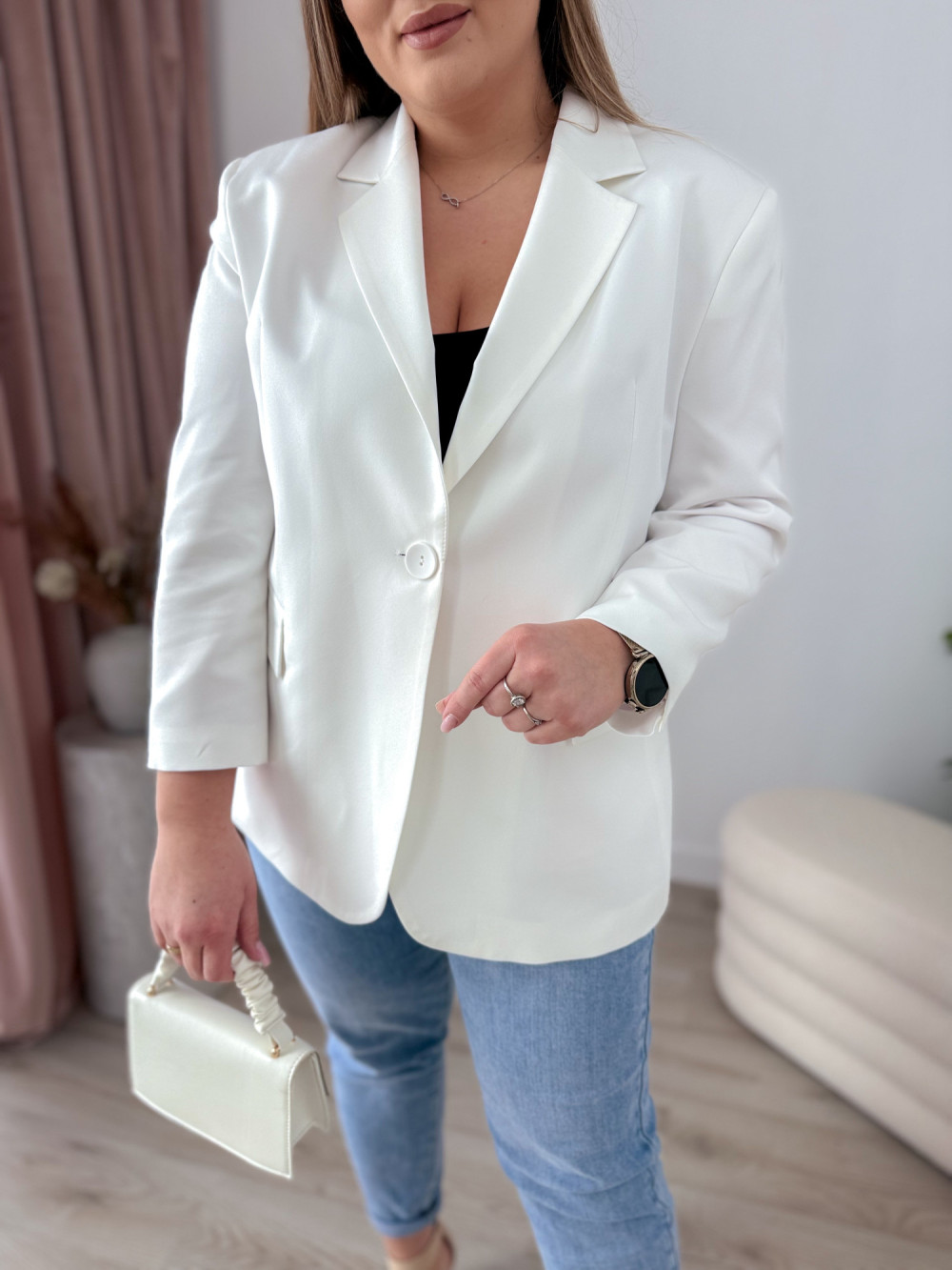 Marynarka oversize zapinana na guzik Sofia - biała