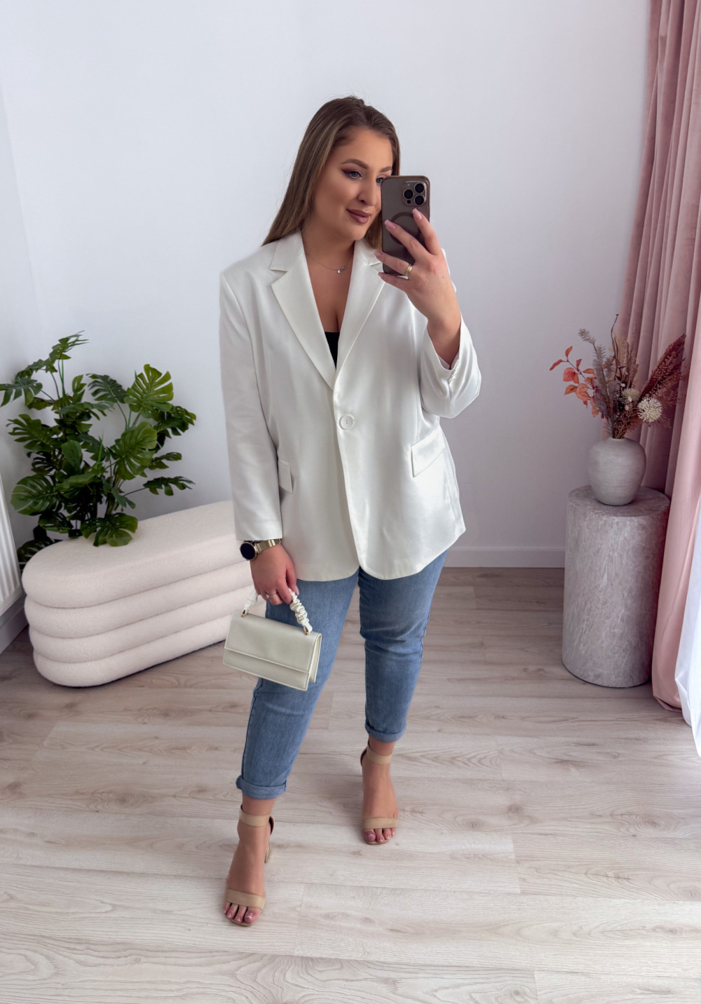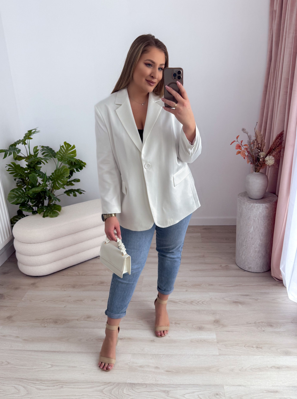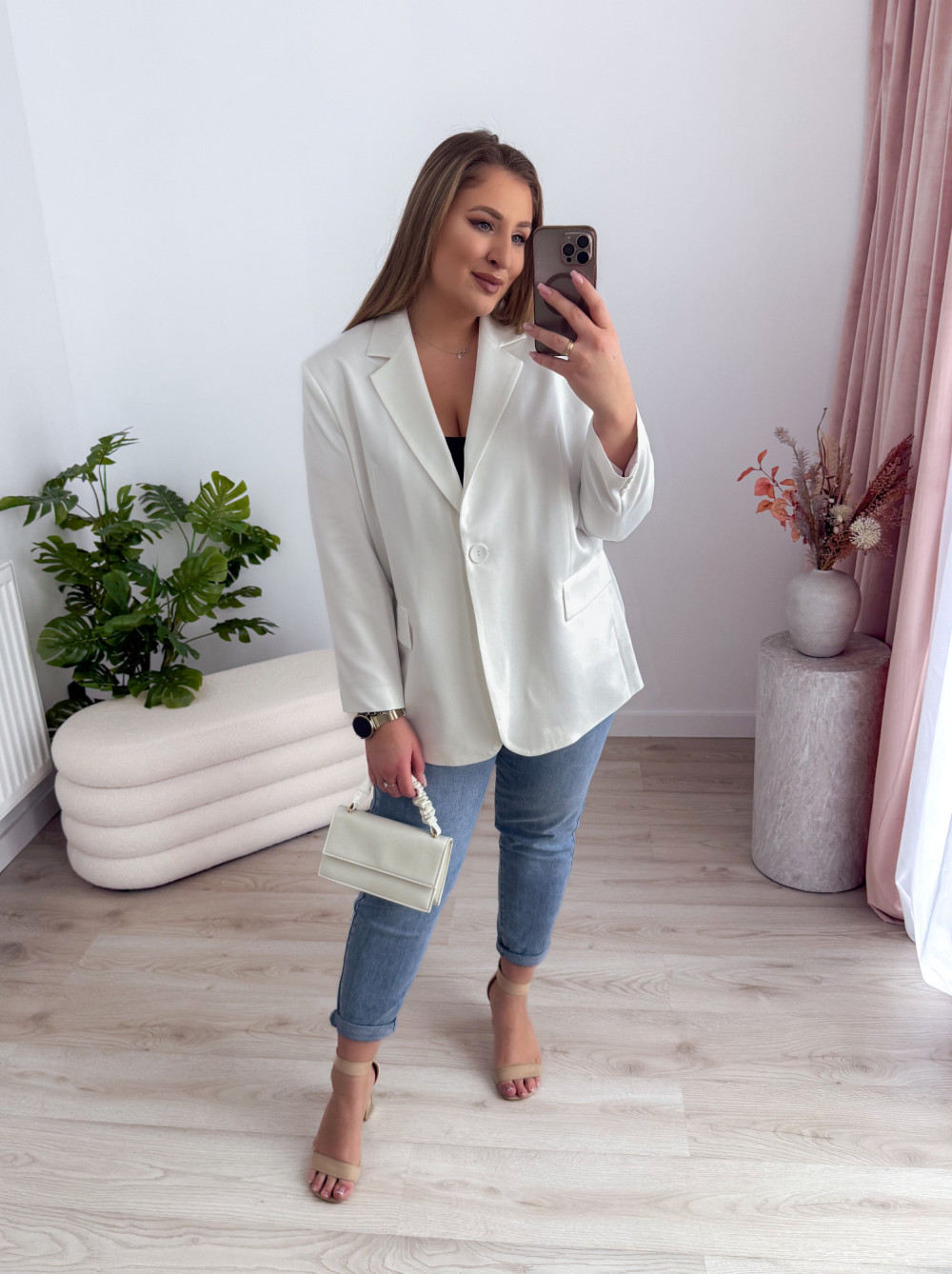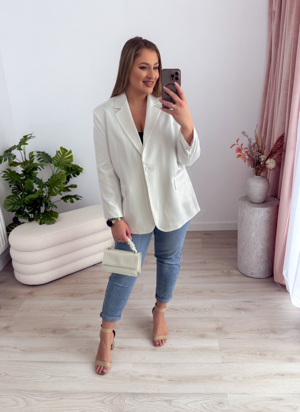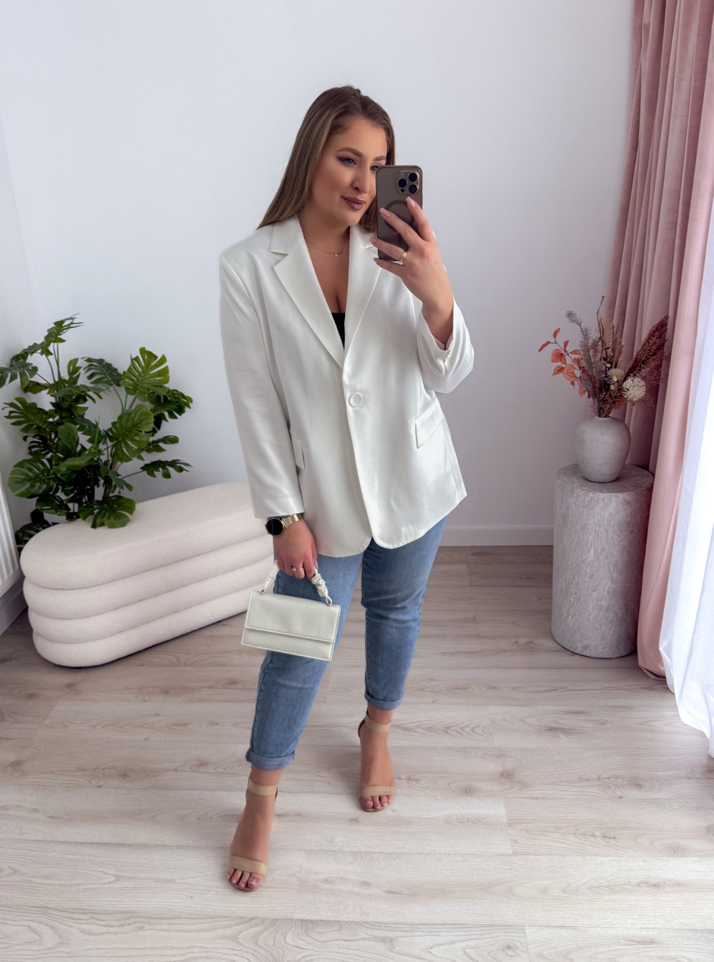 Marynarka oversize zapinana na guzik Sofia - biała