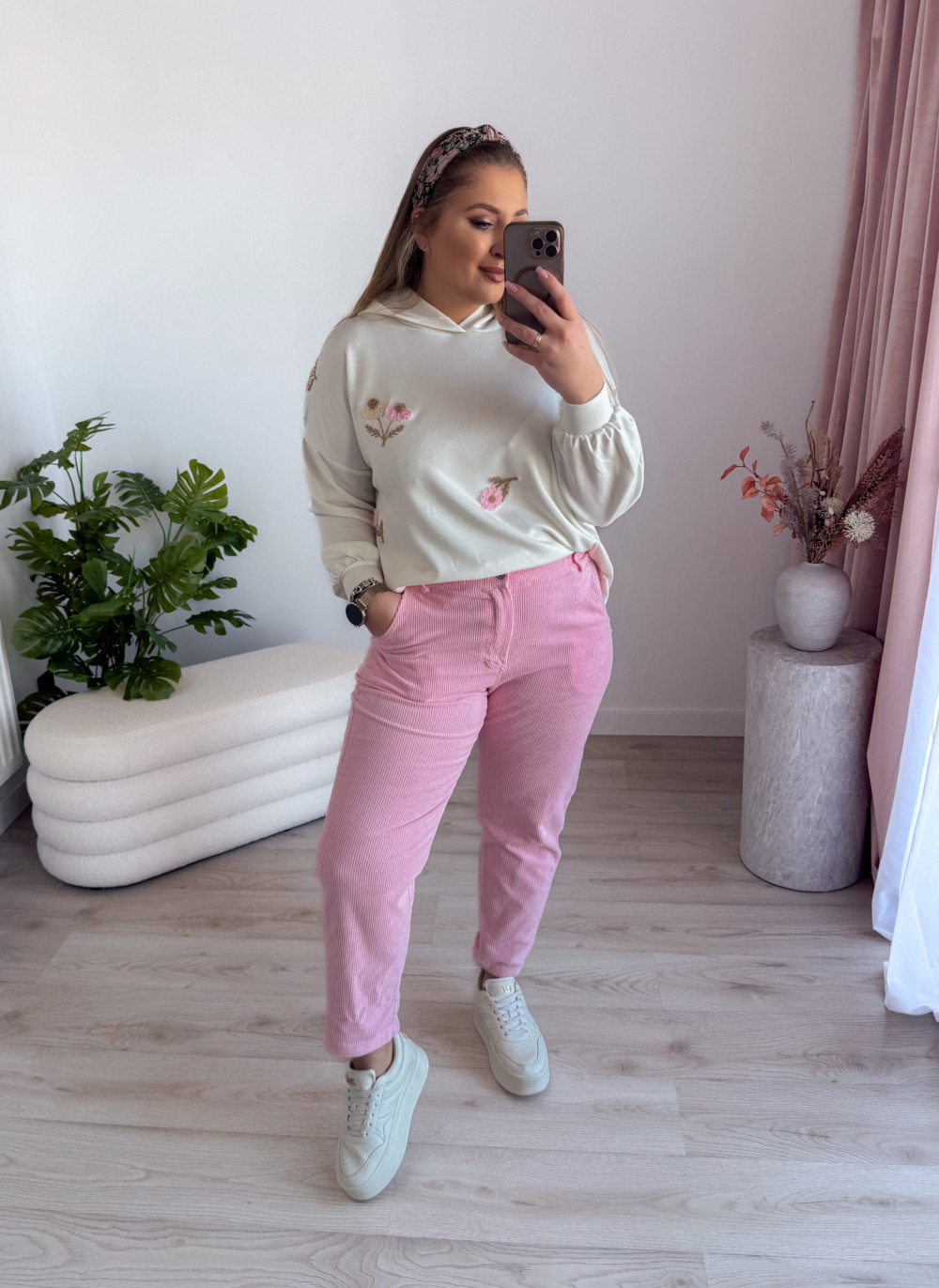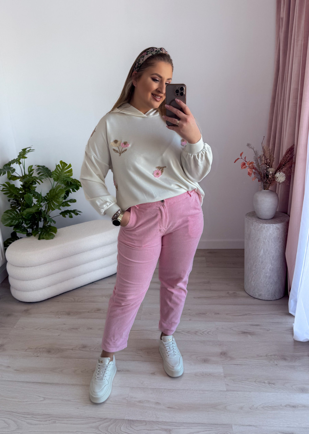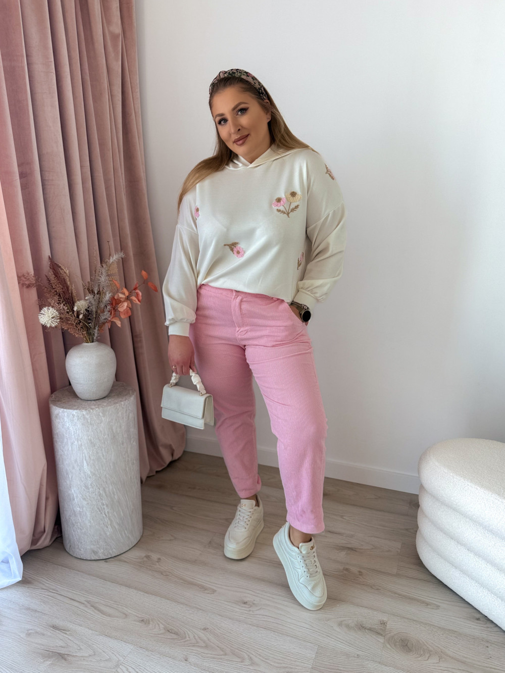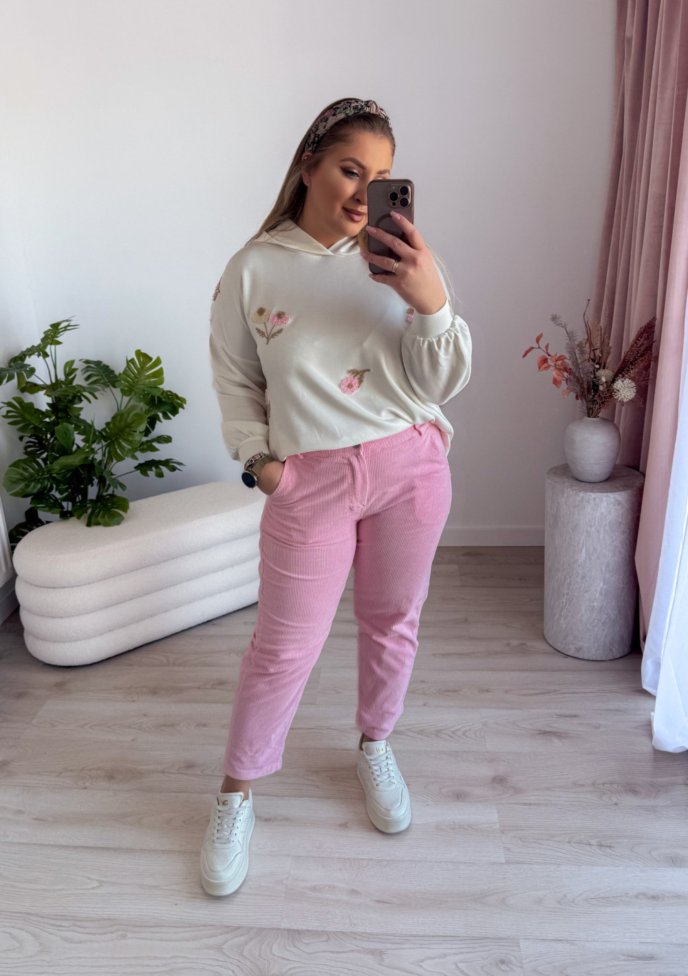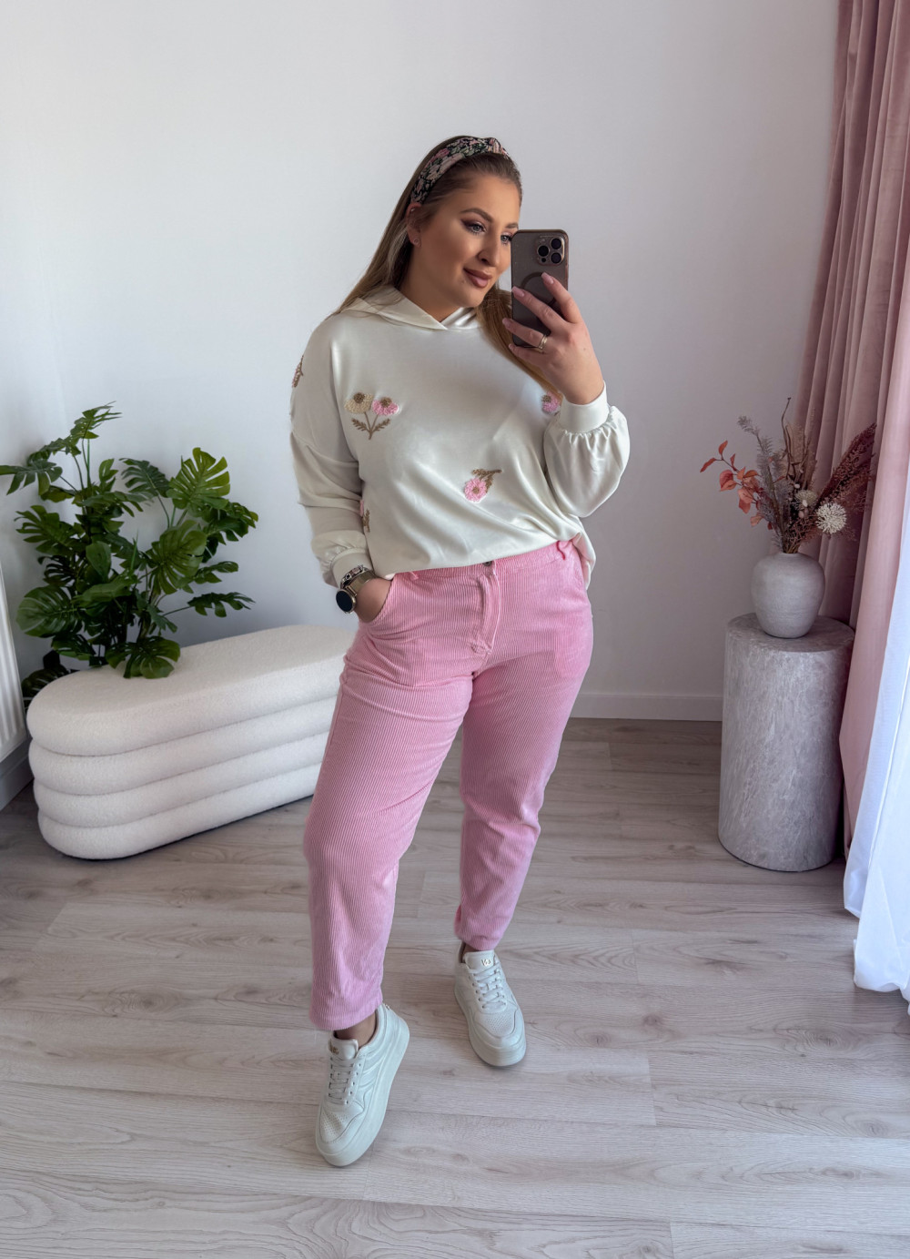 Spodnie sztruksowe mom fit Adelinda - cukierkowy