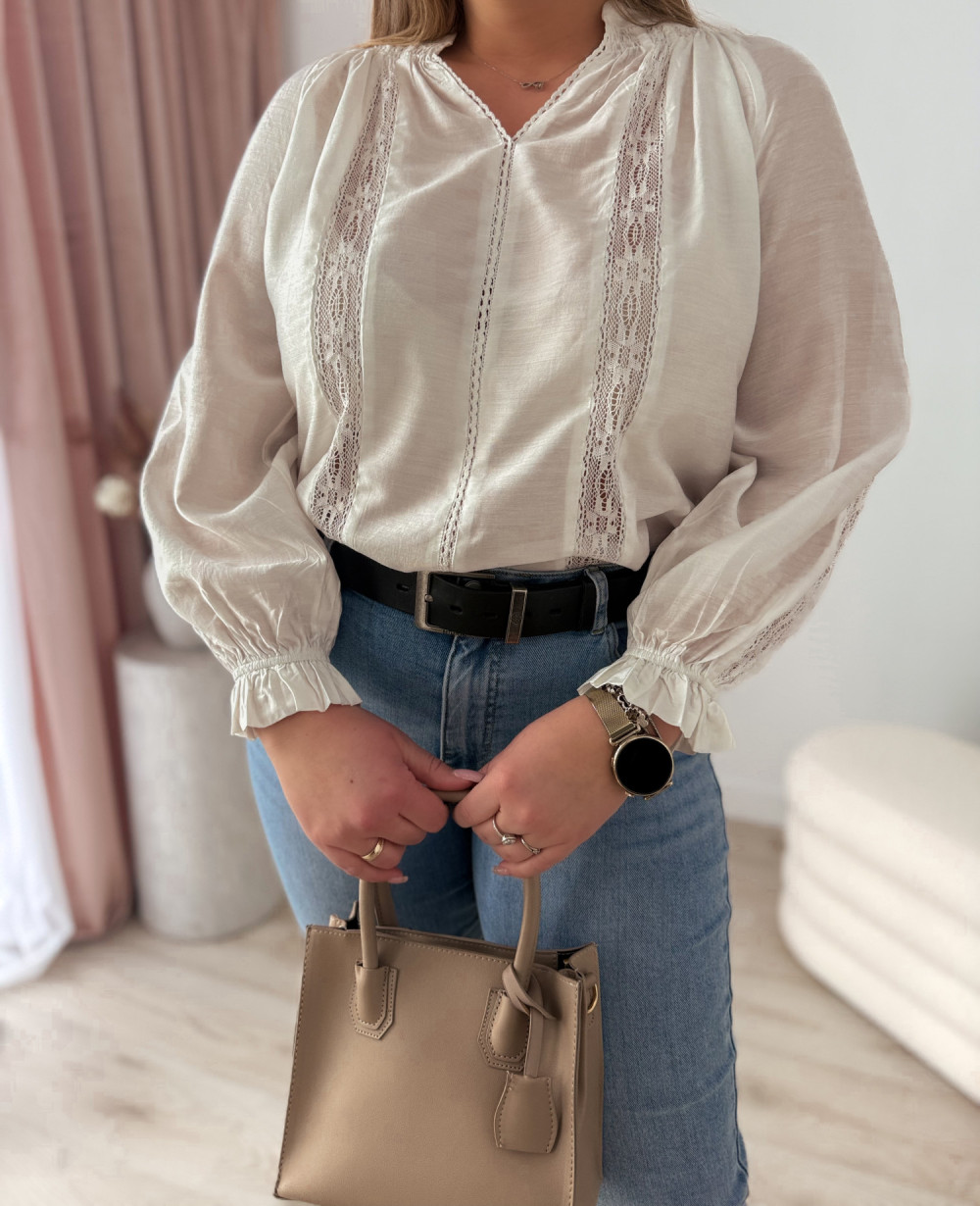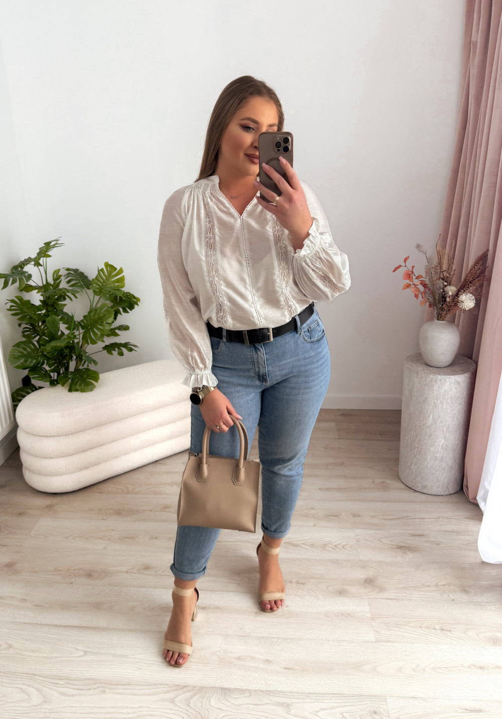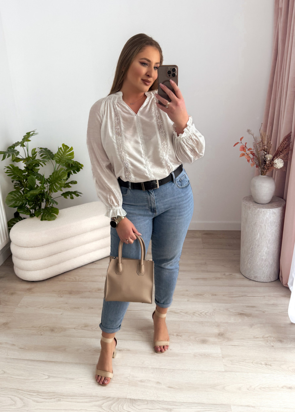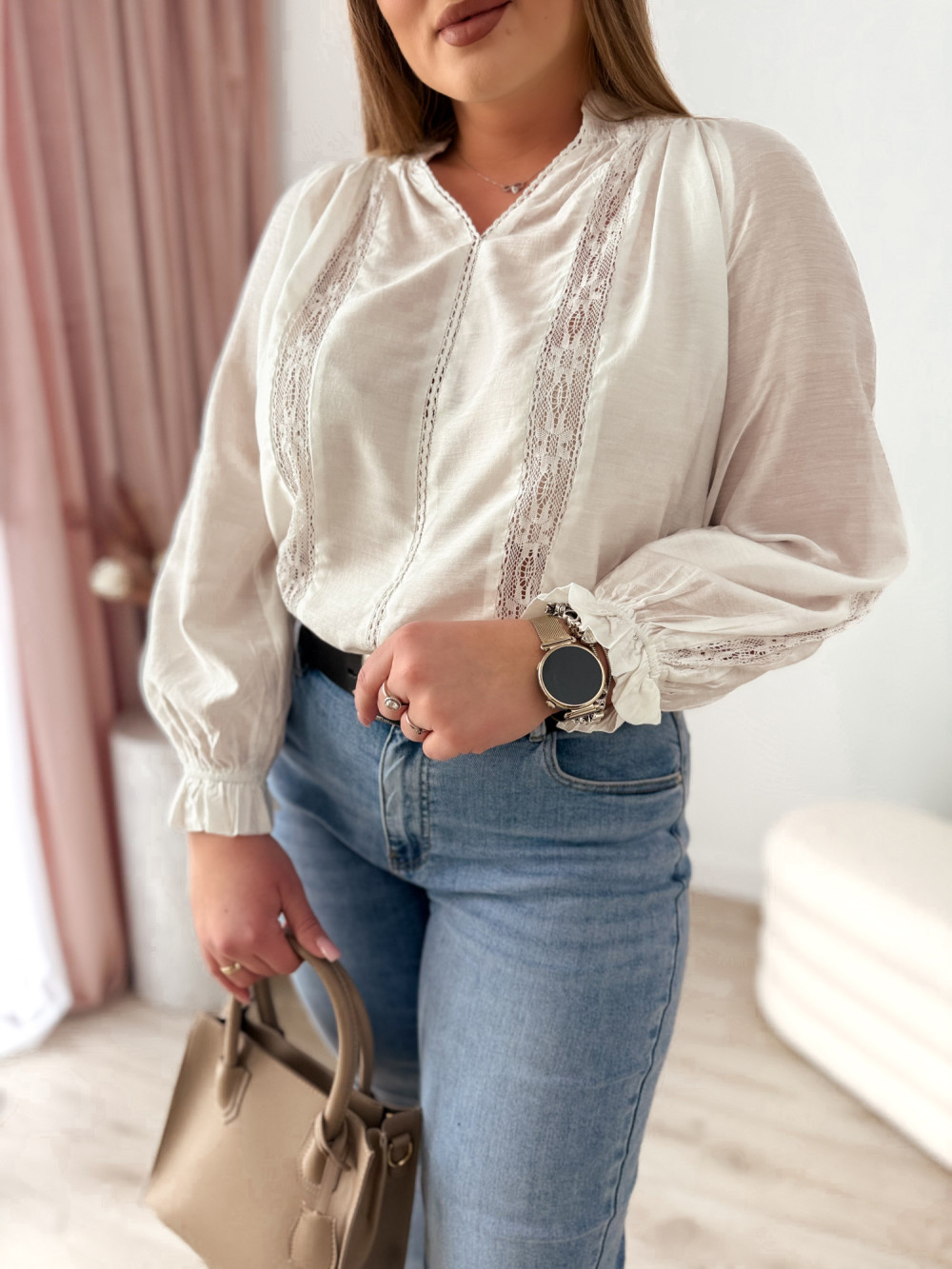 Koszula ze wstawkami koronkowymi Sorelli - biała