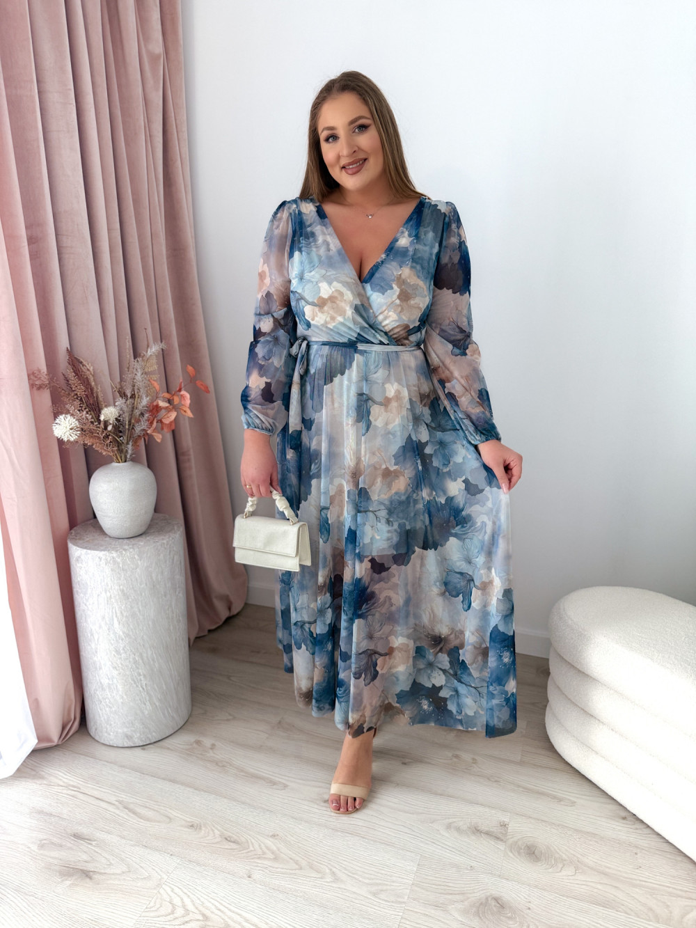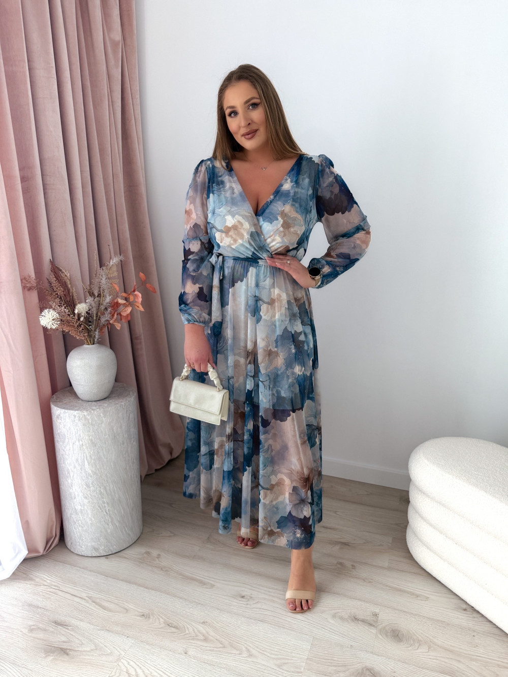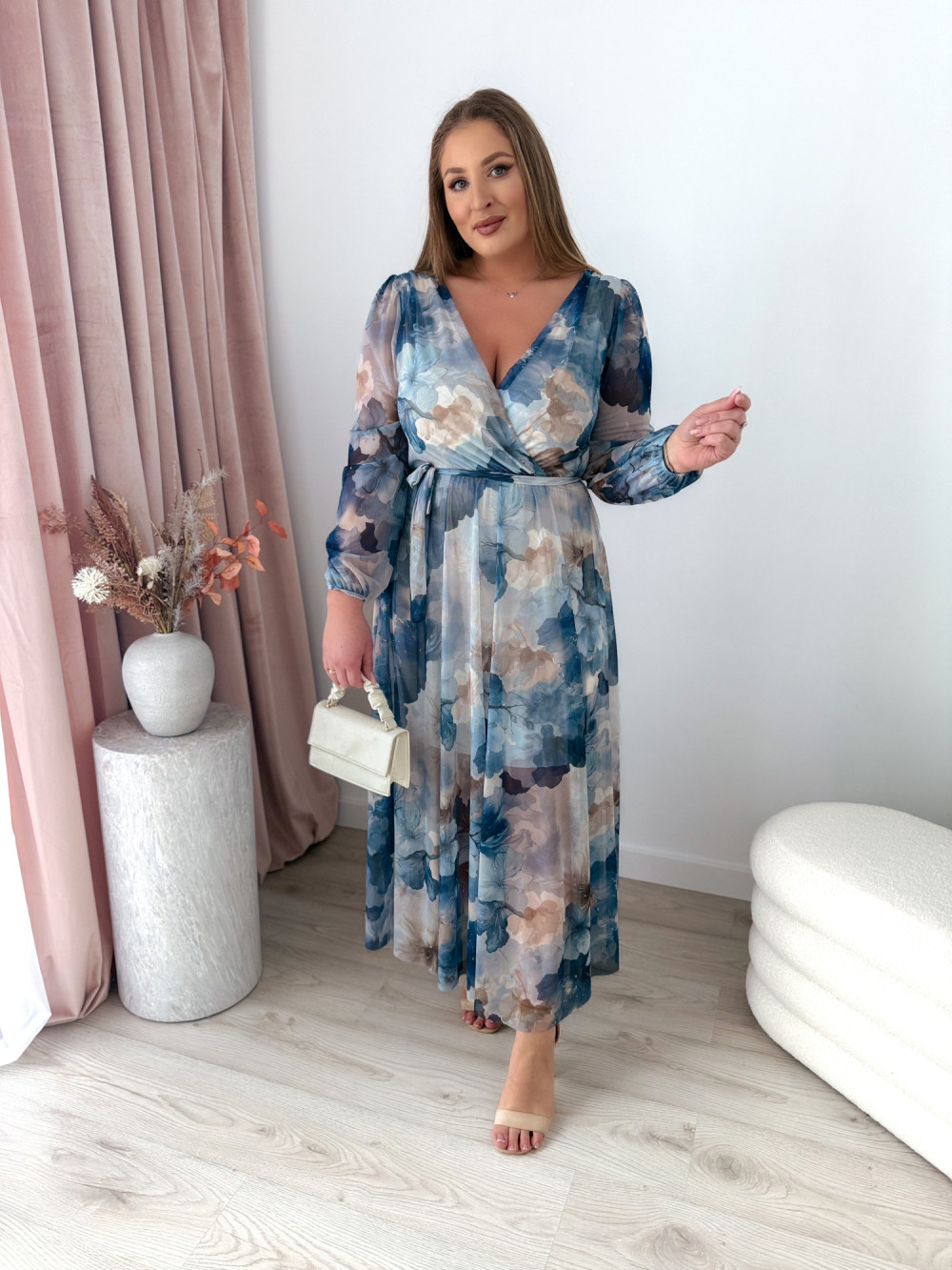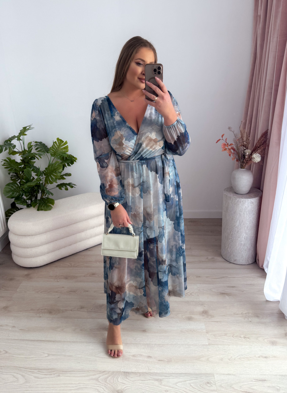 Sukienka maxi z siateczki Nella - niebiesko-beżowe kwiaty
