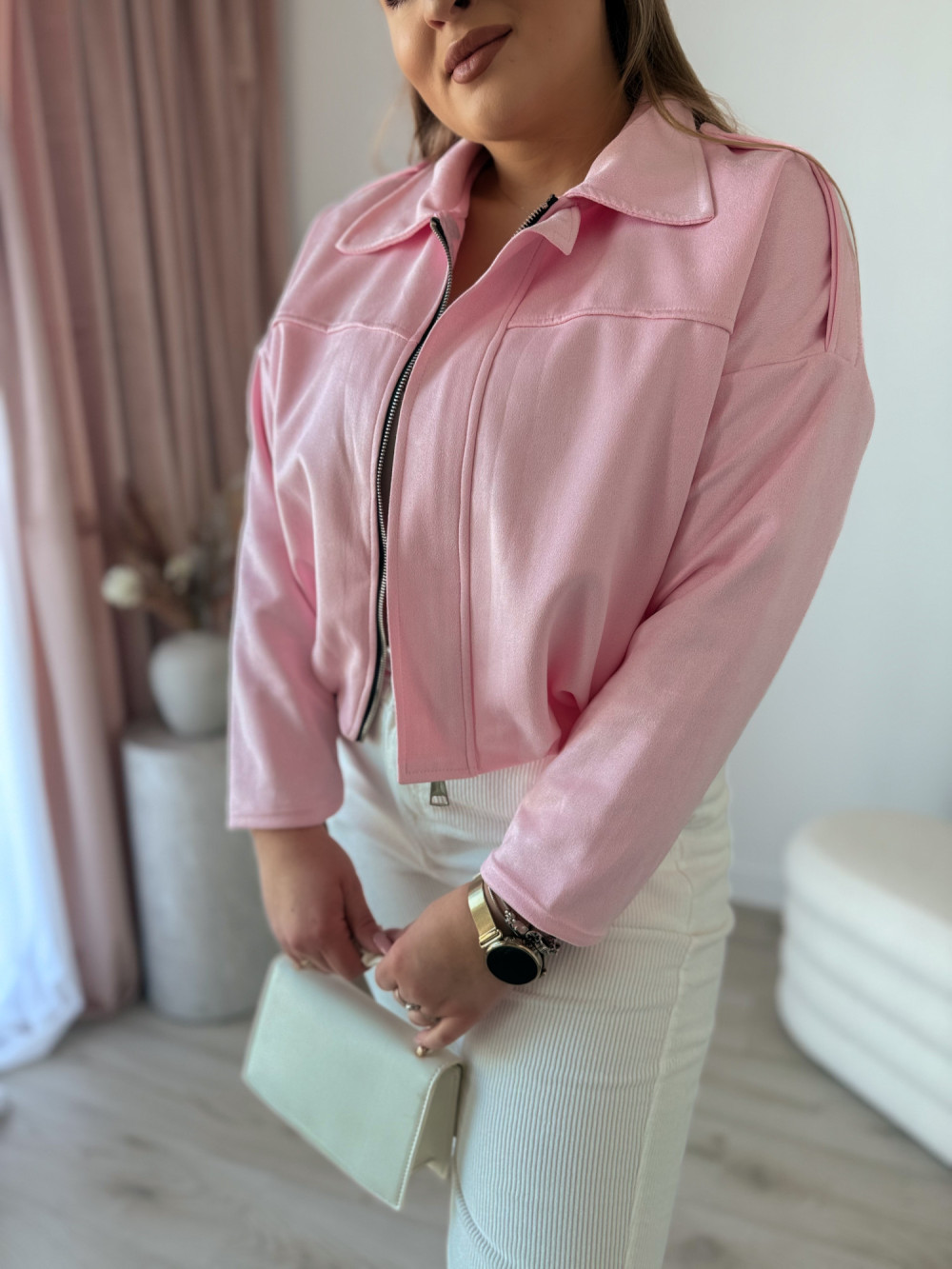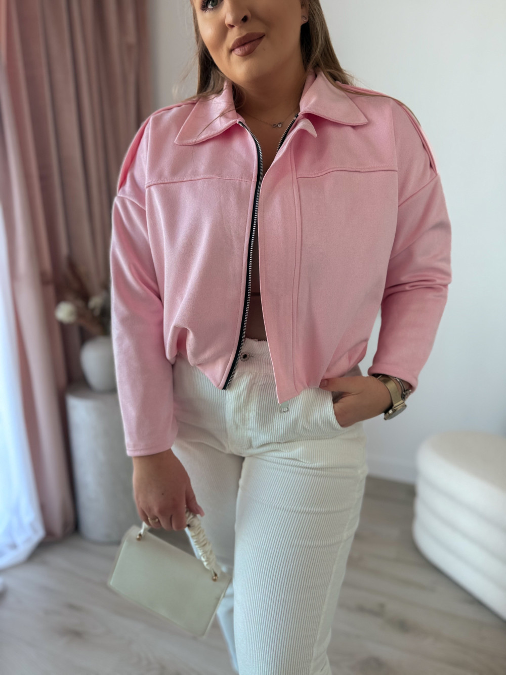 Kurtka zamszowa bomberka Noah - cukierek