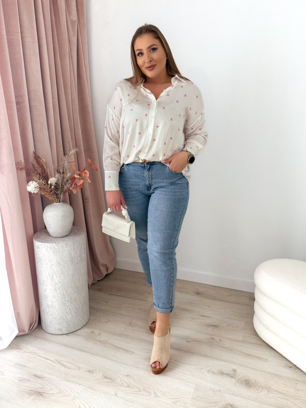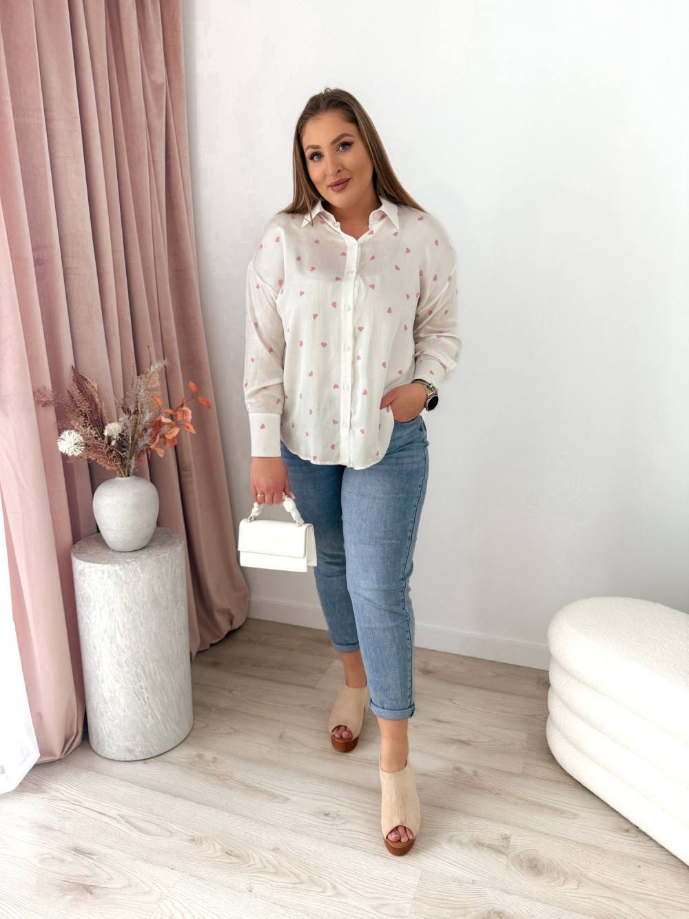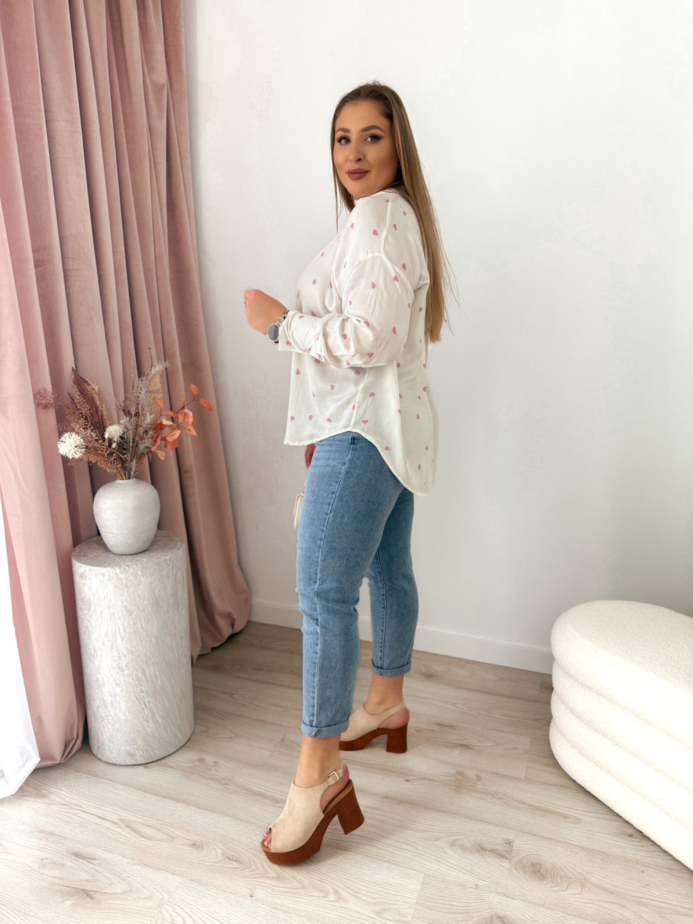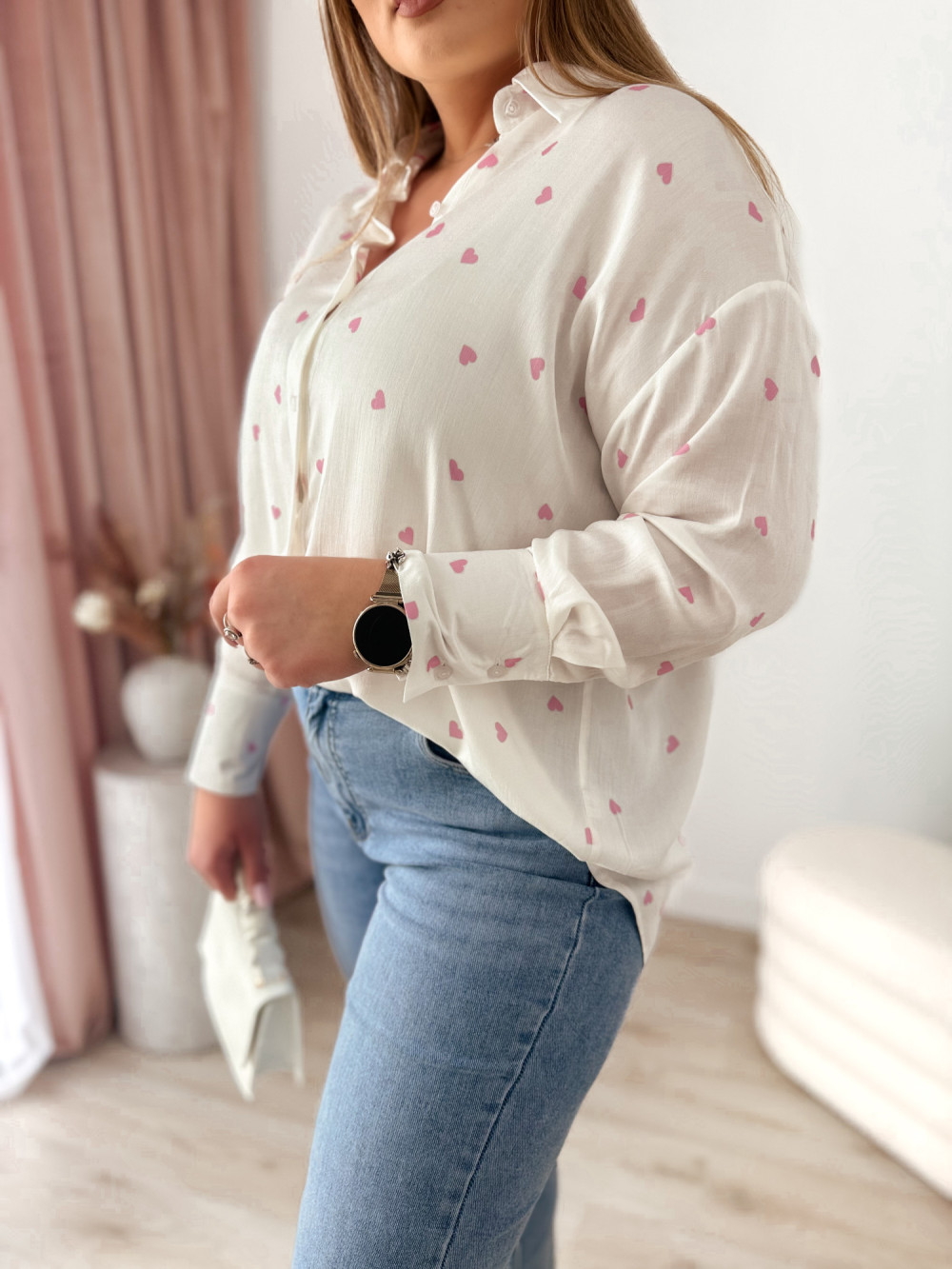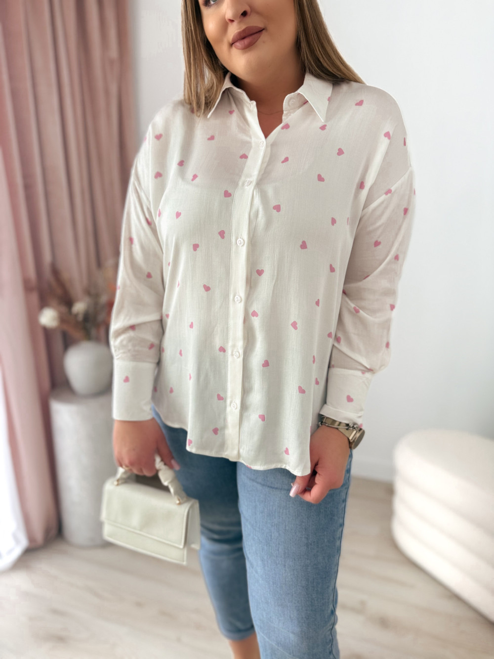 Koszula oversize w różowe serduszka Emy
