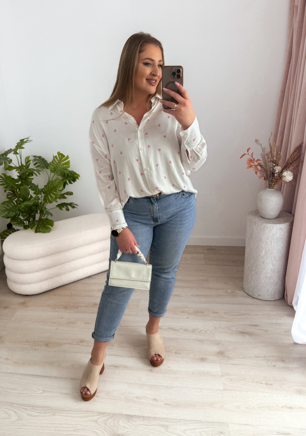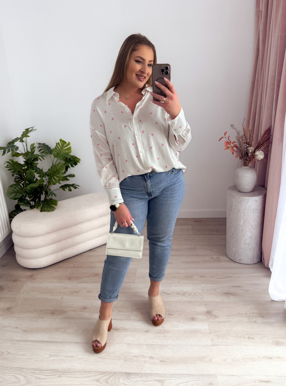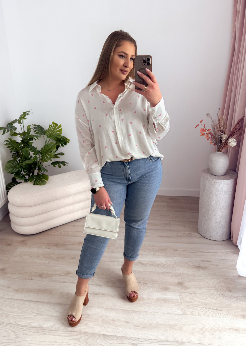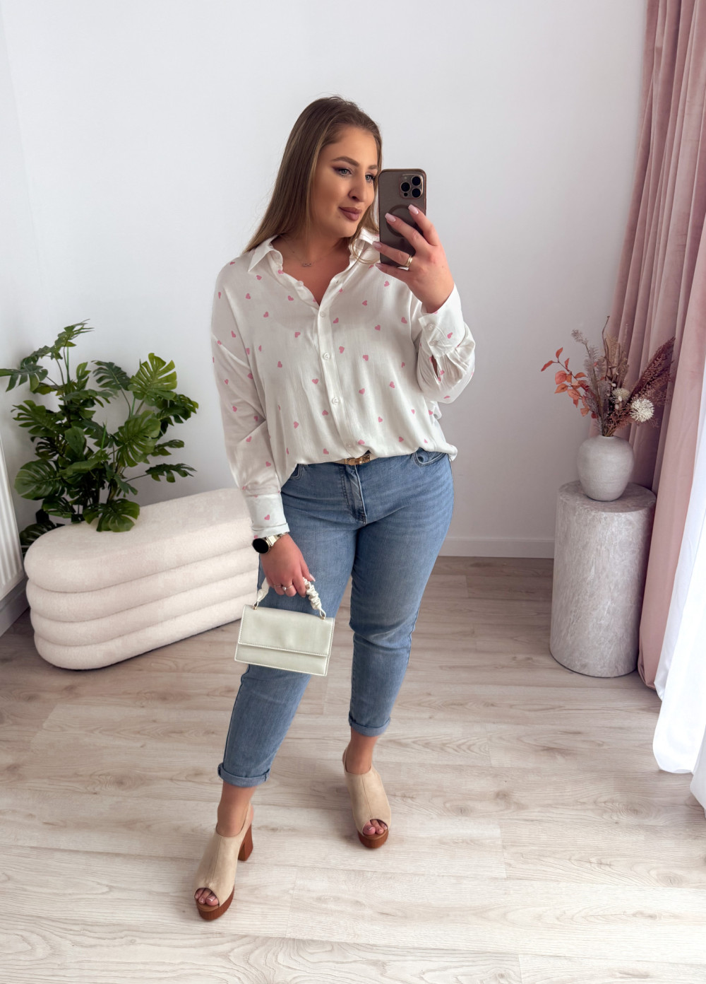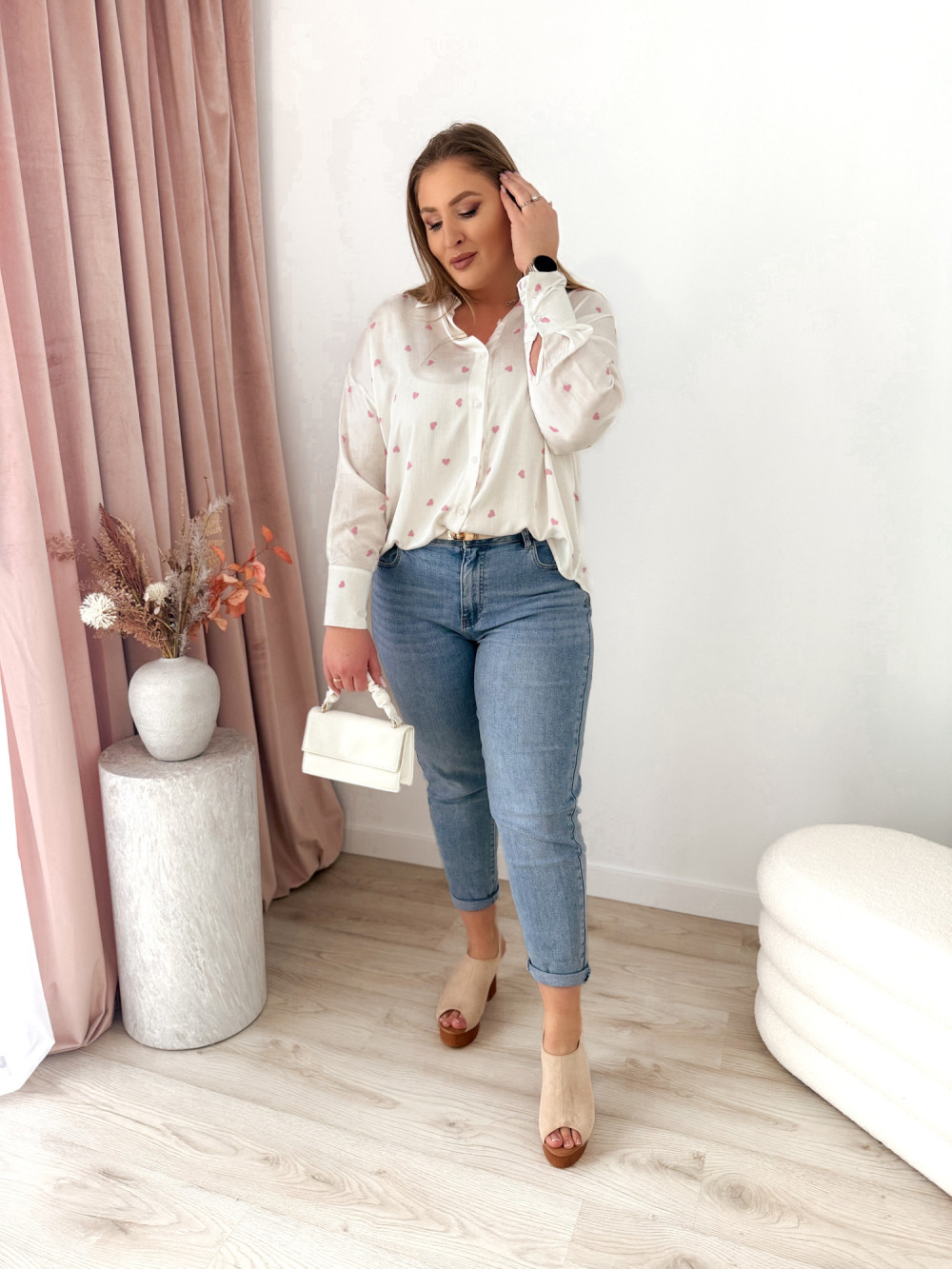 Koszula oversize w różowe serduszka Emy