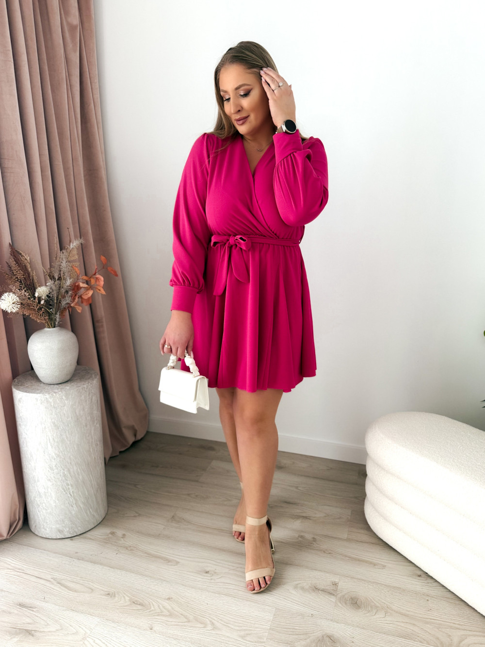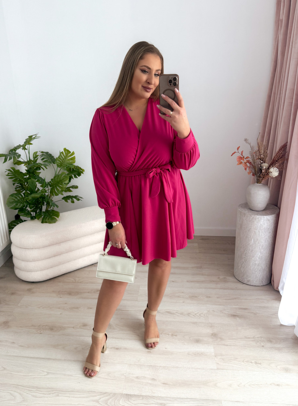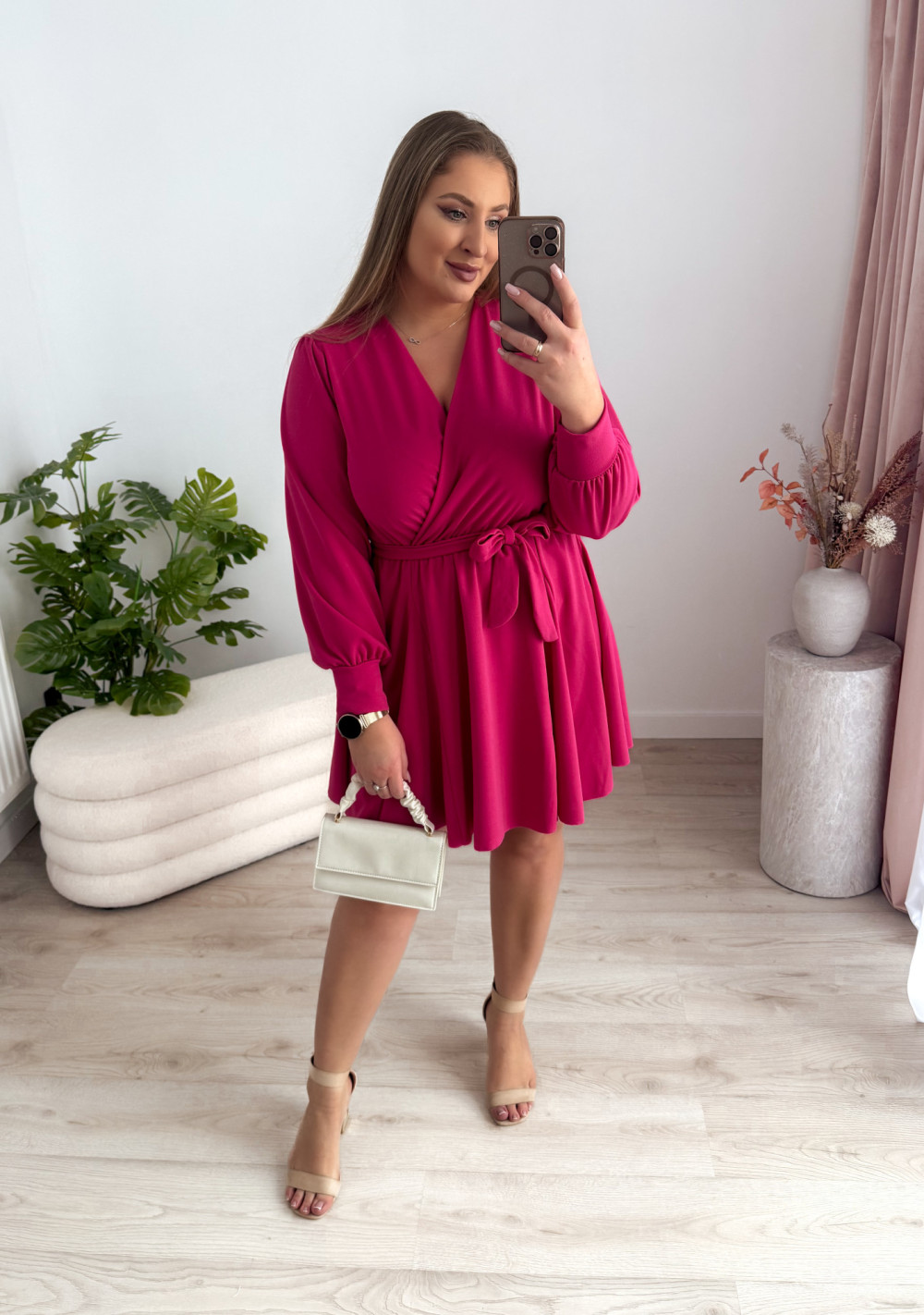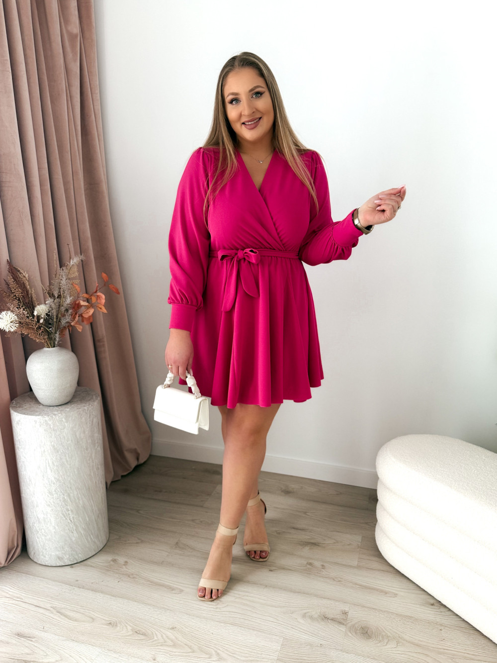 Sukienka krótka rozkloszowana z wiązaniem w talii Linzi - fuksja
