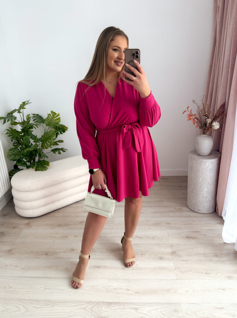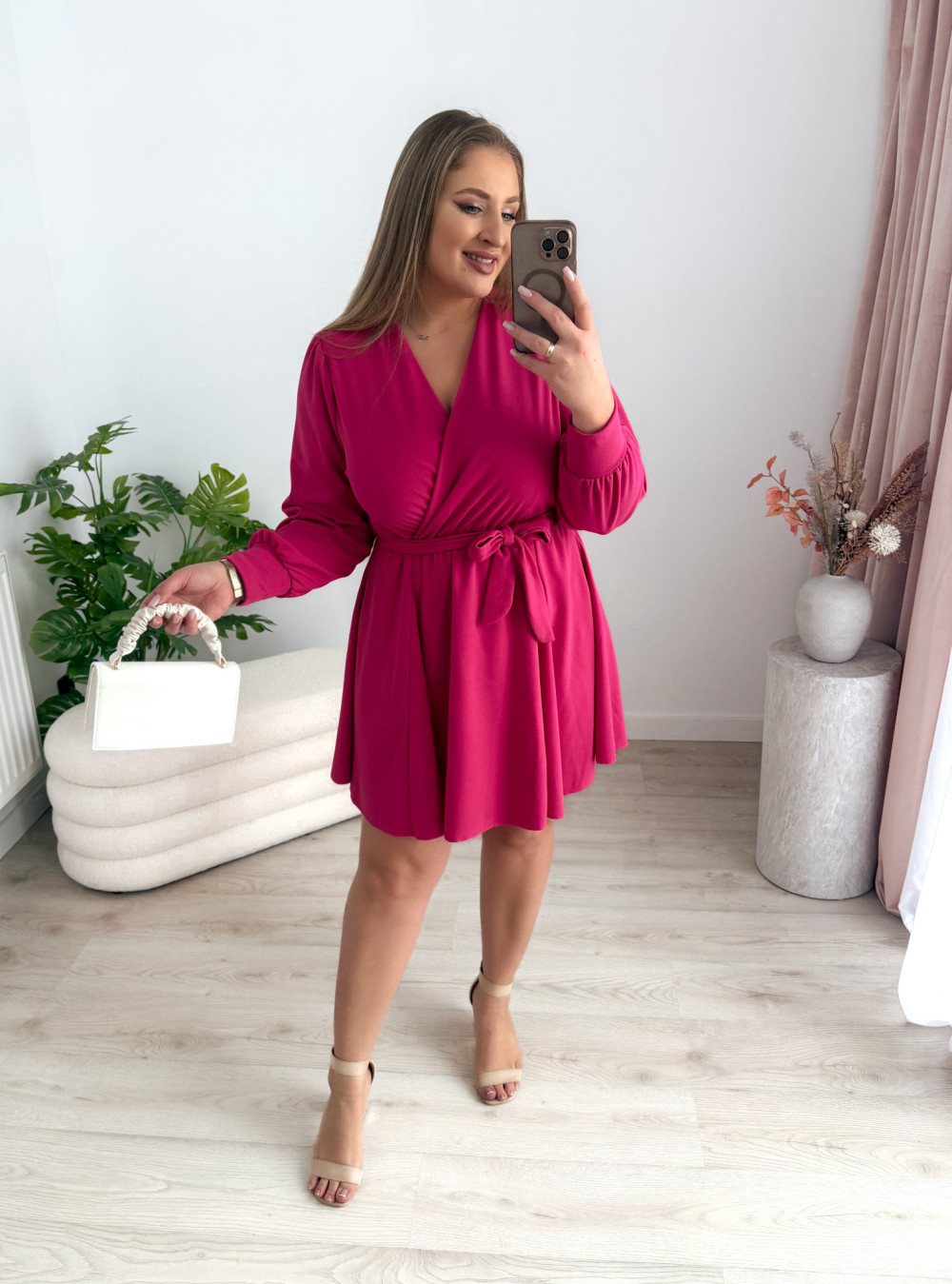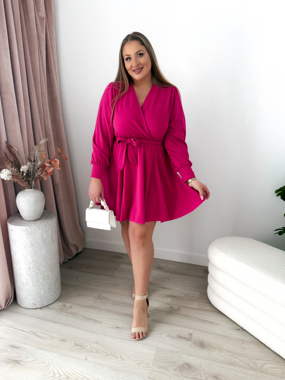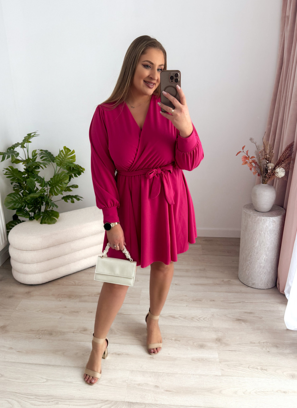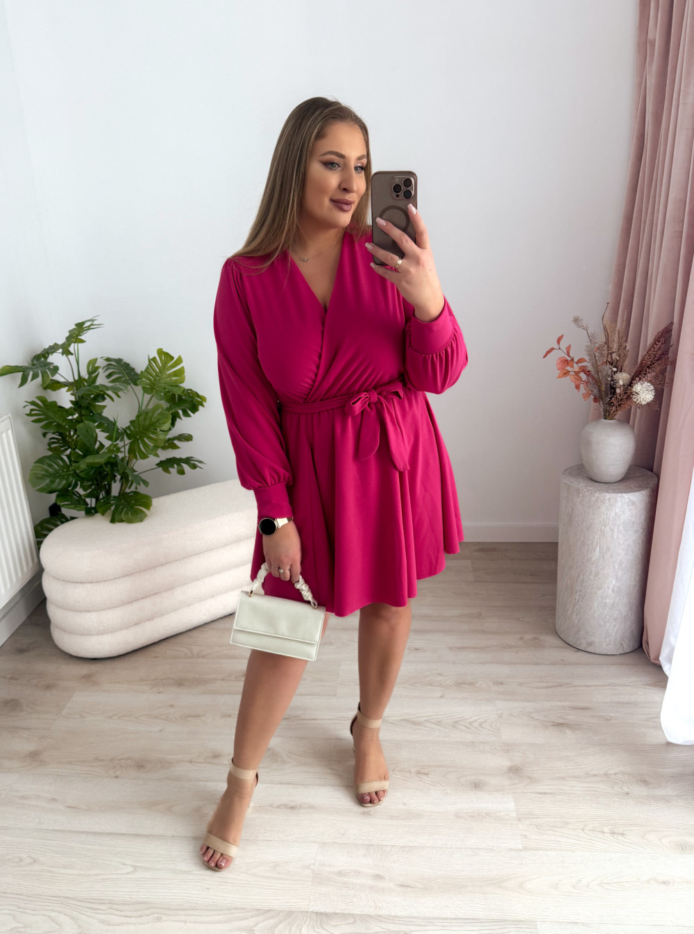 Sukienka krótka rozkloszowana z wiązaniem w talii Linzi - fuksja