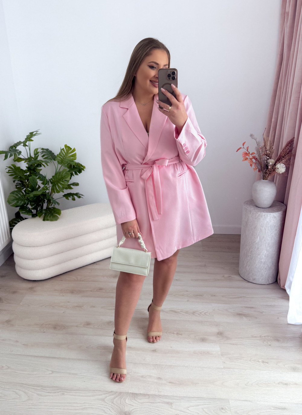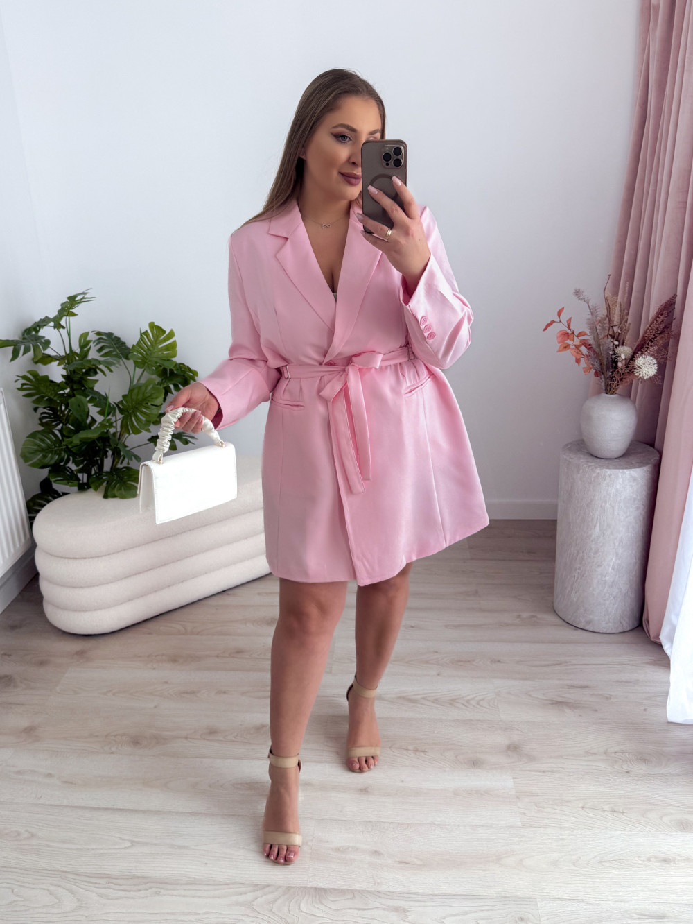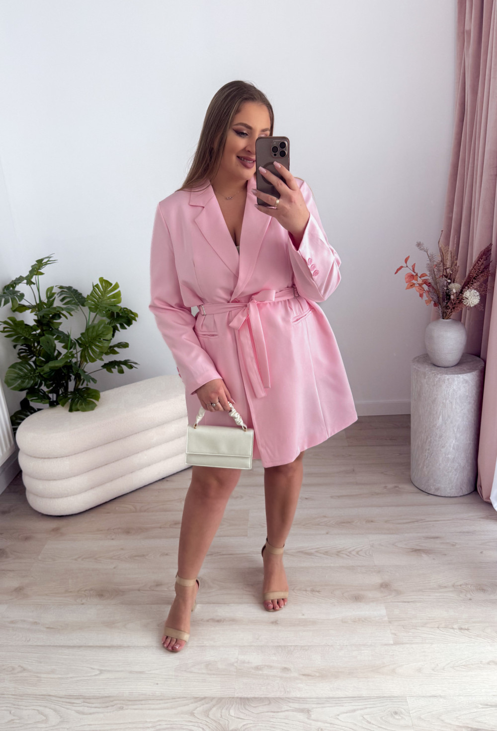 PREORDER Sukienka marynarkowa plus size z wiązaniem Elara - puder (wysyłka za ok. 10 dni)