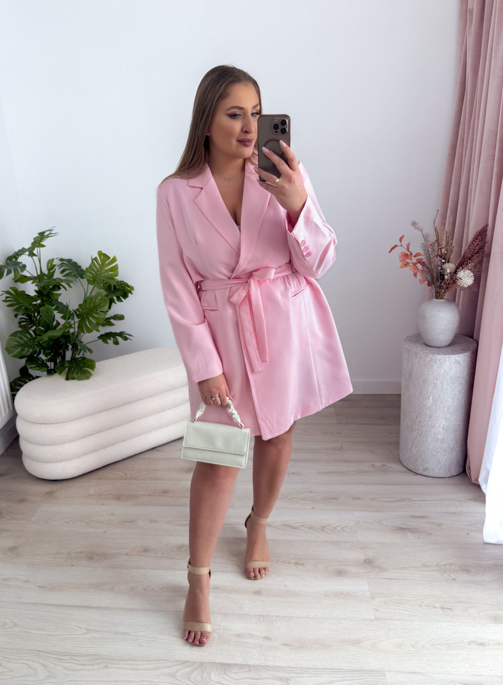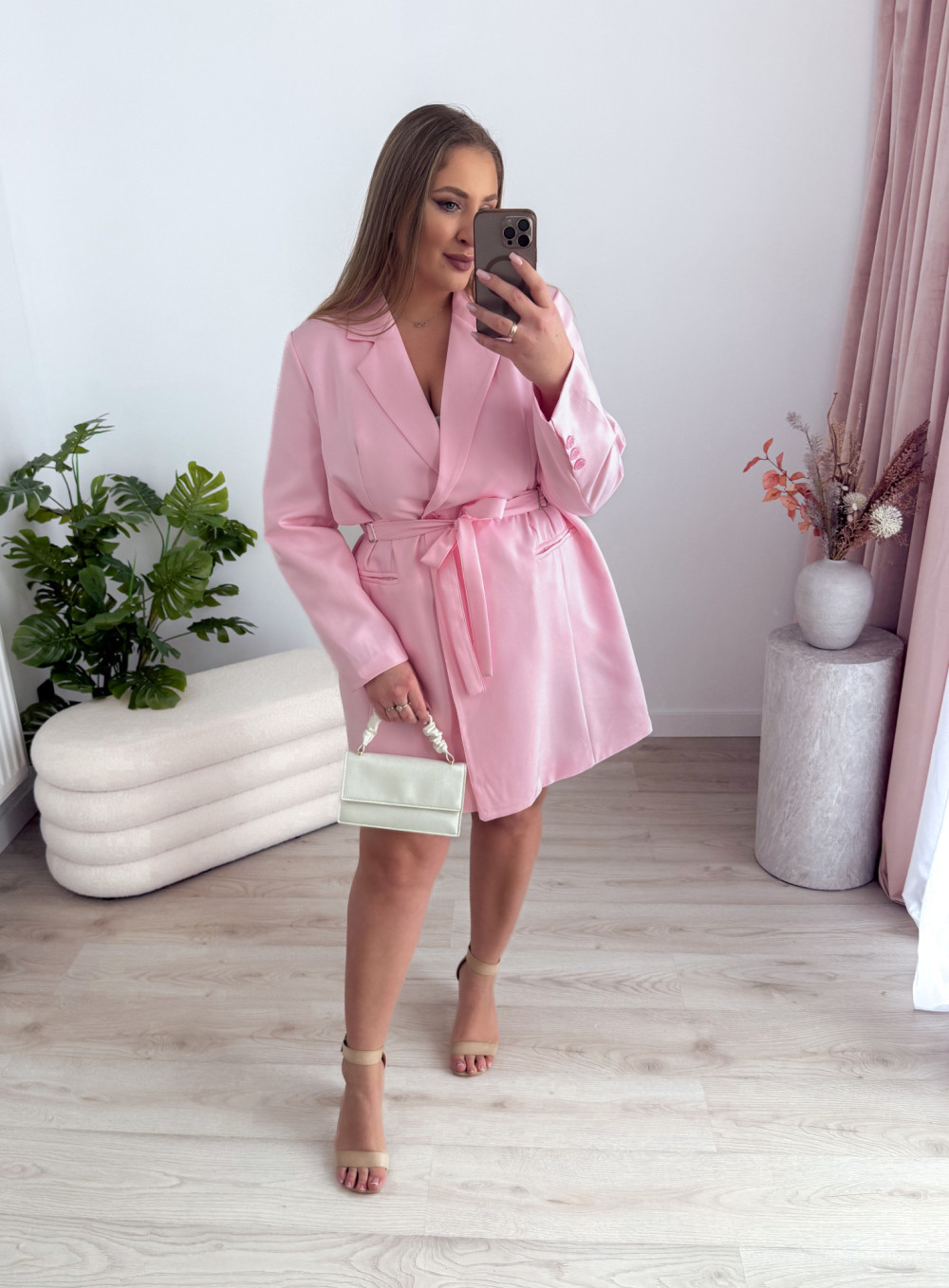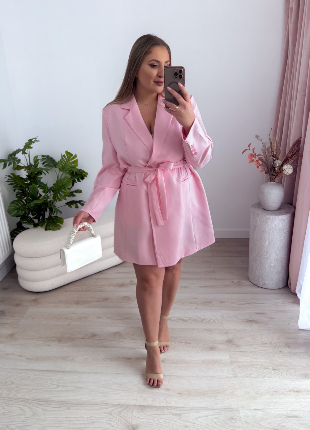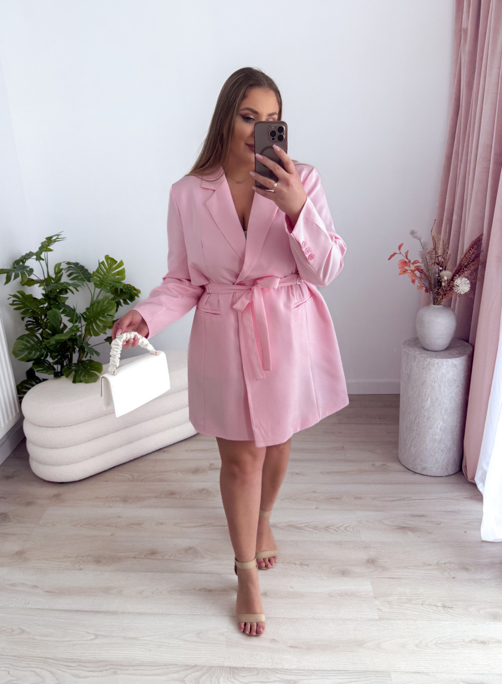 PREORDER Sukienka marynarkowa plus size z wiązaniem Elara - puder (wysyłka za ok. 10 dni)