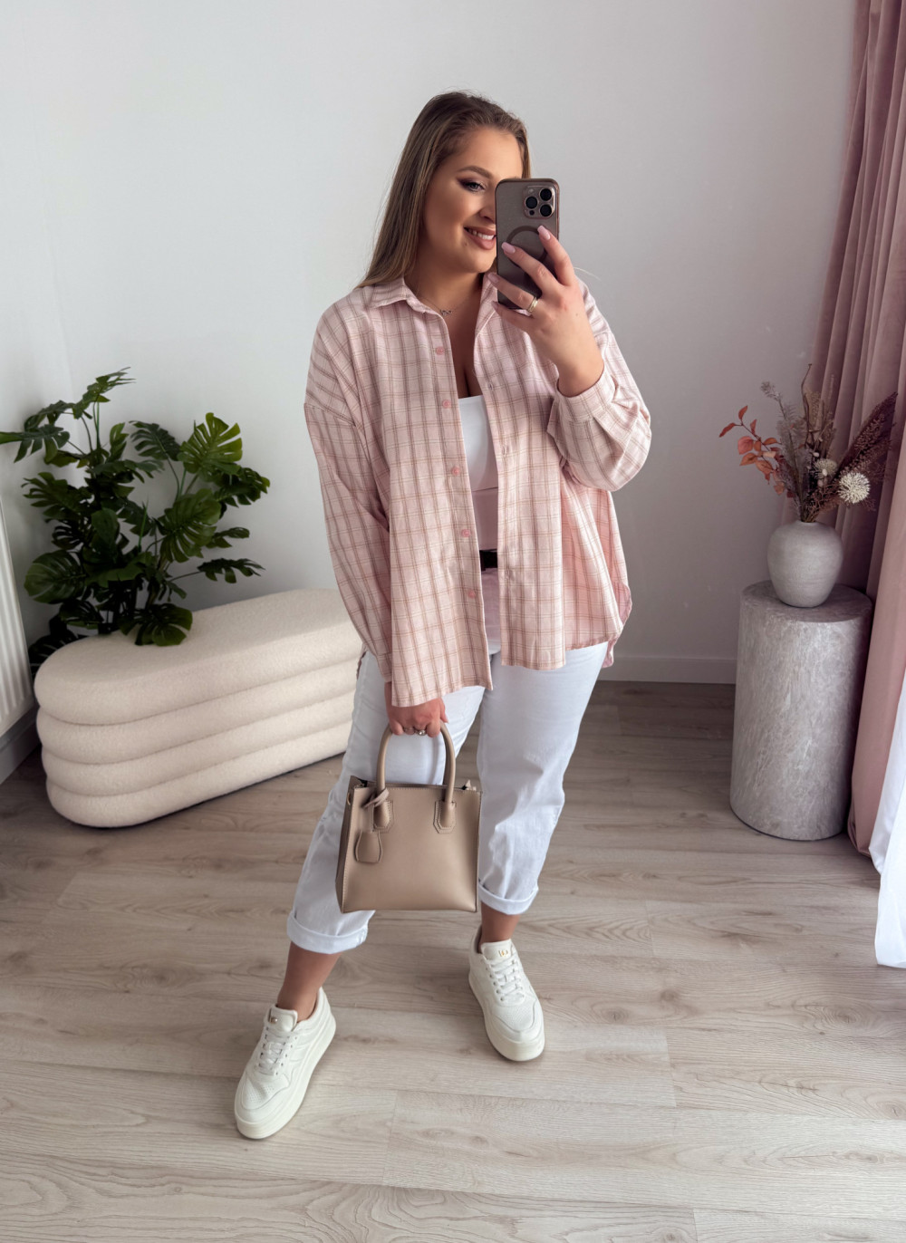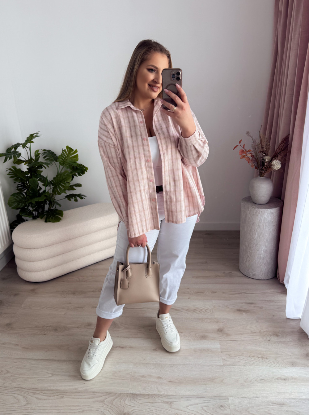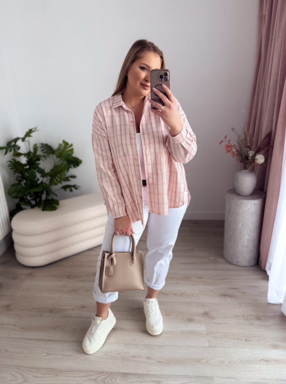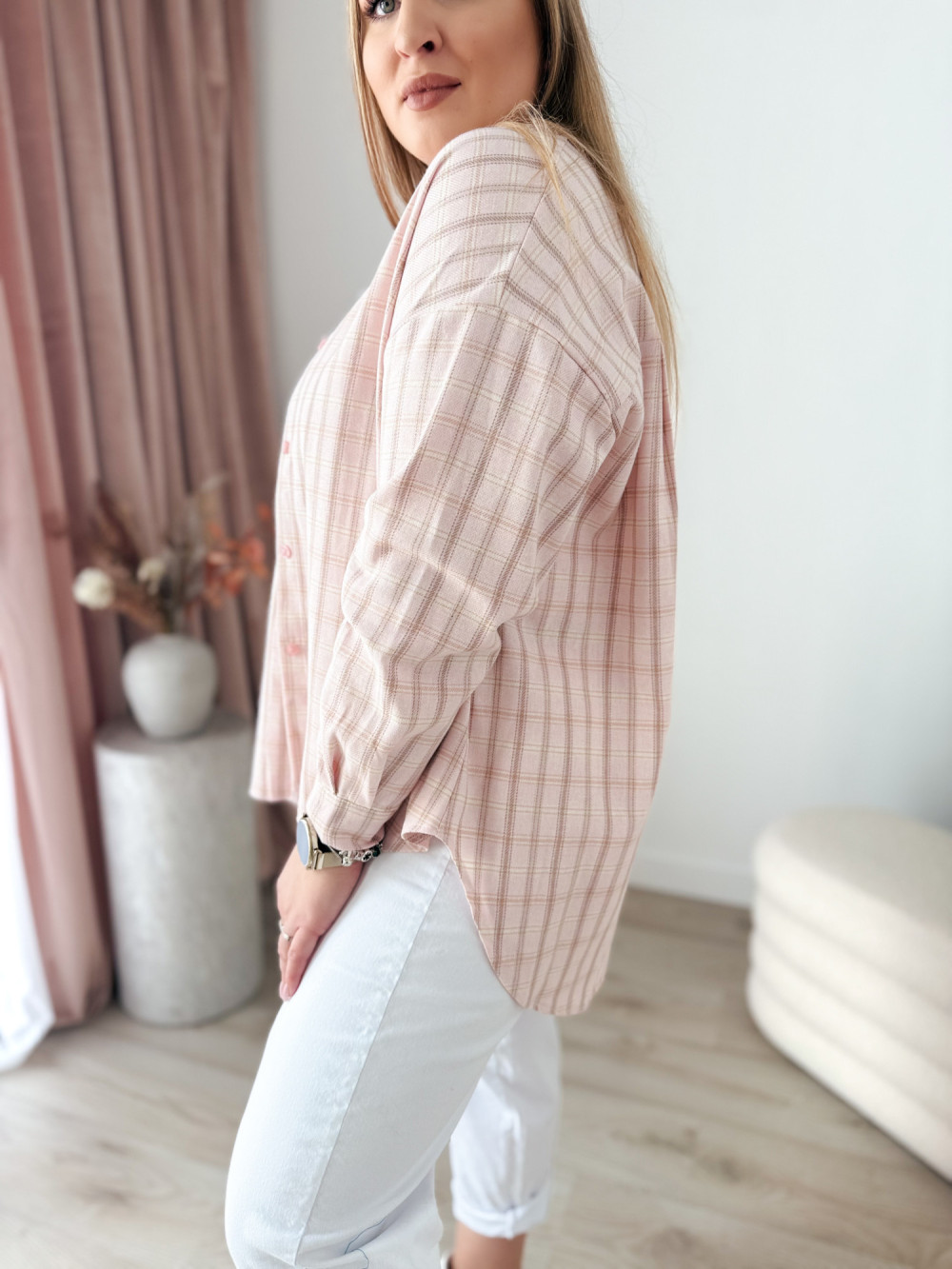 Koszula oversize pudrowa w drobną beżową kratkę Relaxed