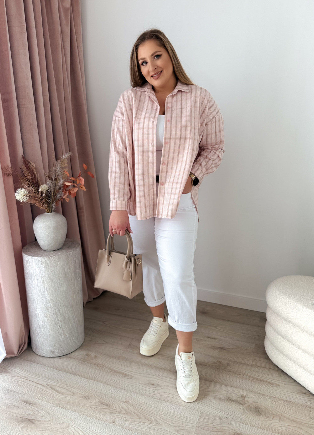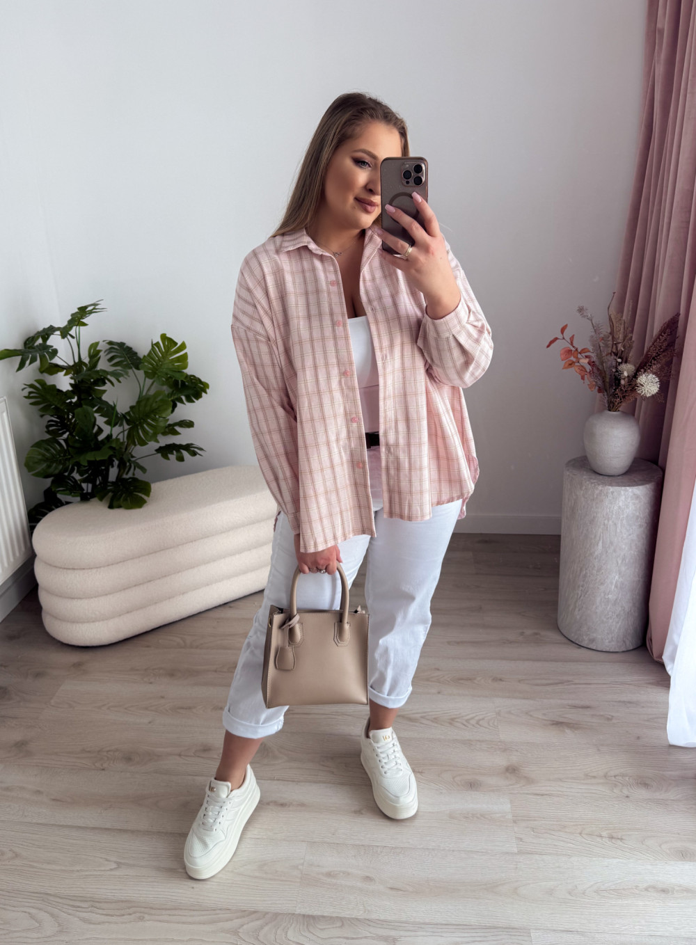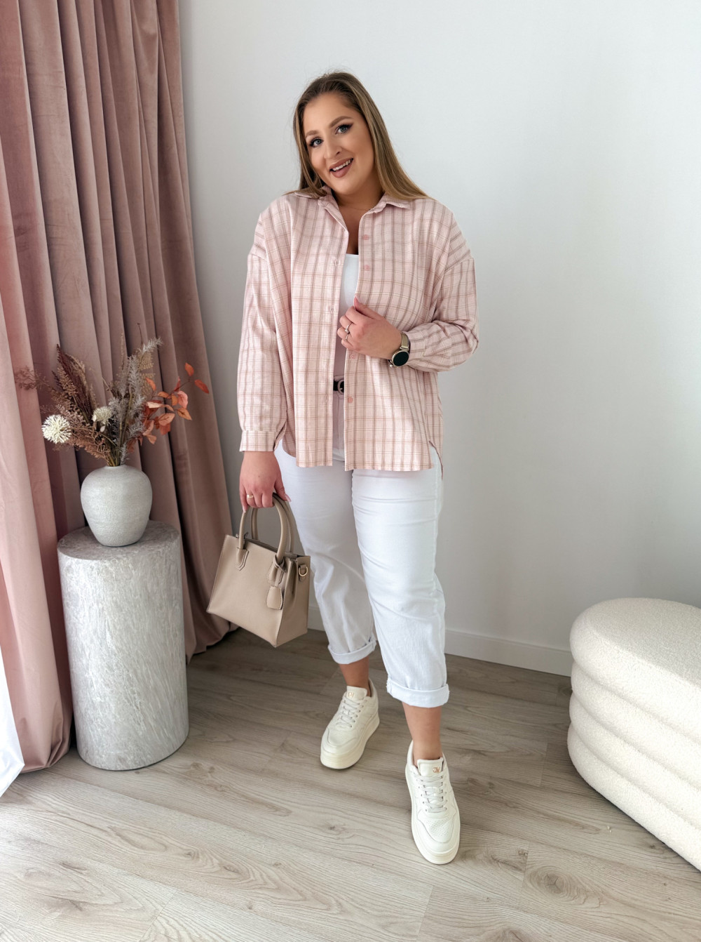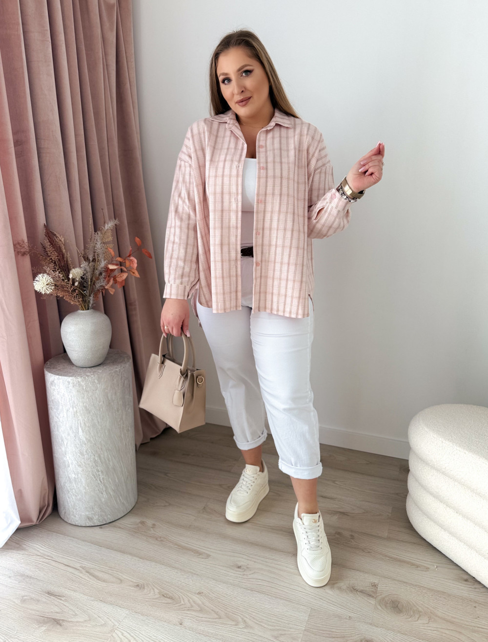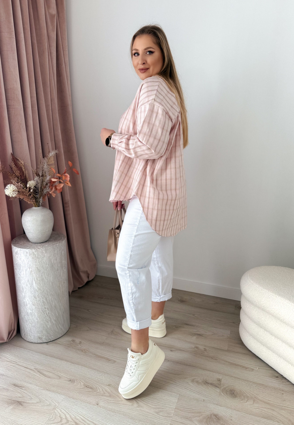 Koszula oversize pudrowa w drobną beżową kratkę Relaxed