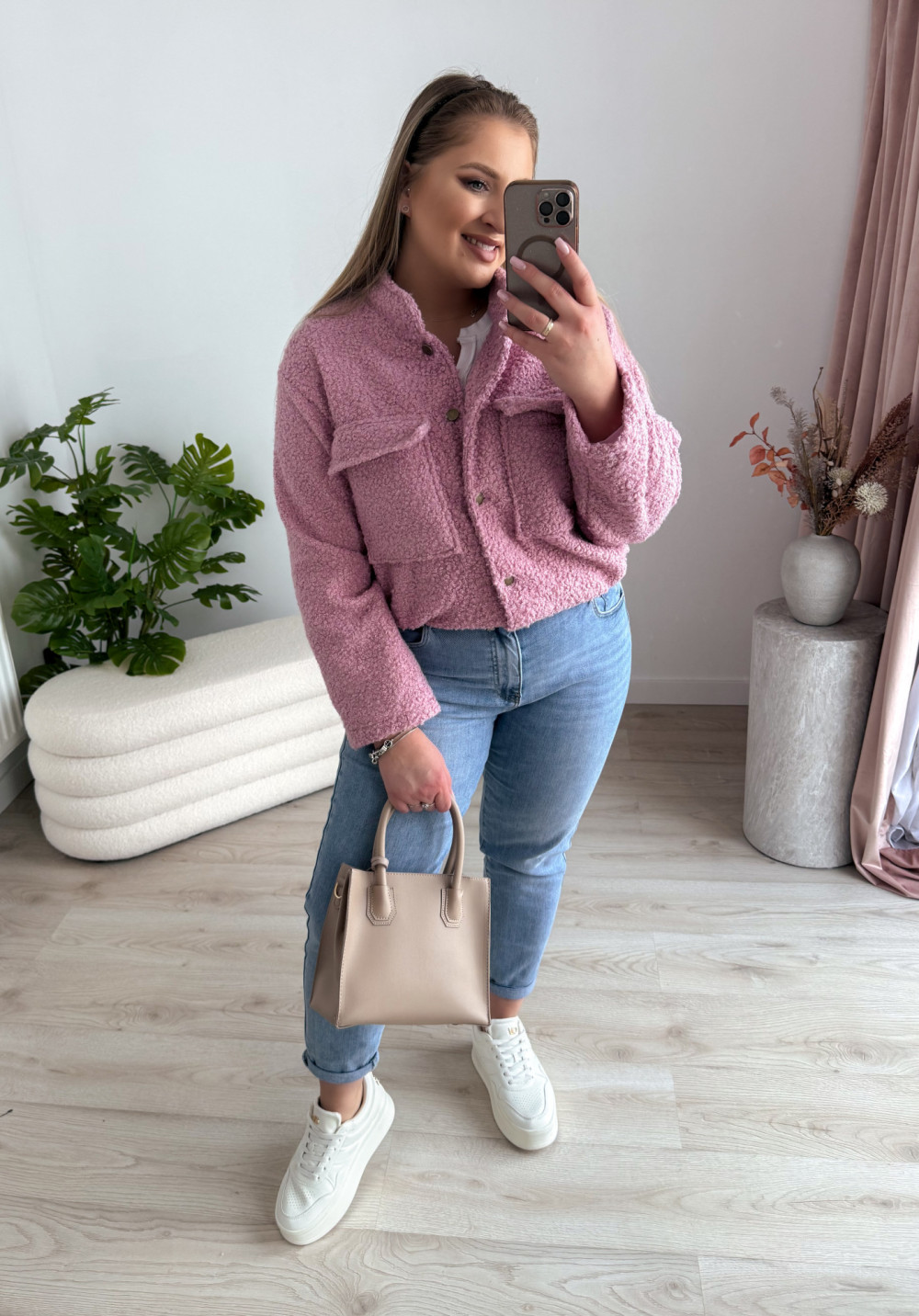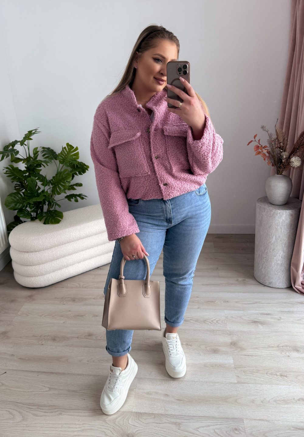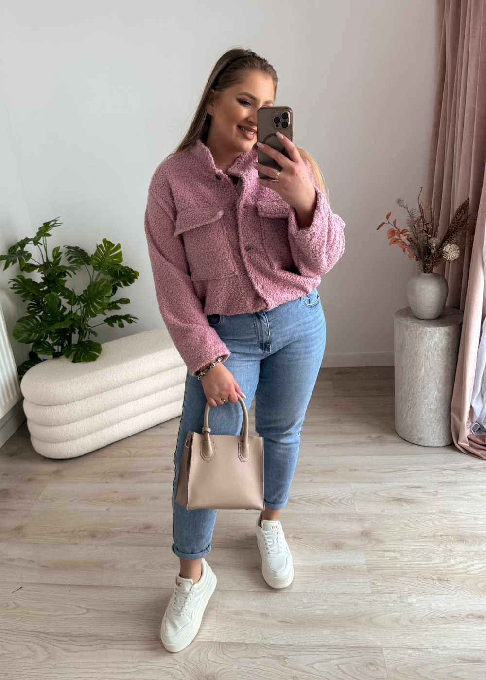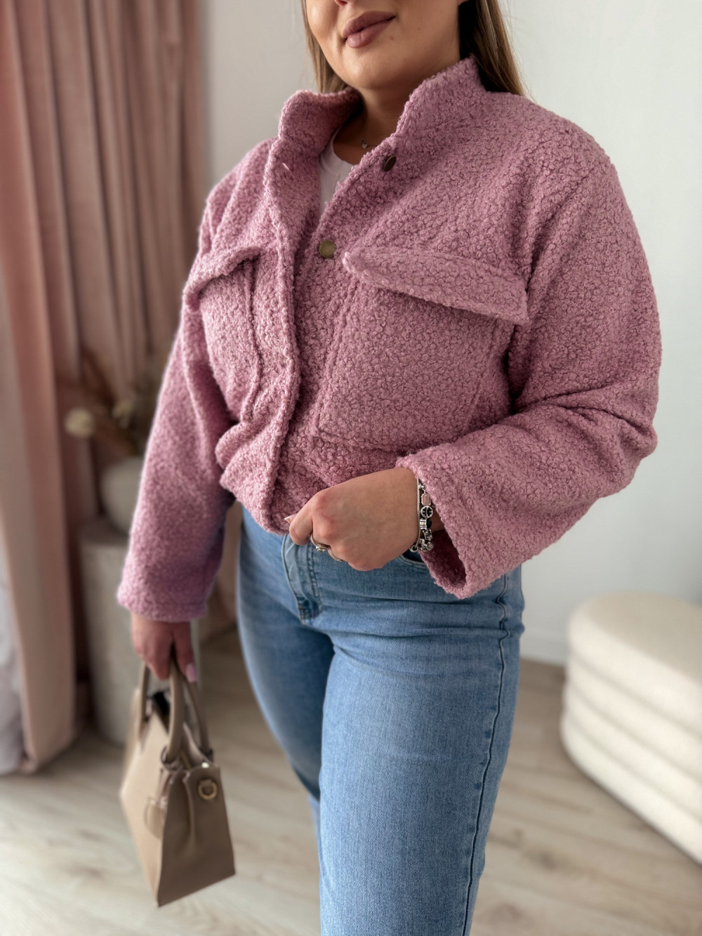 Kurtka boucle/baranek zapinana na guziki Alfi - brudny róż