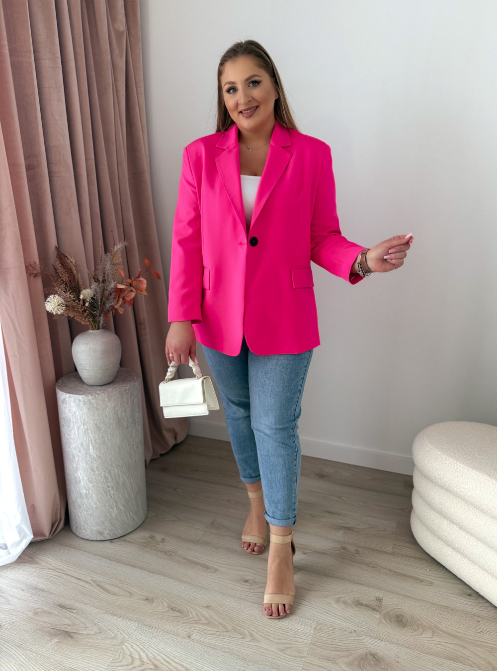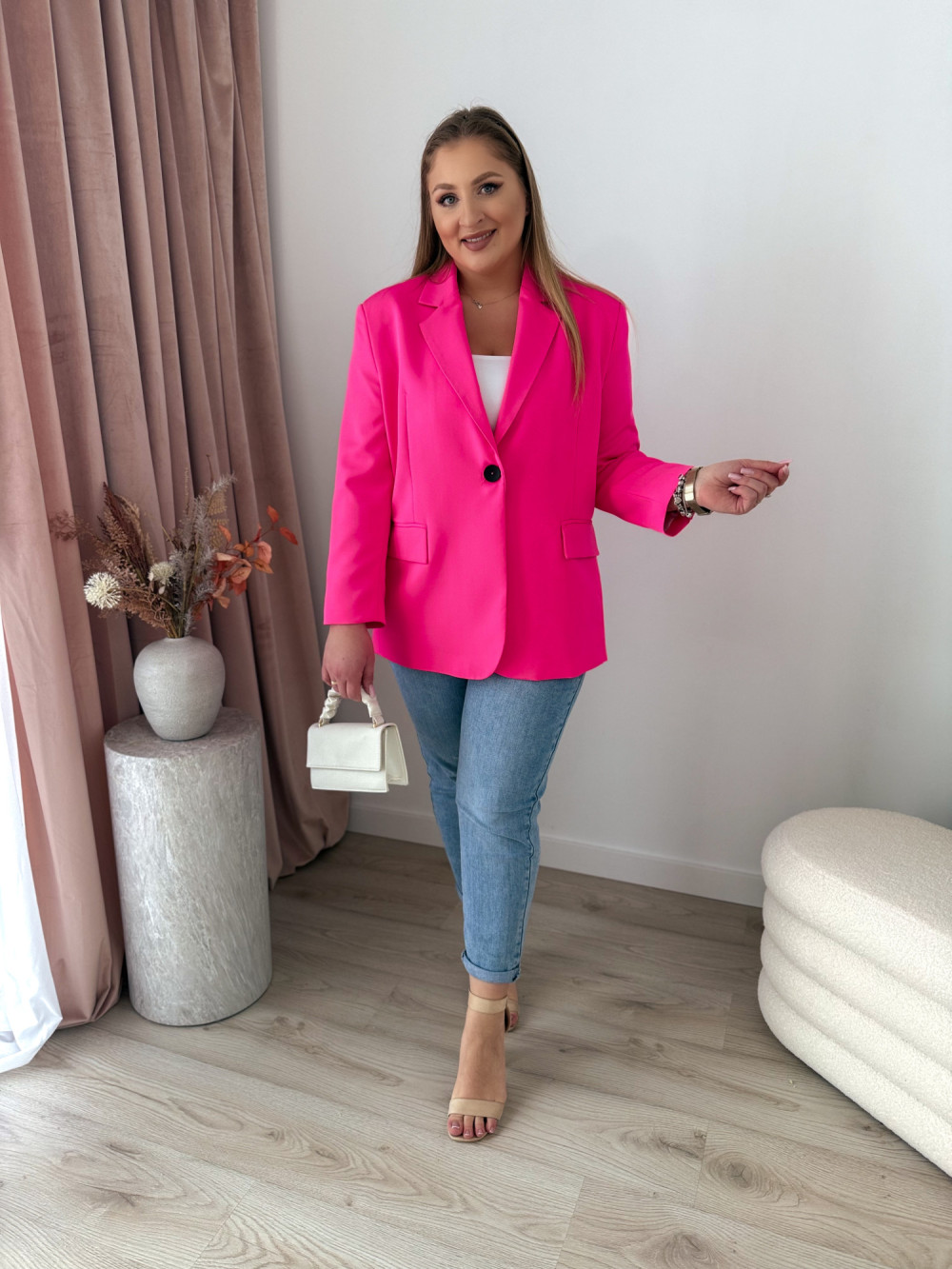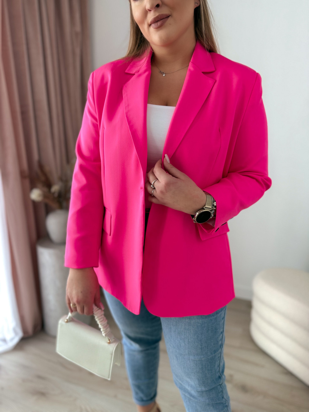 Marynarka oversize zapinana na guzik Sofia - neon fuksja