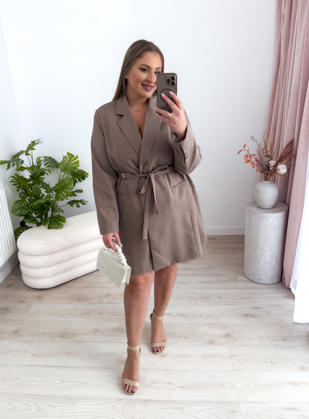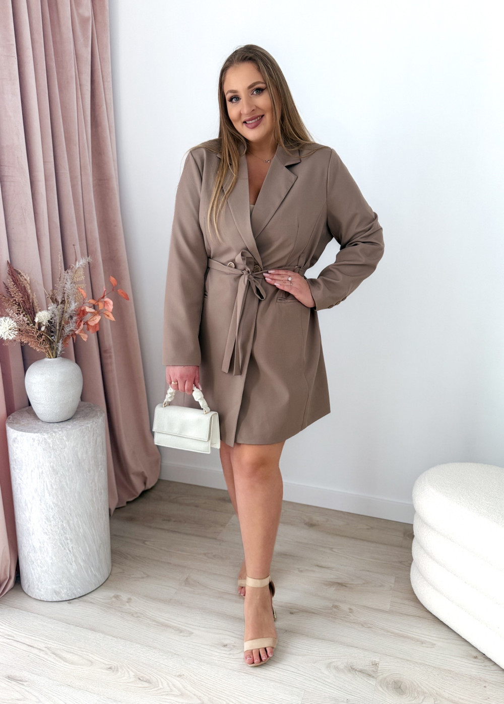 PREORDER Sukienka marynarkowa plus size z wiązaniem Elara - beż (wysyłka za ok. 10 dni)