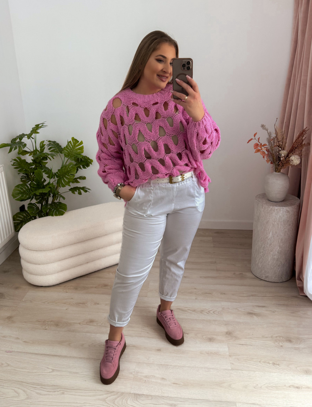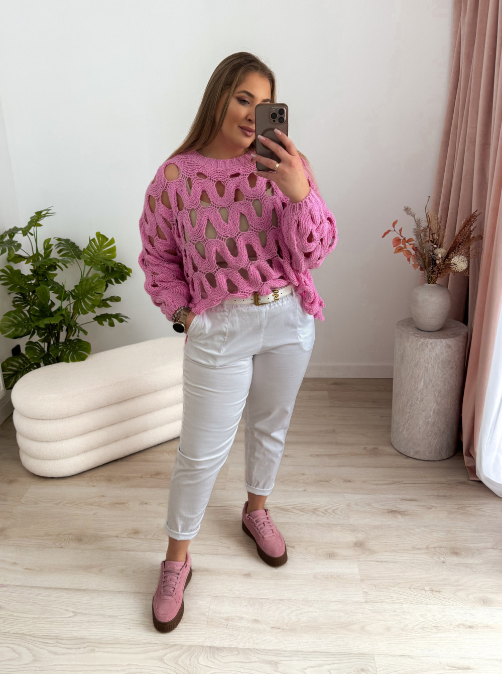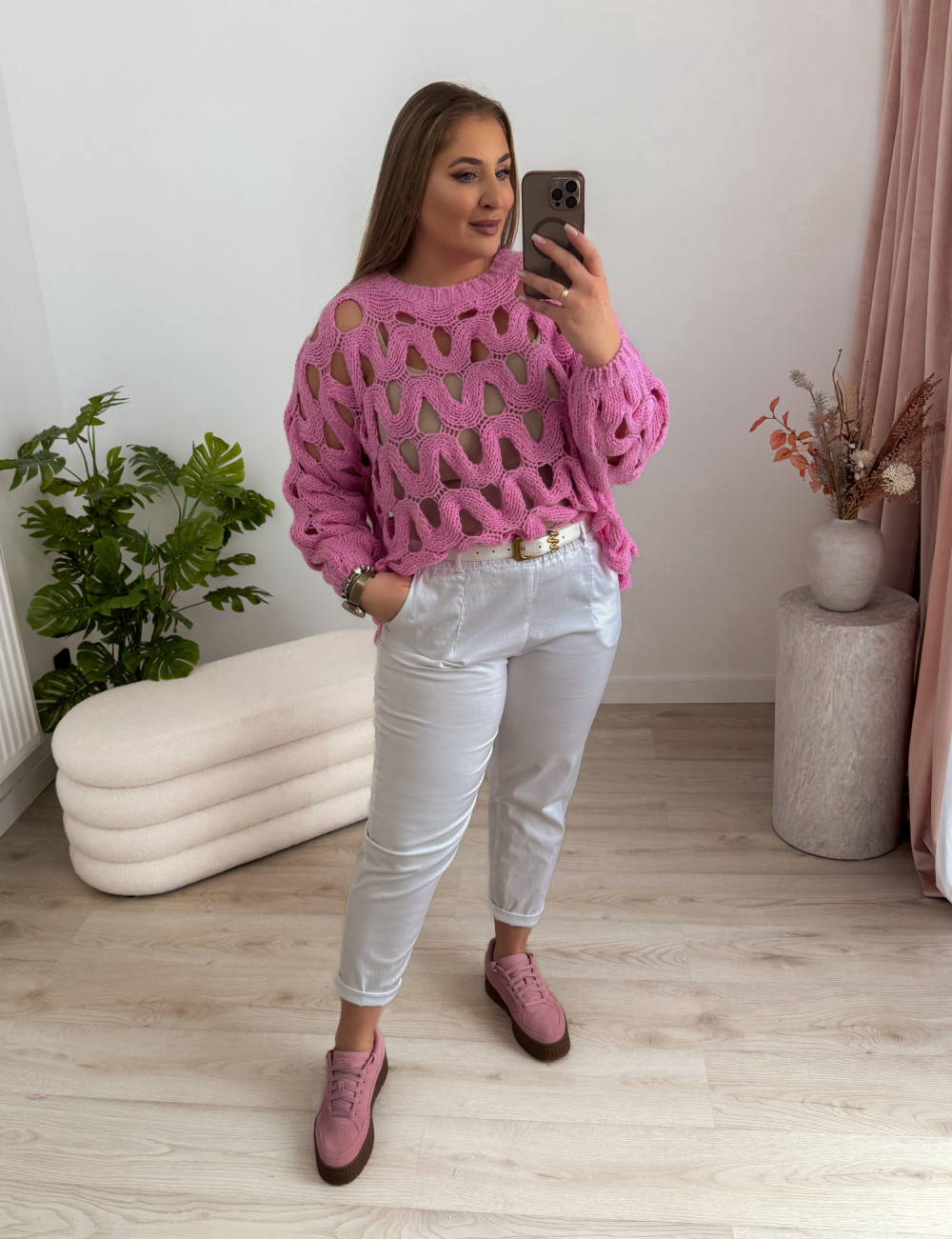 Sweter nietoperzowy ażurowy Lopez - cukierkowy
