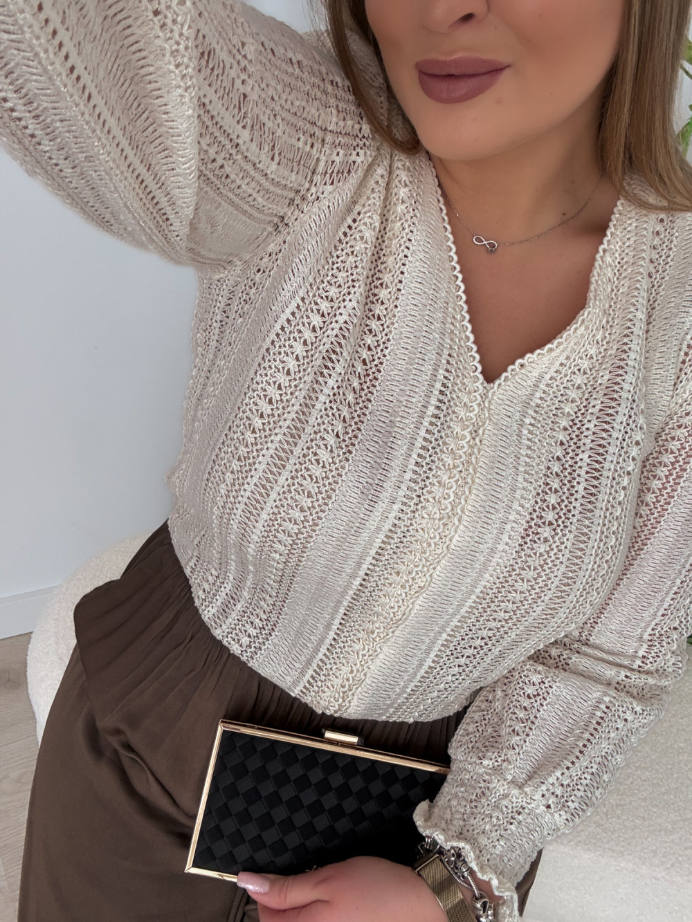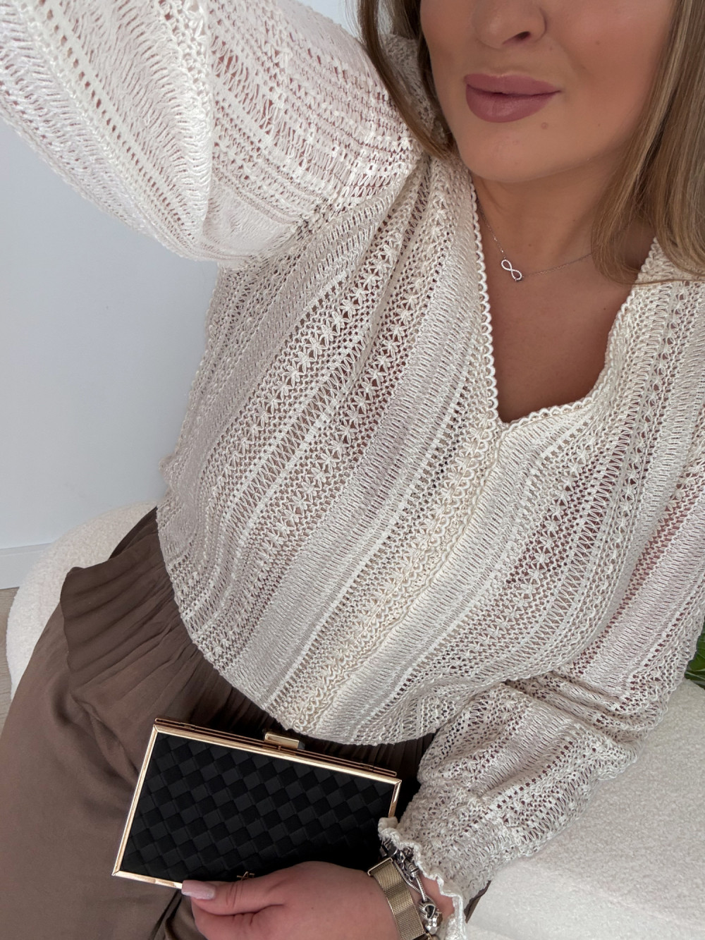 - Ażurowa struktura nadająca lekkości i boho klimatu