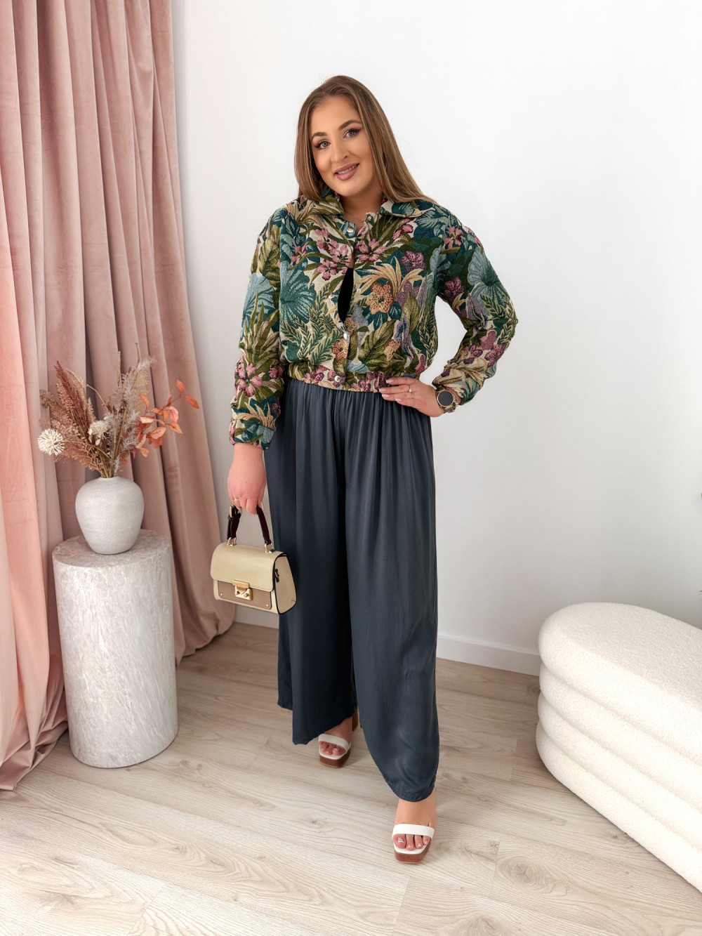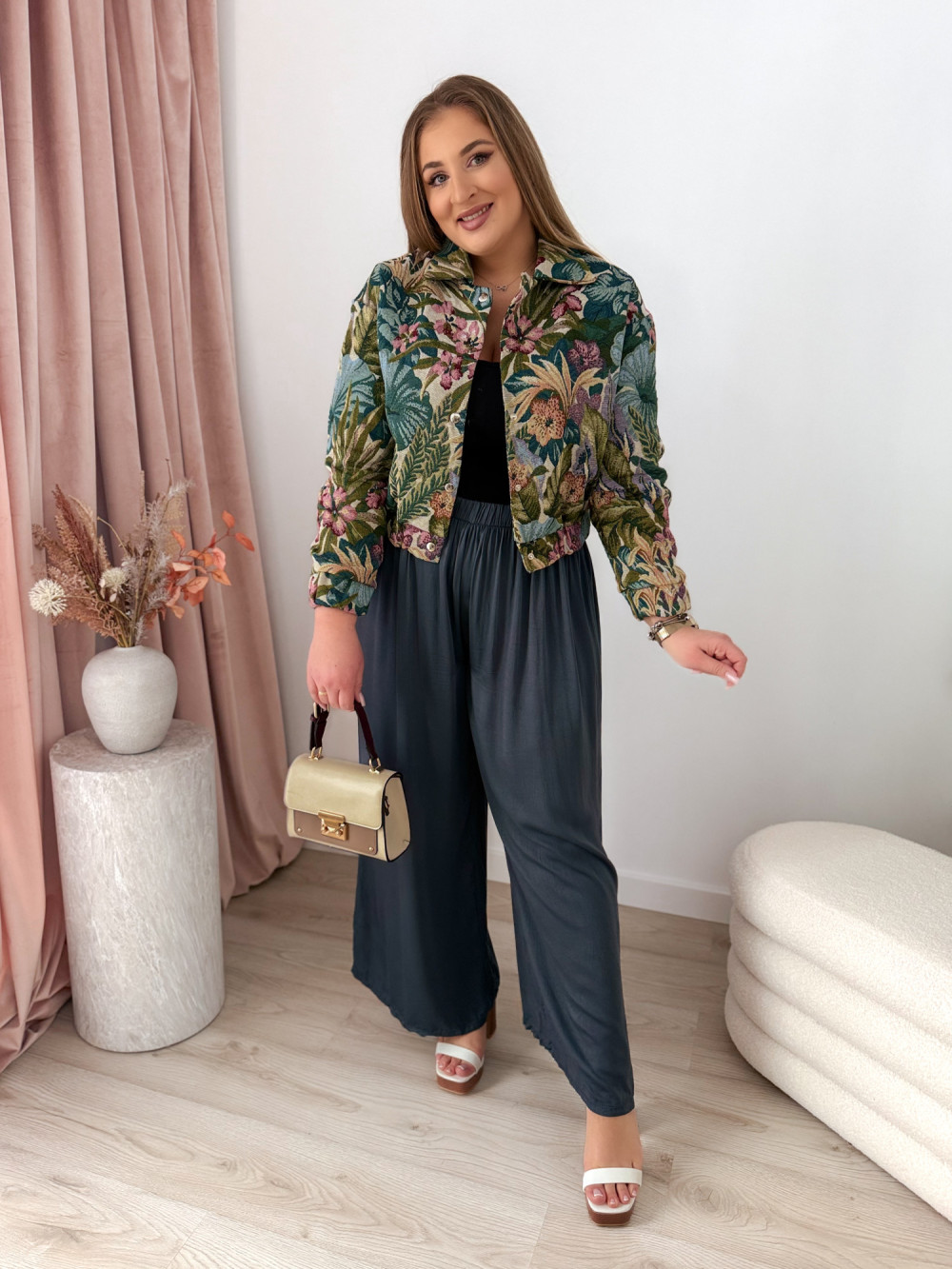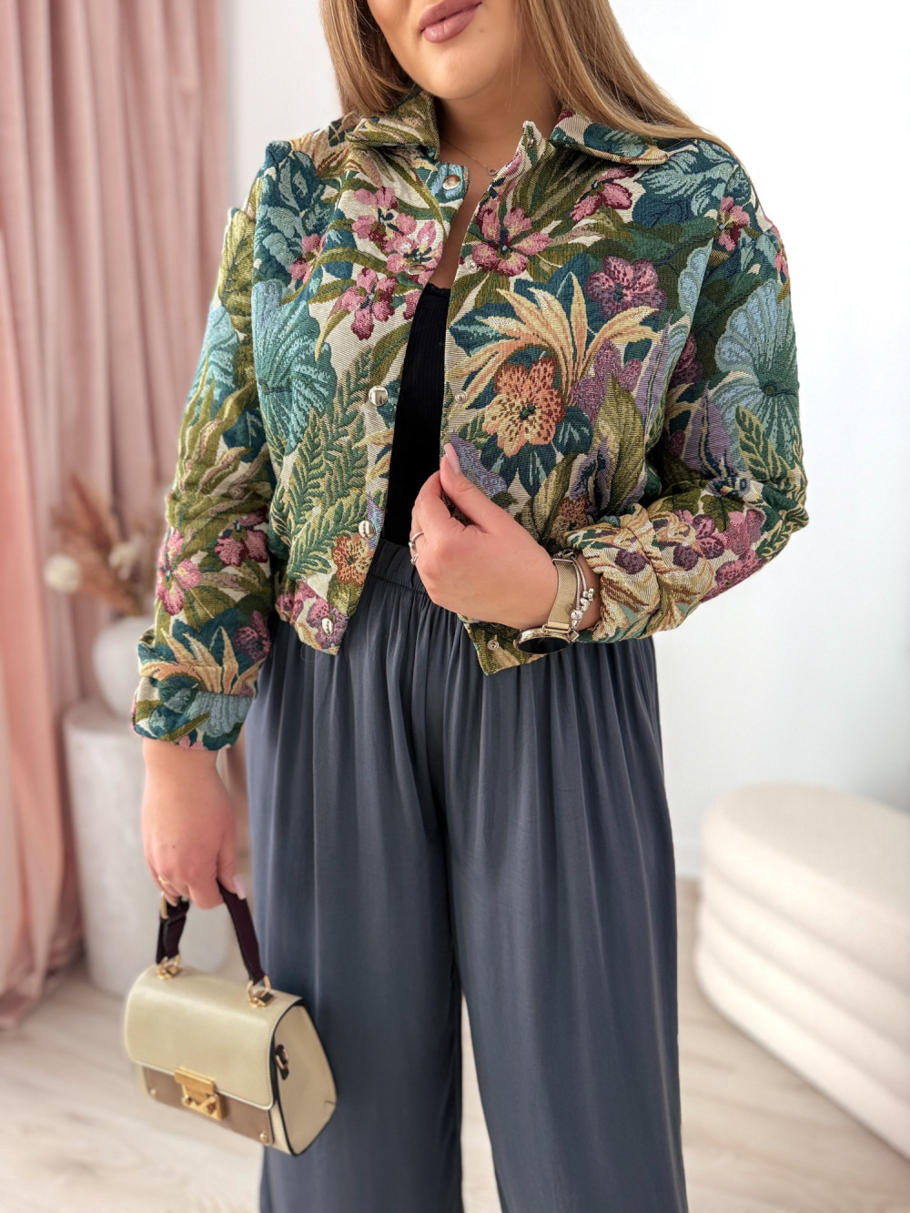 Bomberka w kwiaty o gobelinowym splocie Tessi
