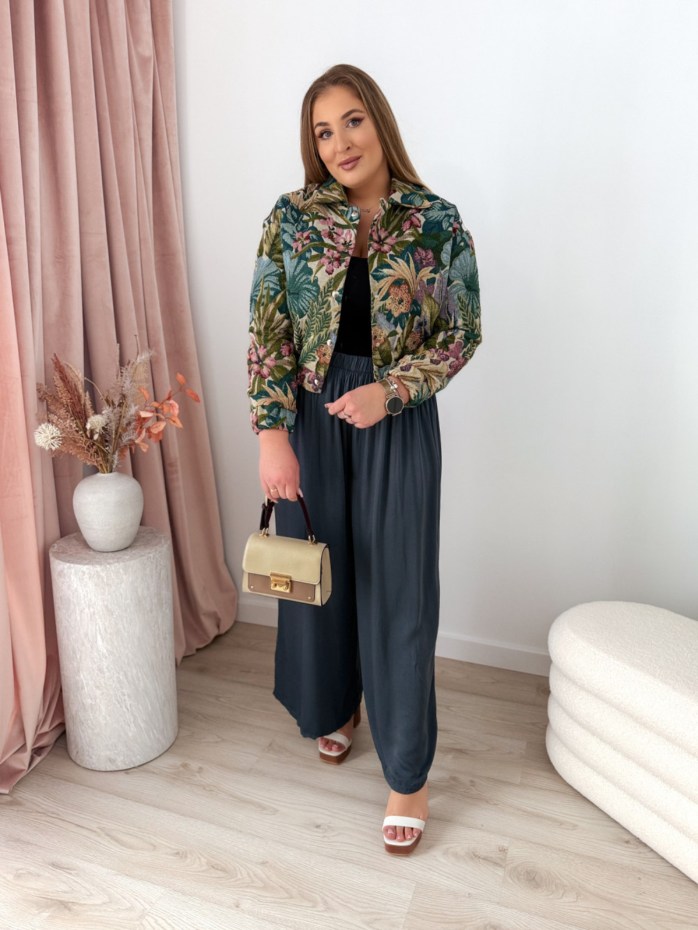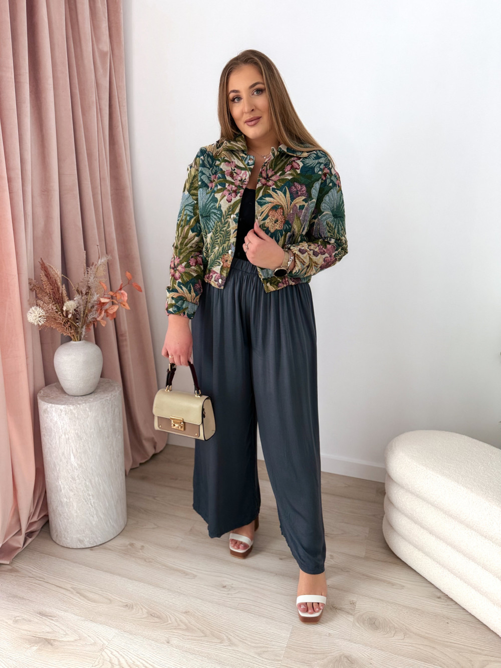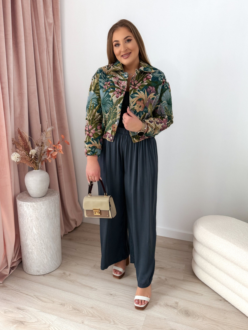 Bomberka w kwiaty o gobelinowym splocie Tessi