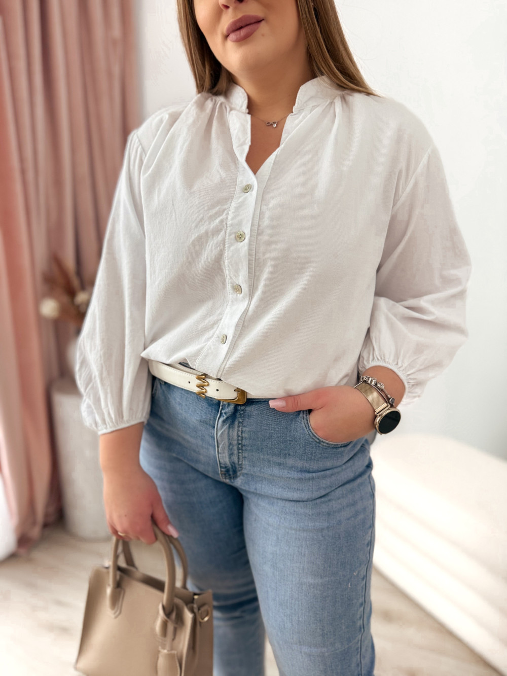 Koszula sztruksowa zapinana na guziki Flambi - biała