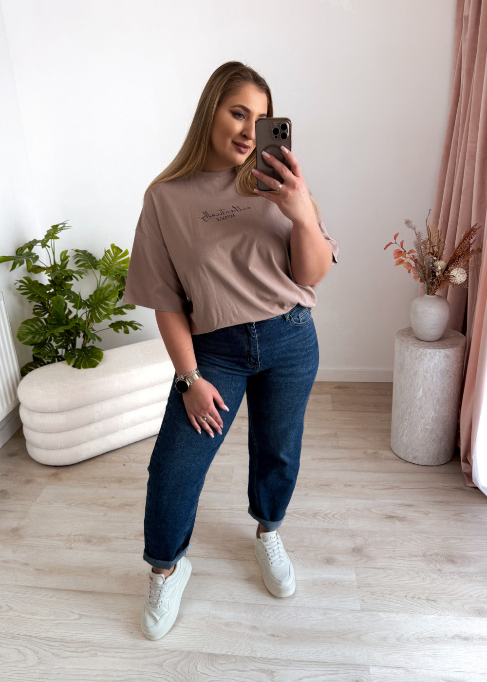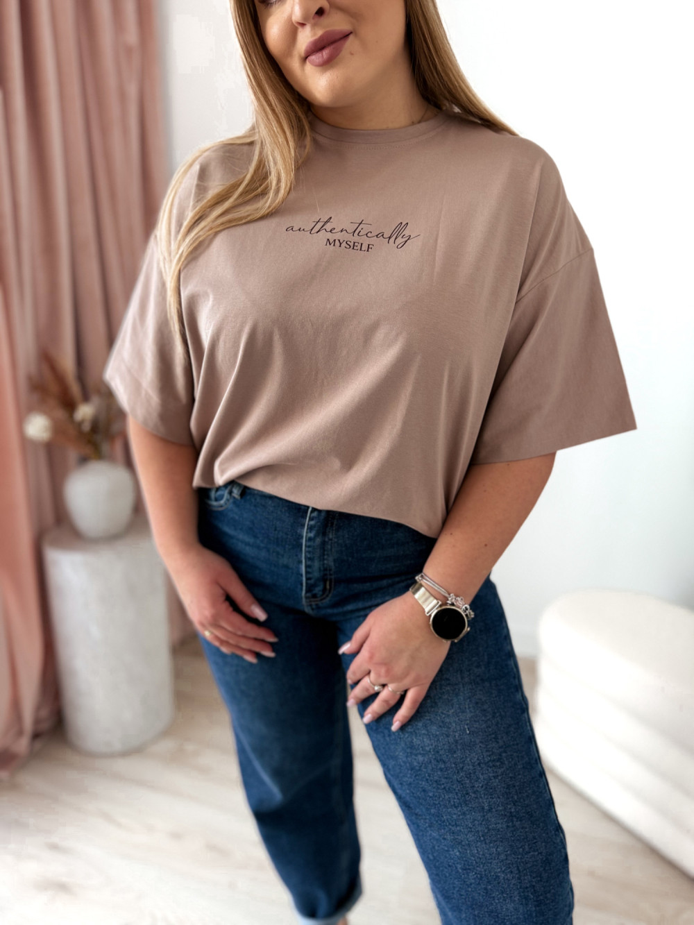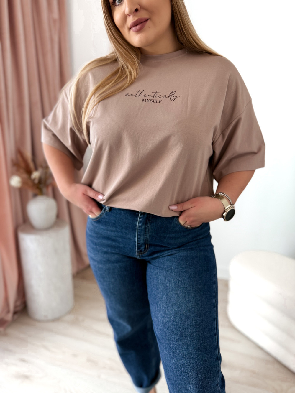 Bluzka oversize z krótkim rękawem to idealna propozycja dla kobiet, które kochają luz i swobodny styl na co dzień. Modny napis dodaje jej charakteru i sprawia, że nawet prosta stylizacja nabiera wyrazistości.