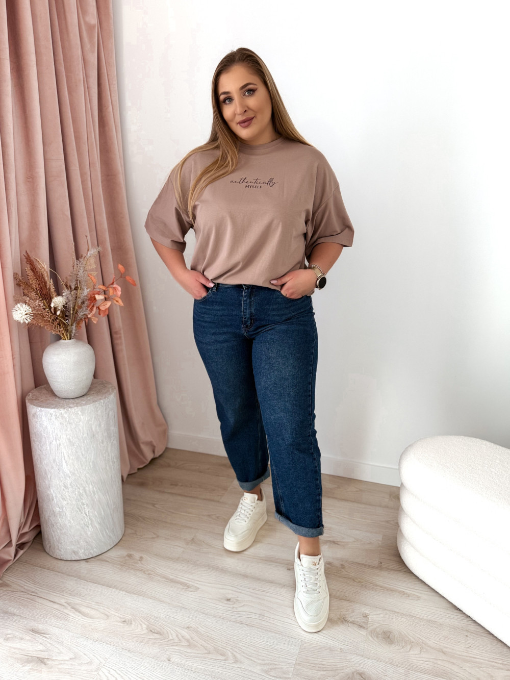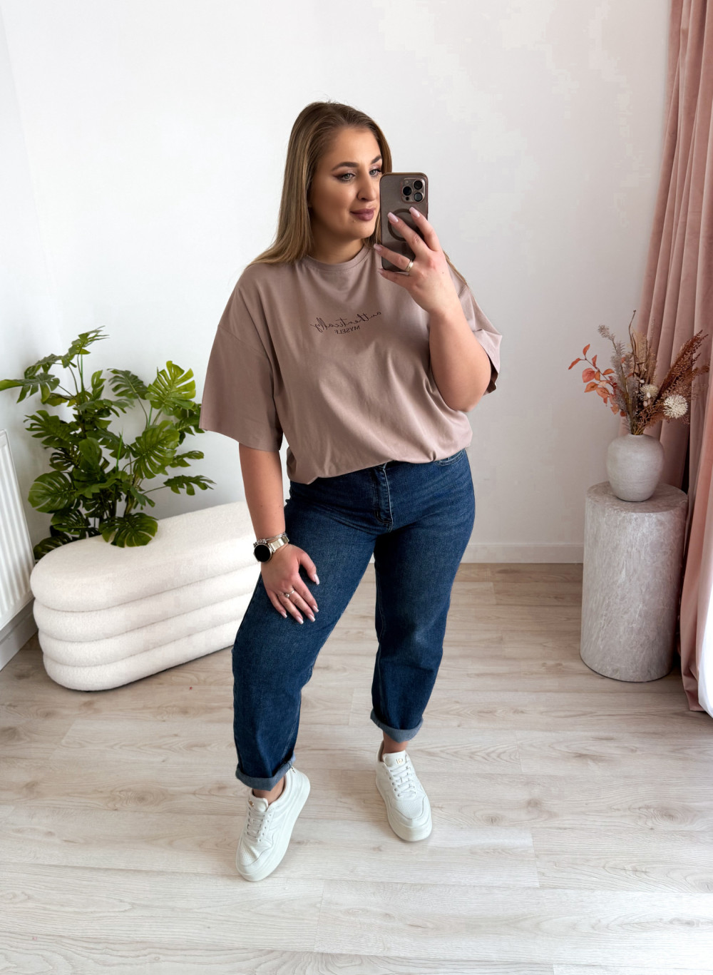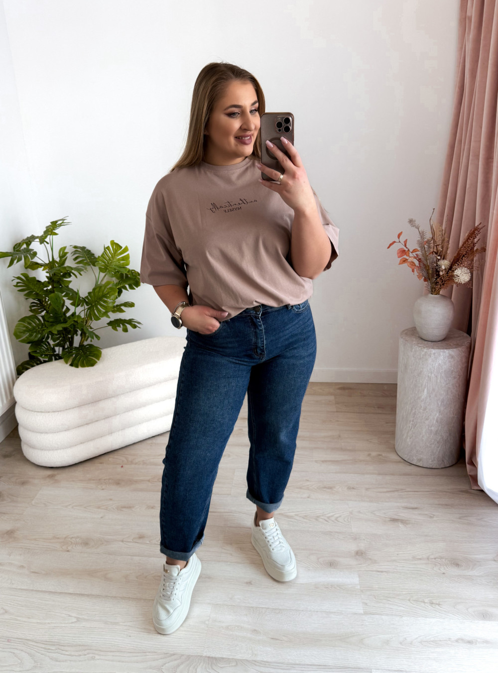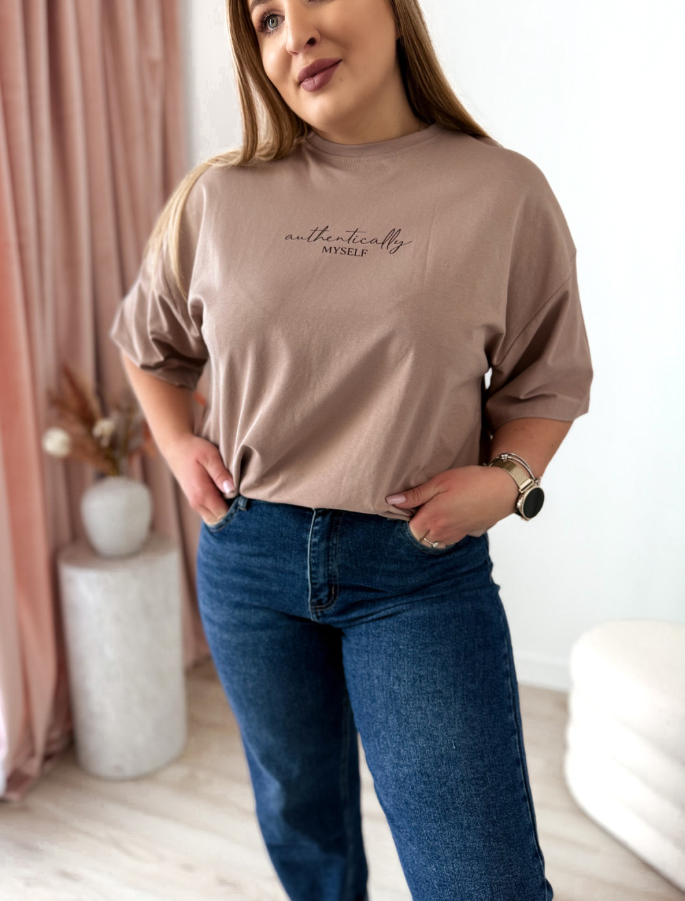 Bluzka oversize z krótkim rękawem to idealna propozycja dla kobiet, które kochają luz i swobodny styl na co dzień. Modny napis dodaje jej charakteru i sprawia, że nawet prosta stylizacja nabiera wyrazistości.