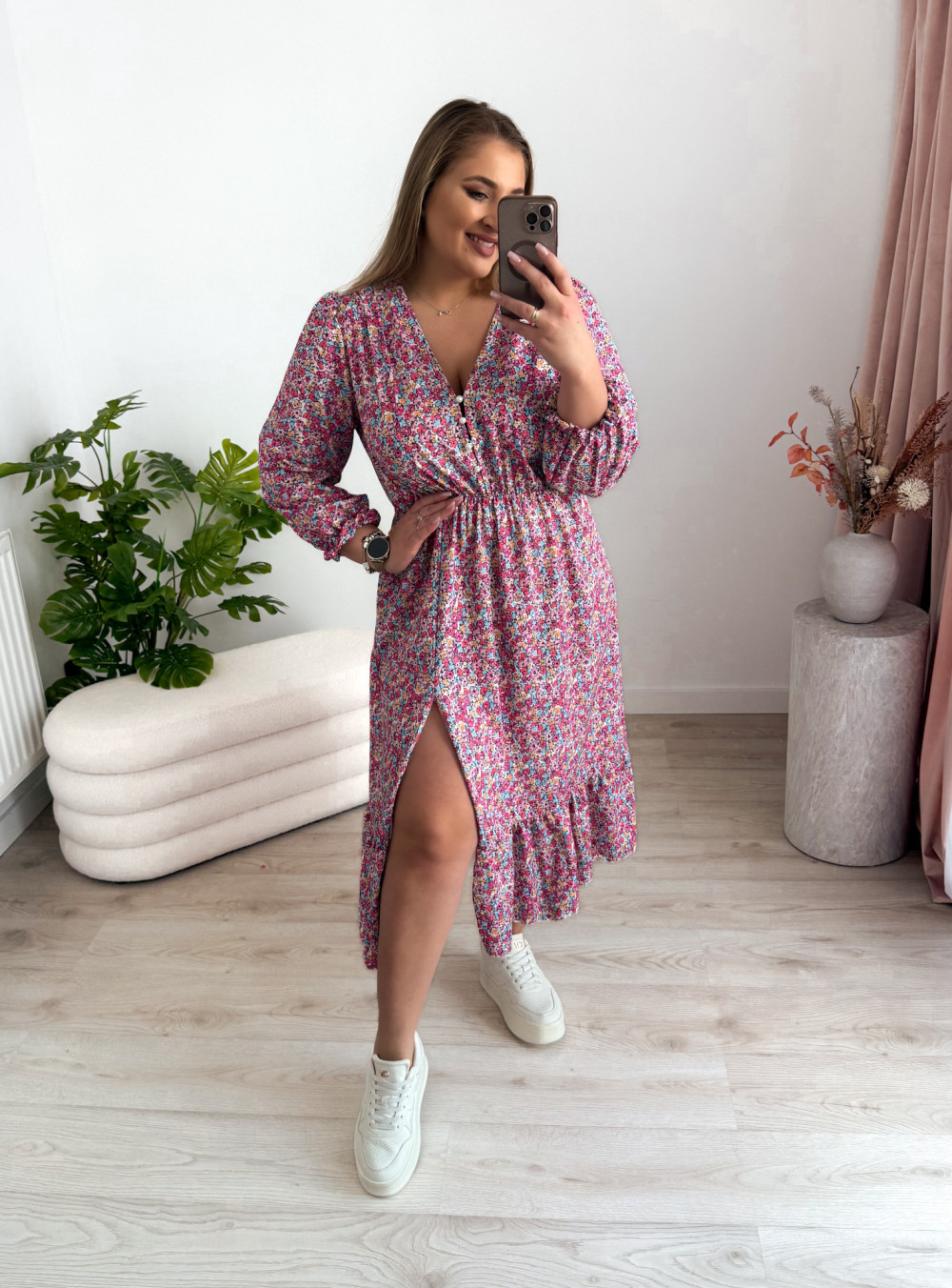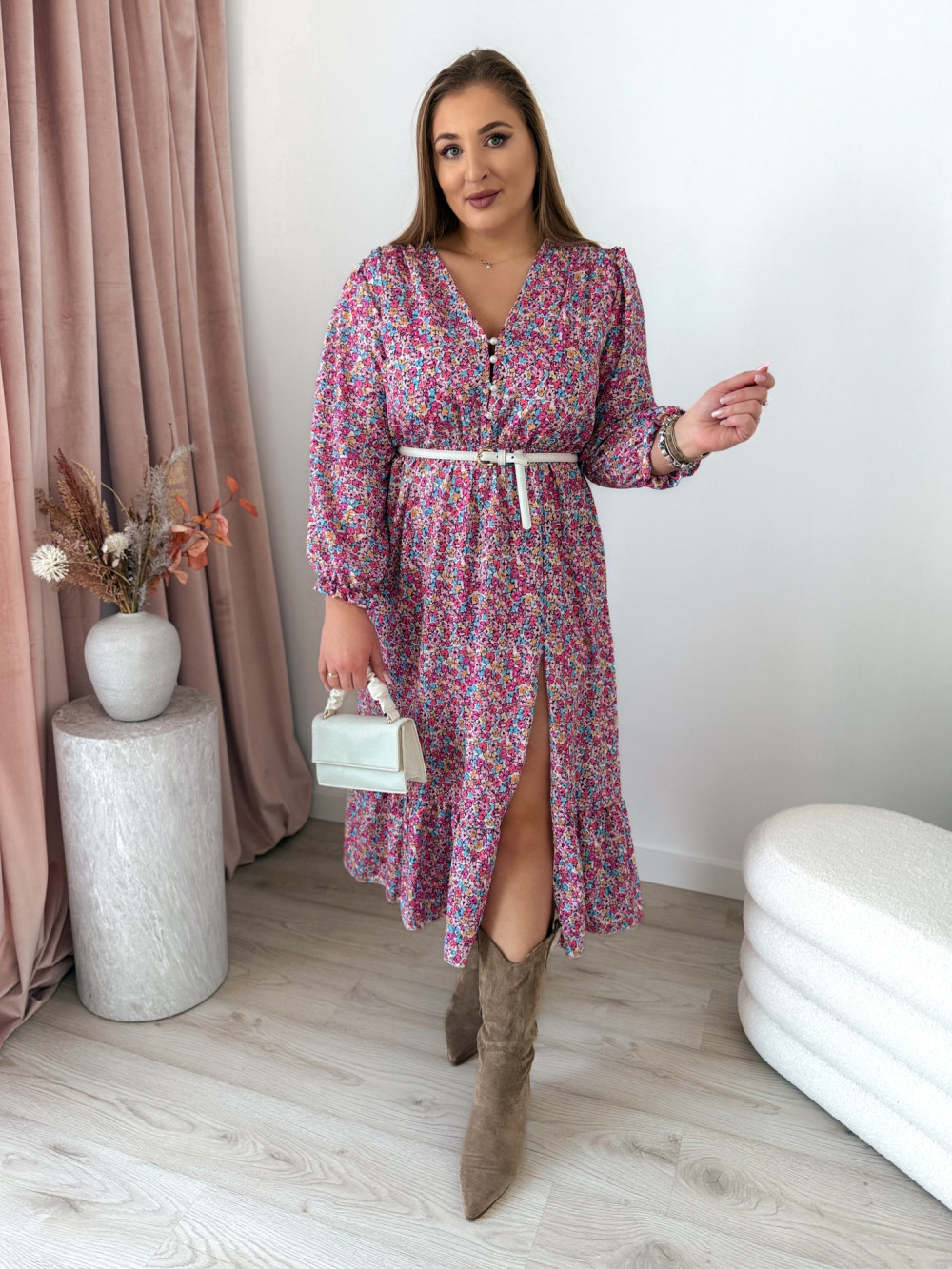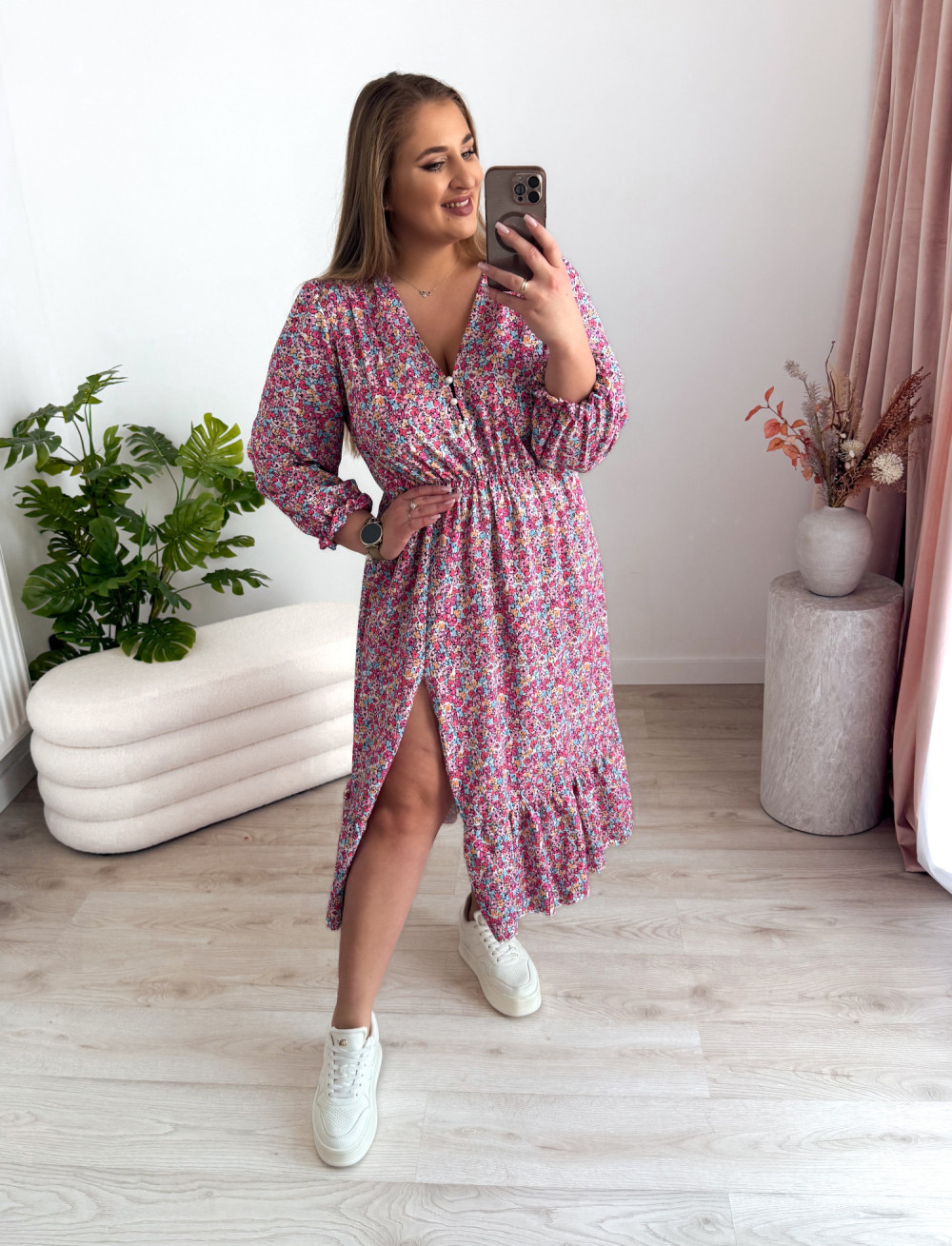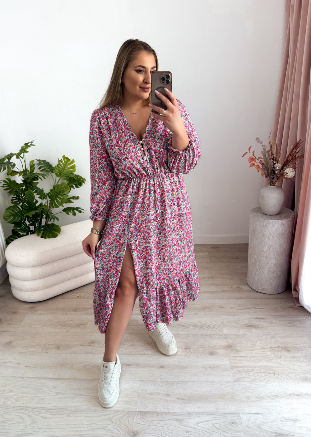 Sukienka midi plus size w drobne kolorowe kwiaty Marcella