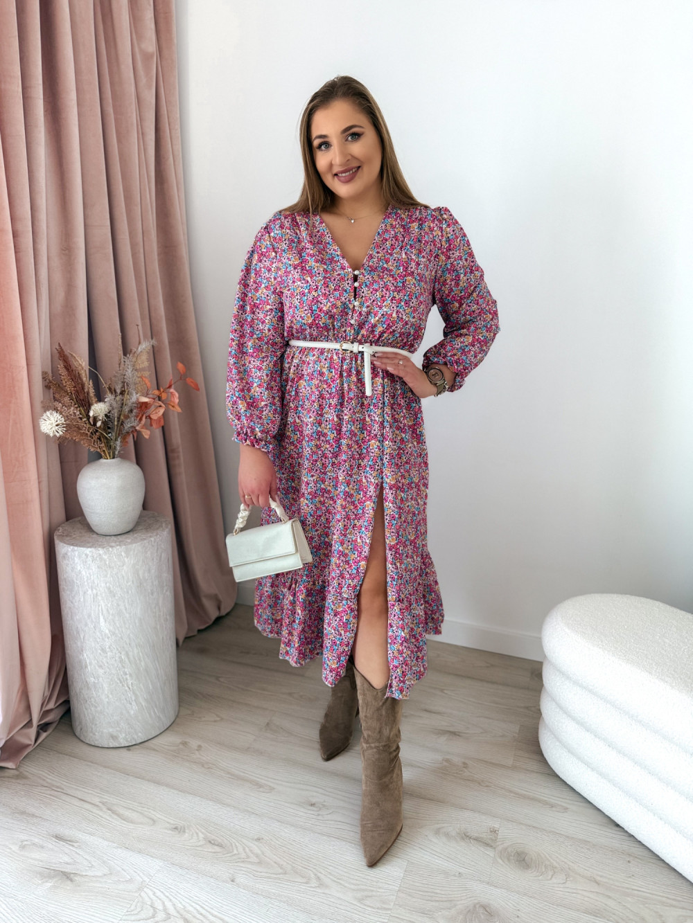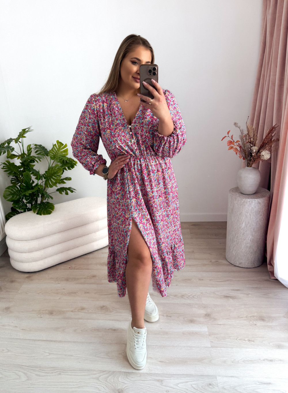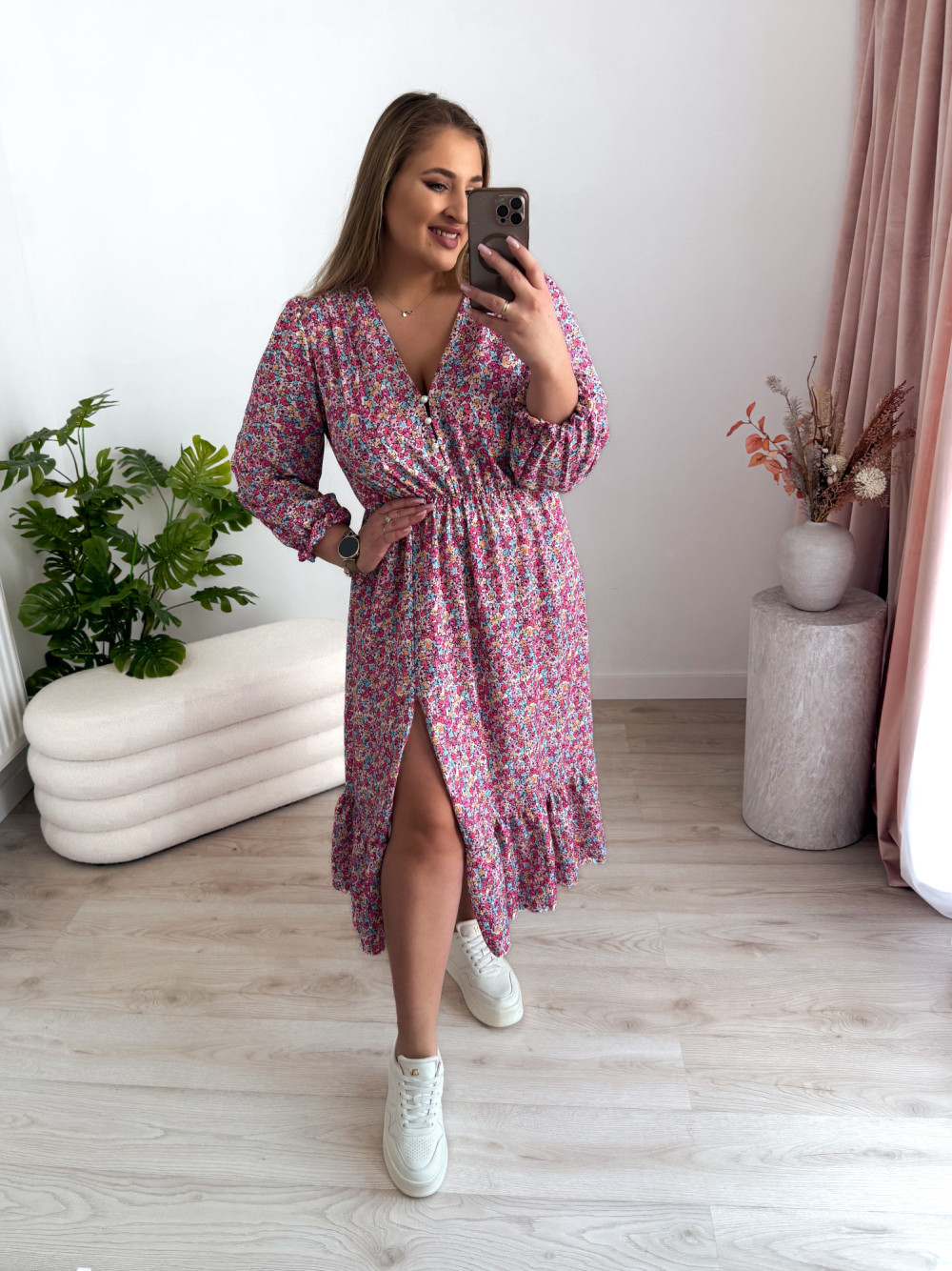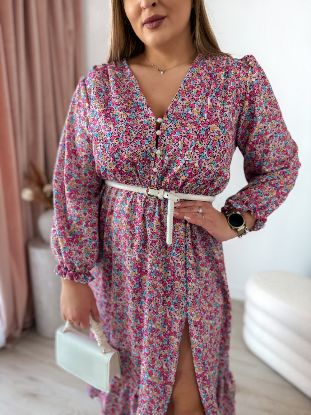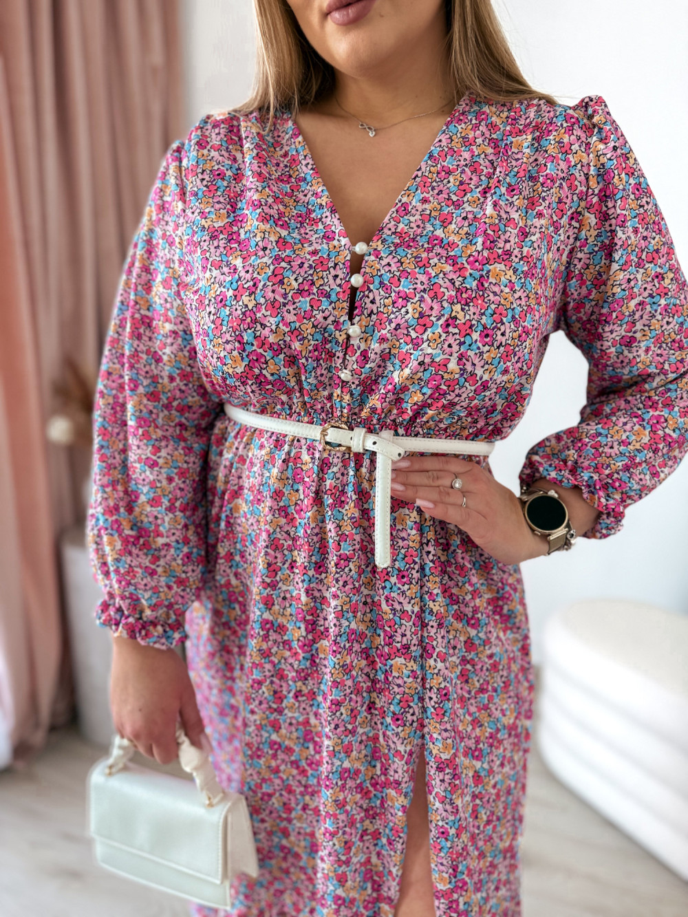 Sukienka midi plus size w drobne kolorowe kwiaty Marcella