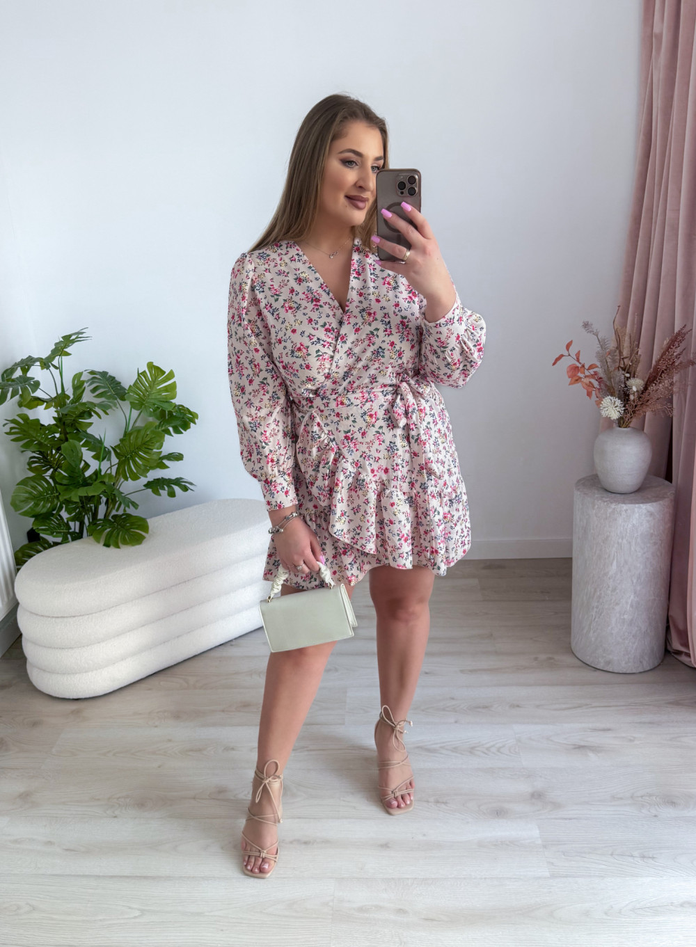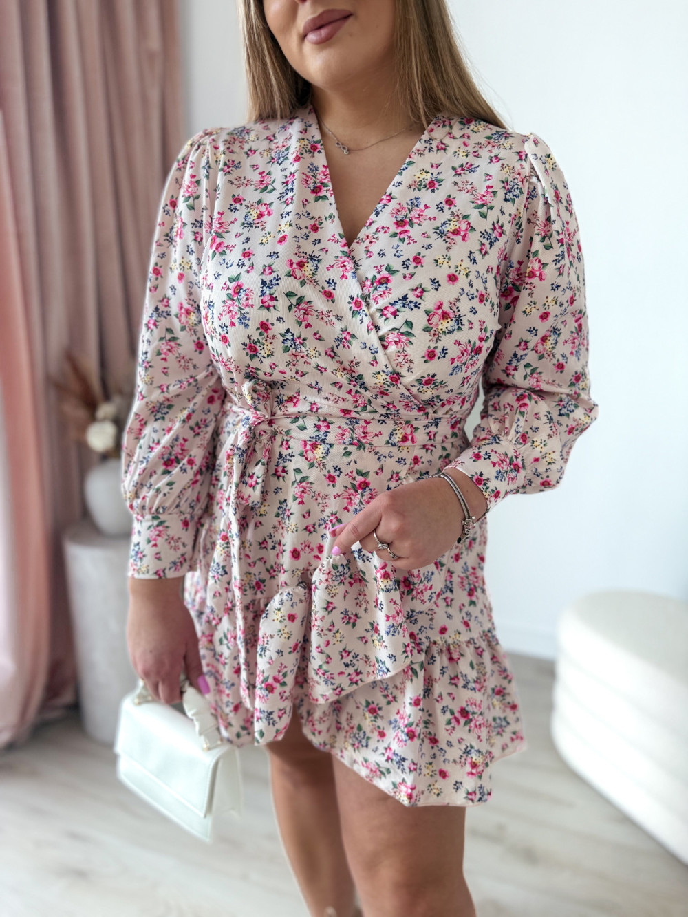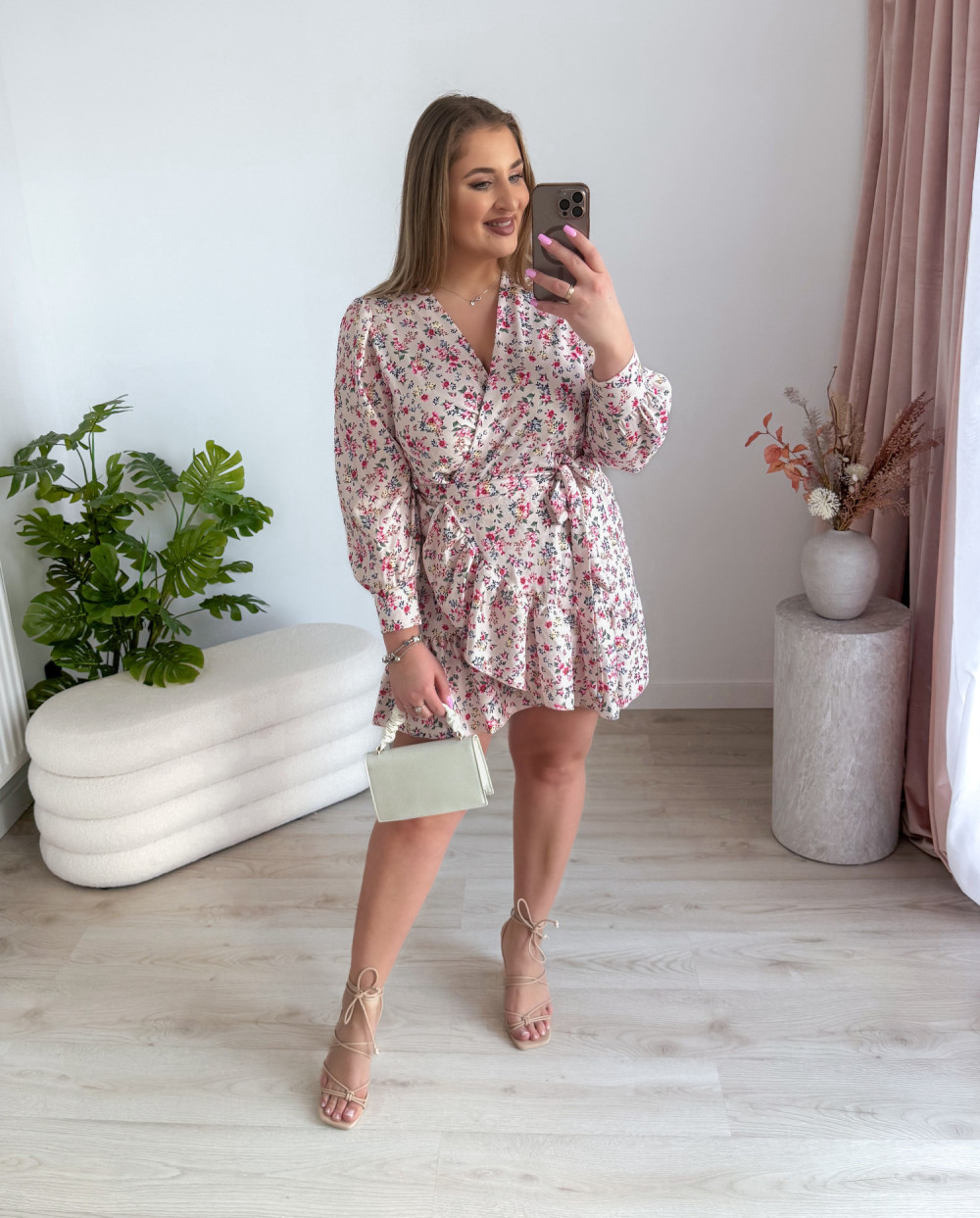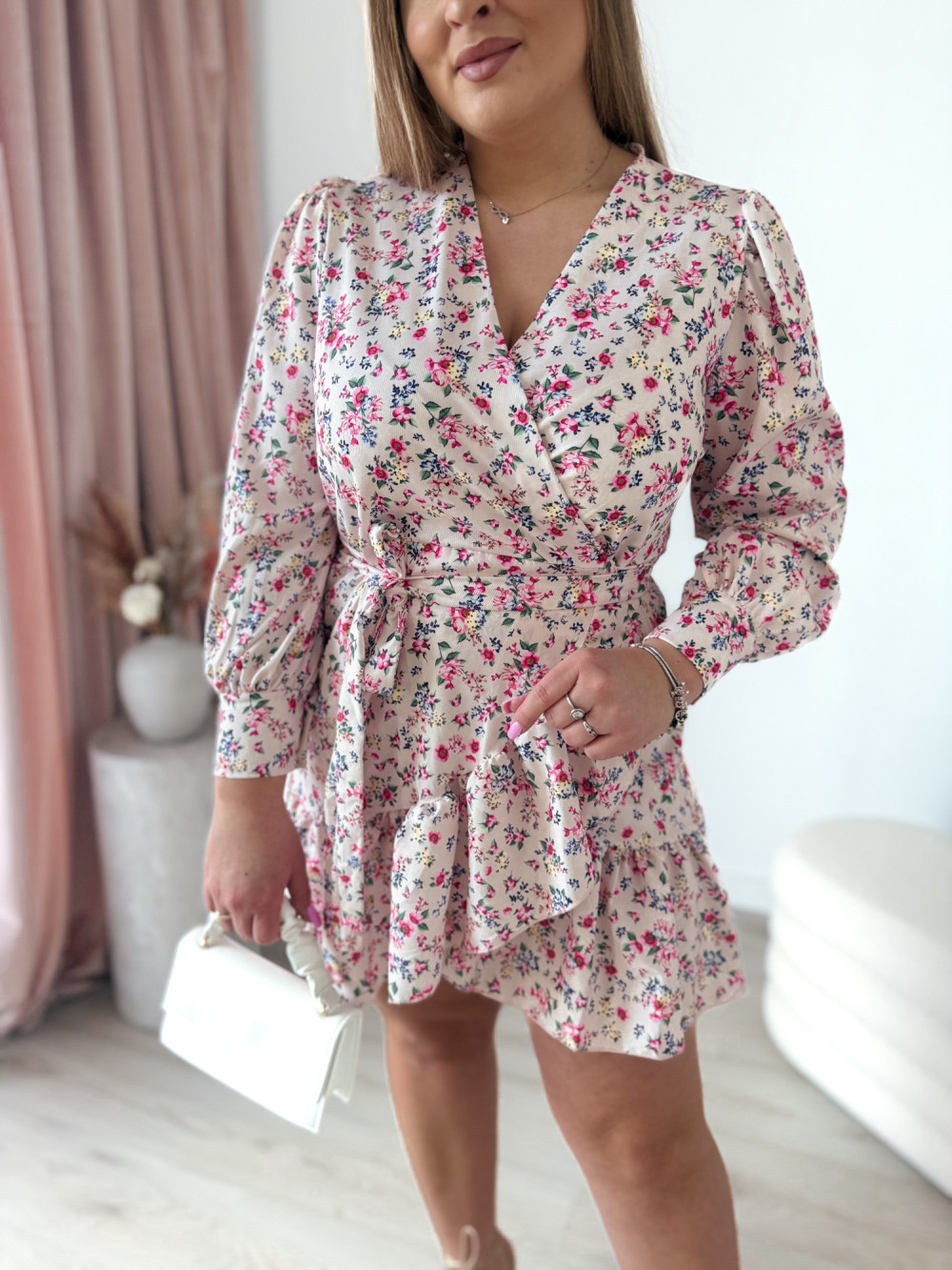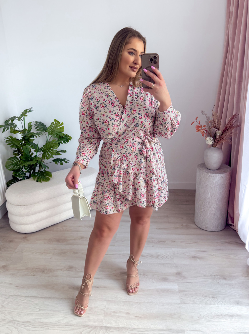 Sukienka zakładana kremowa w kolorowe kwiatki Marley