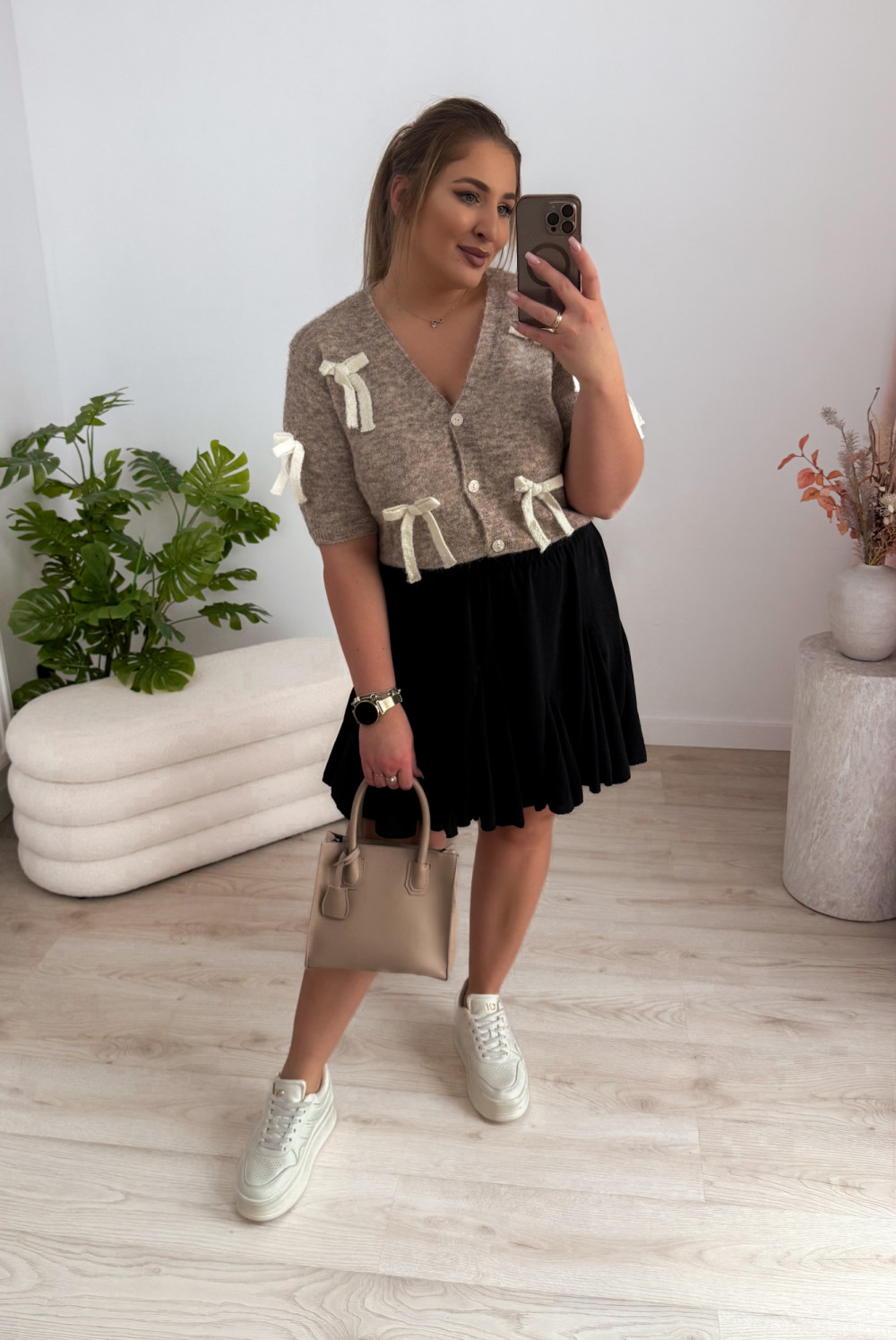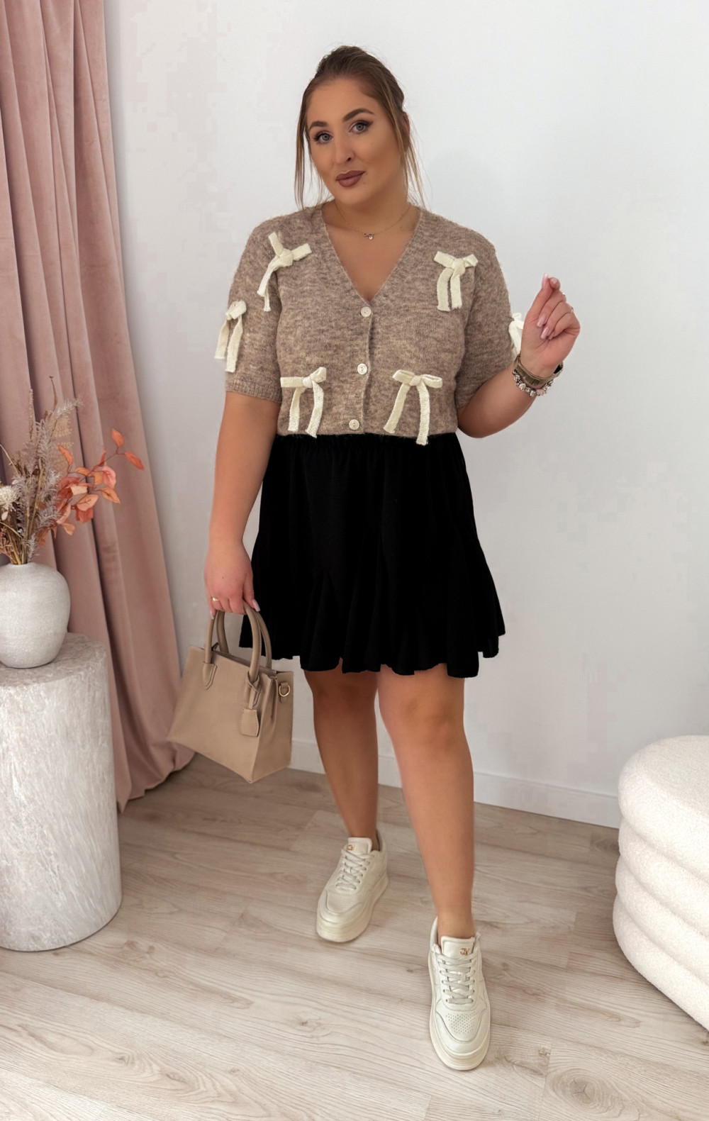 - ozdobne, przyszyte kokardeczki na sweterku