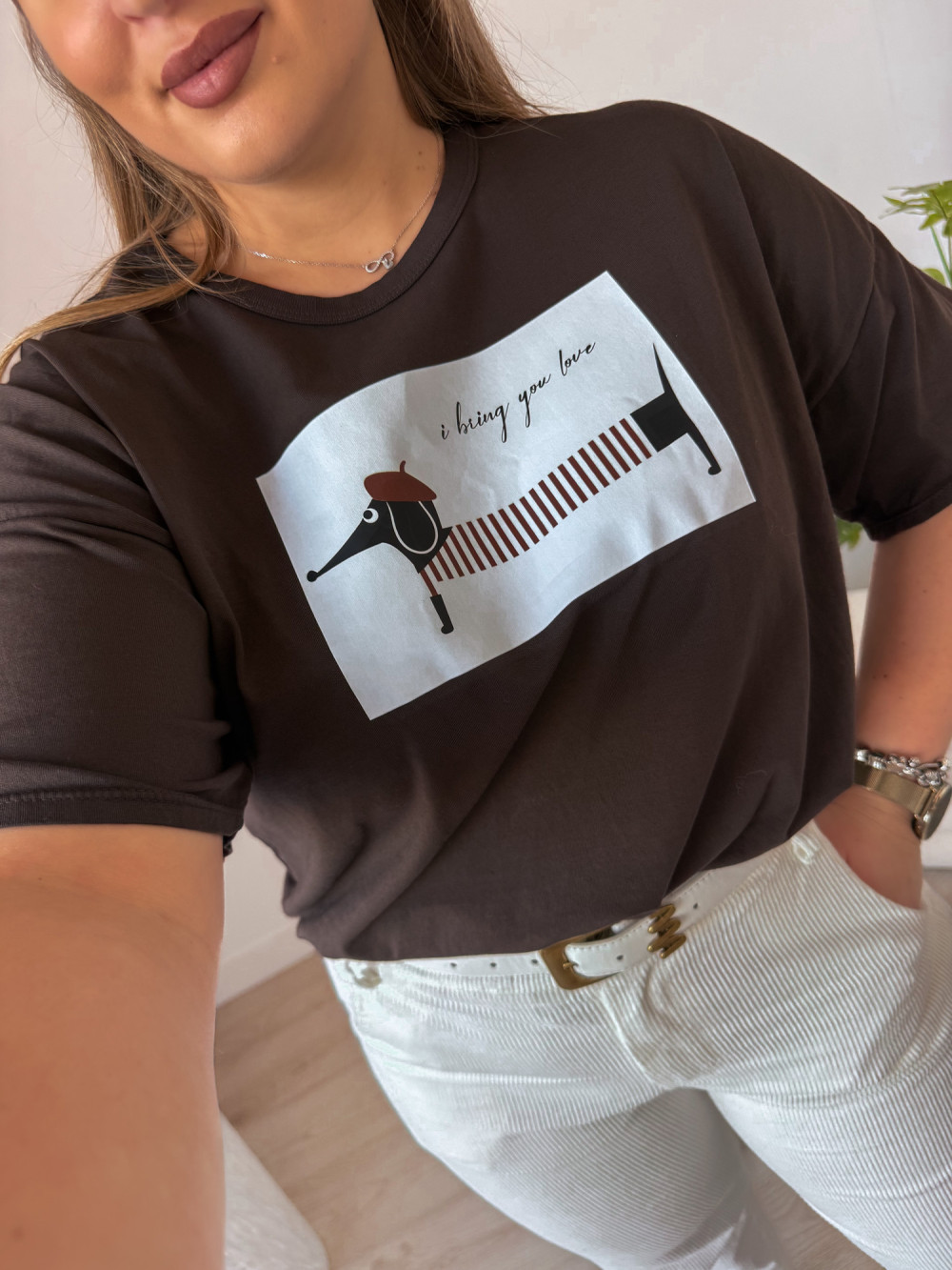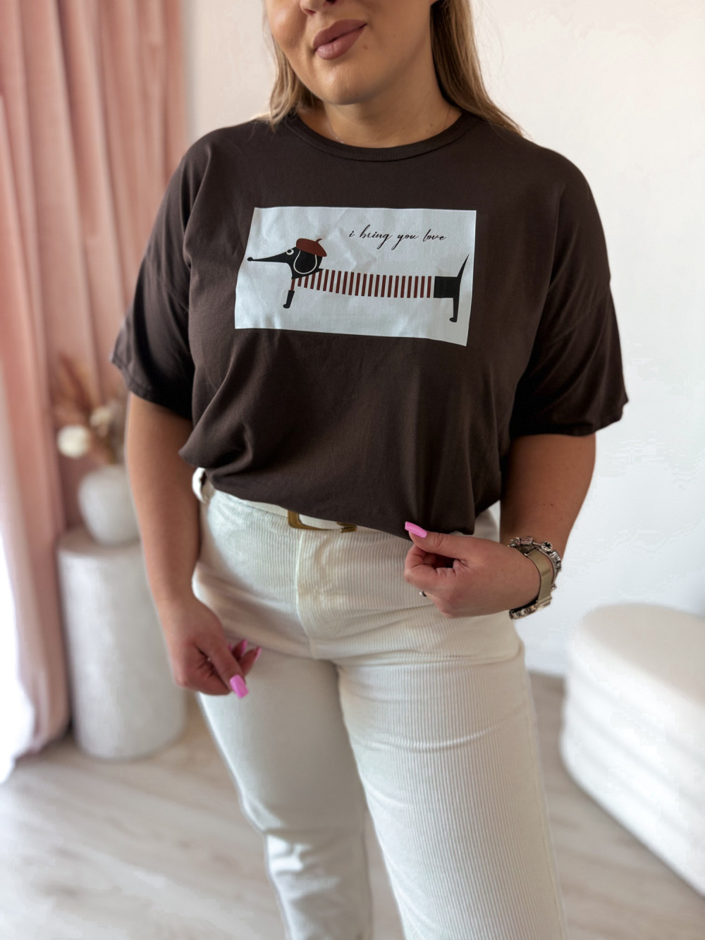 Bluzka z jamnikiem Basotto - czekolada