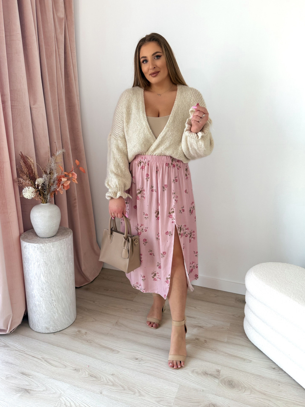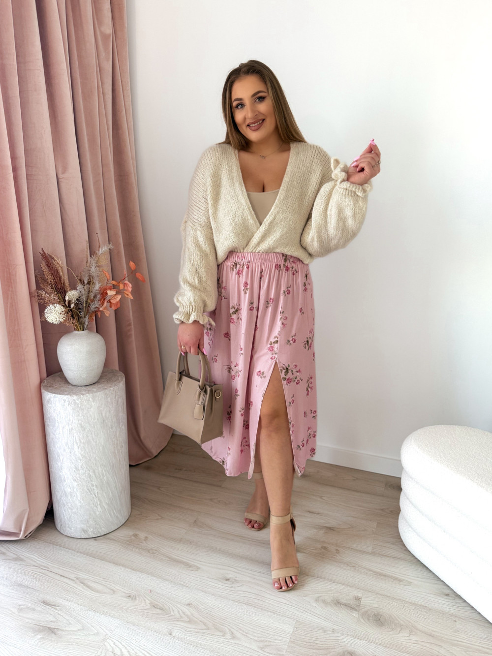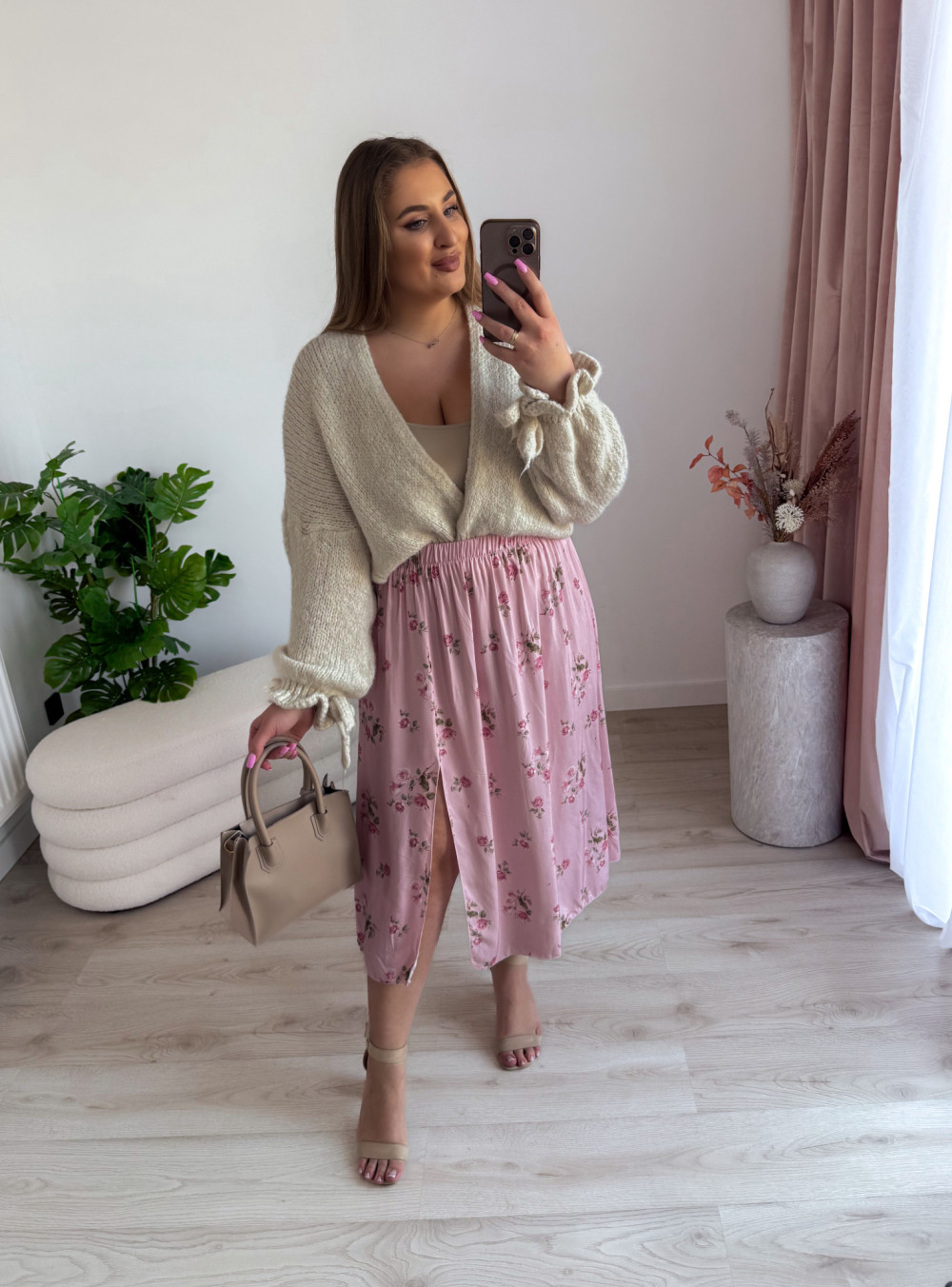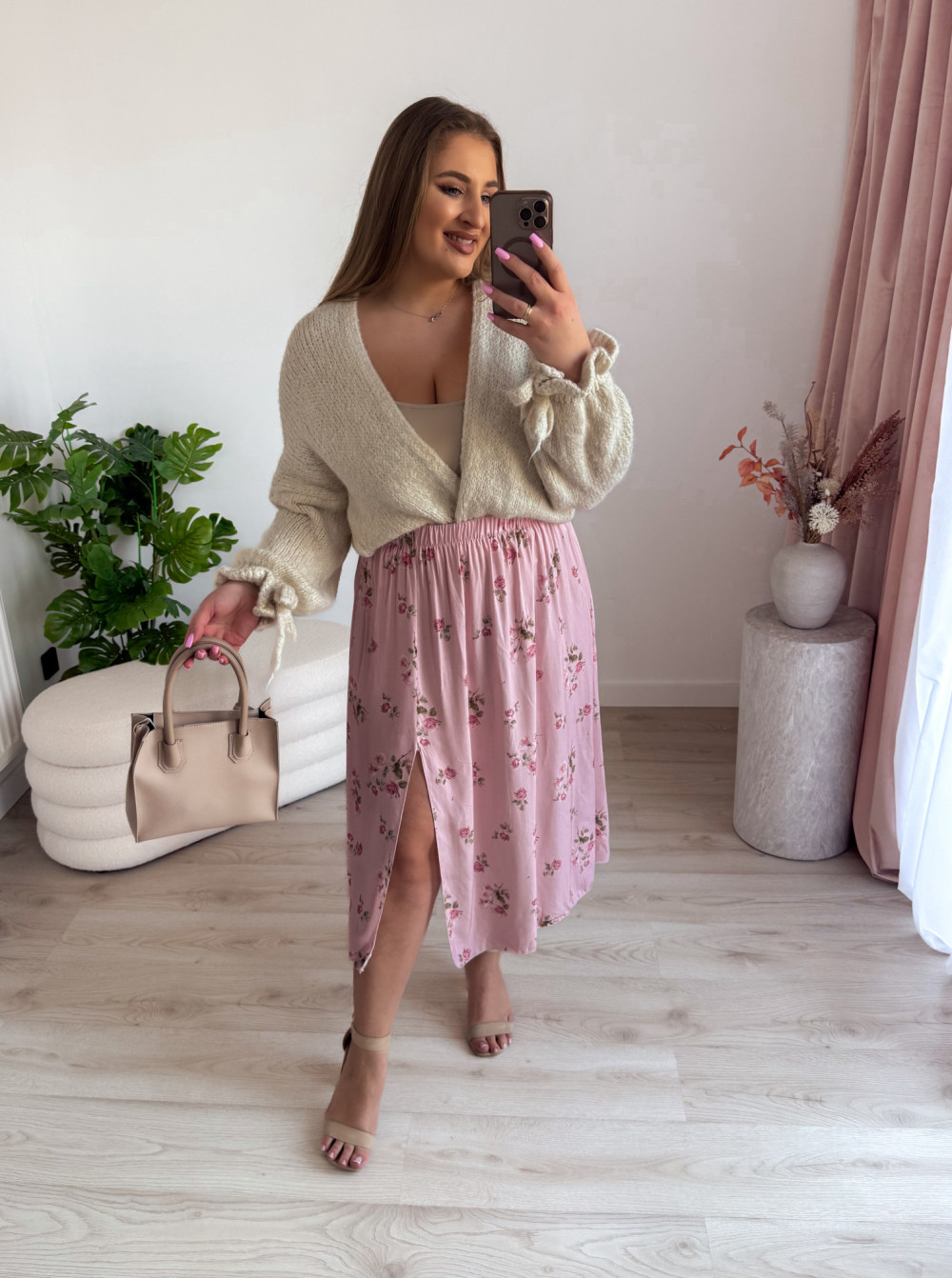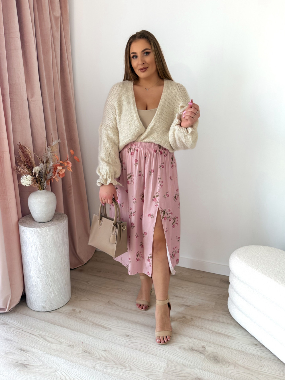 Spódnica z rozcięciem na nodze różowa w kwiatki Lorett