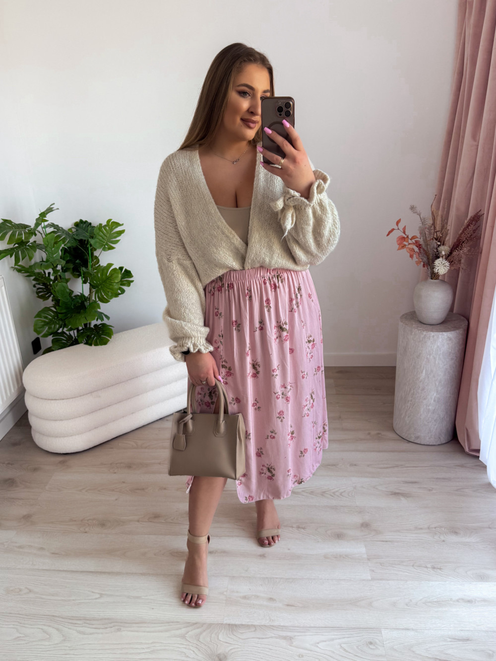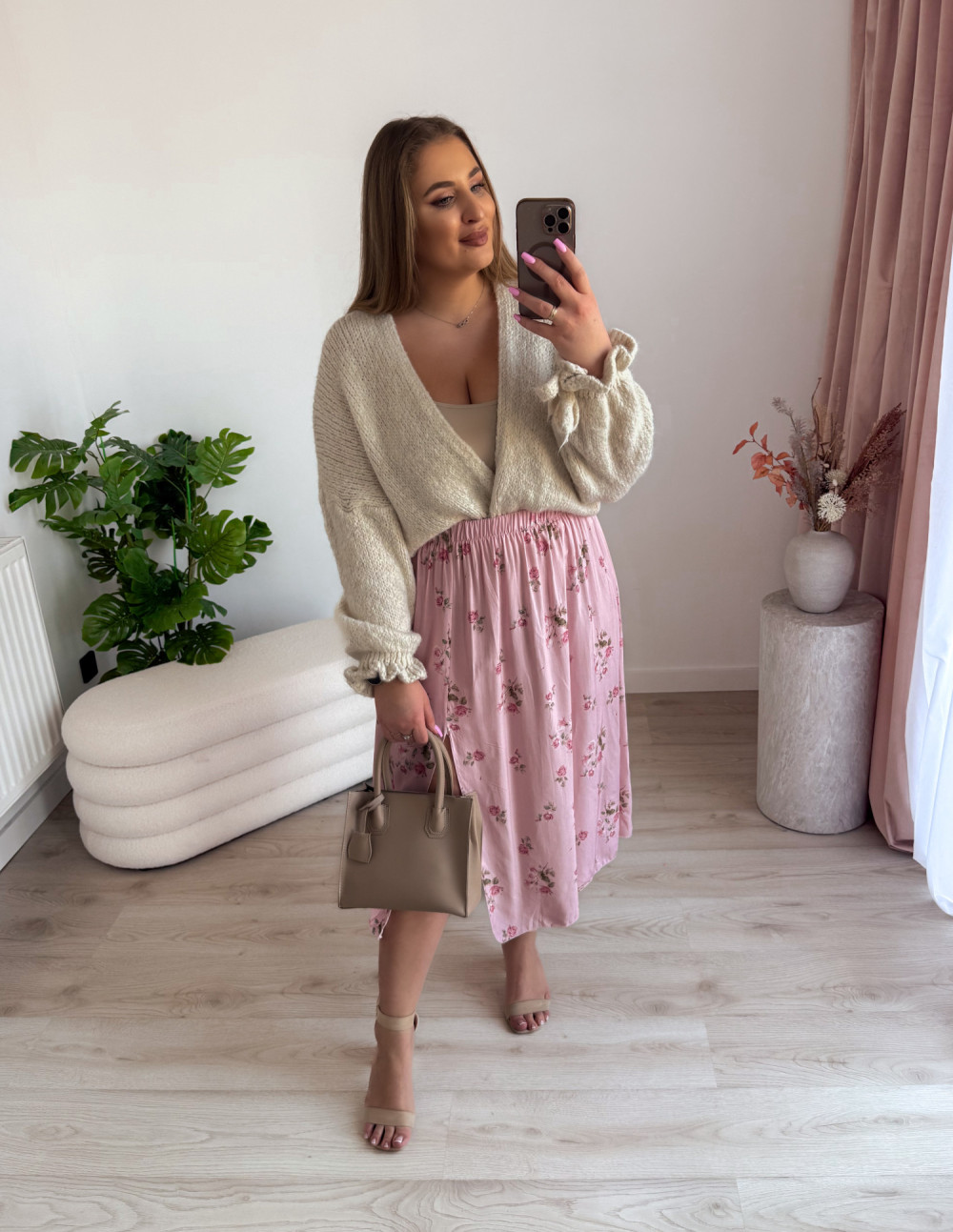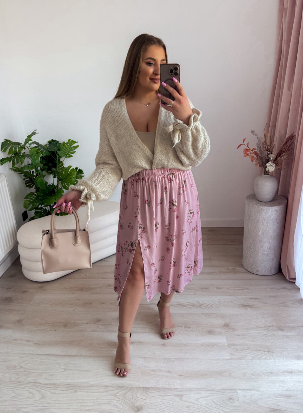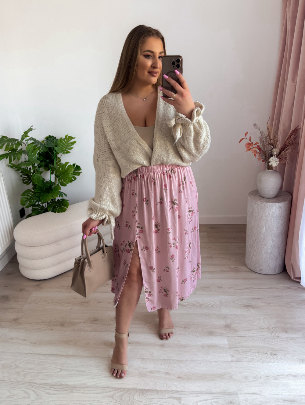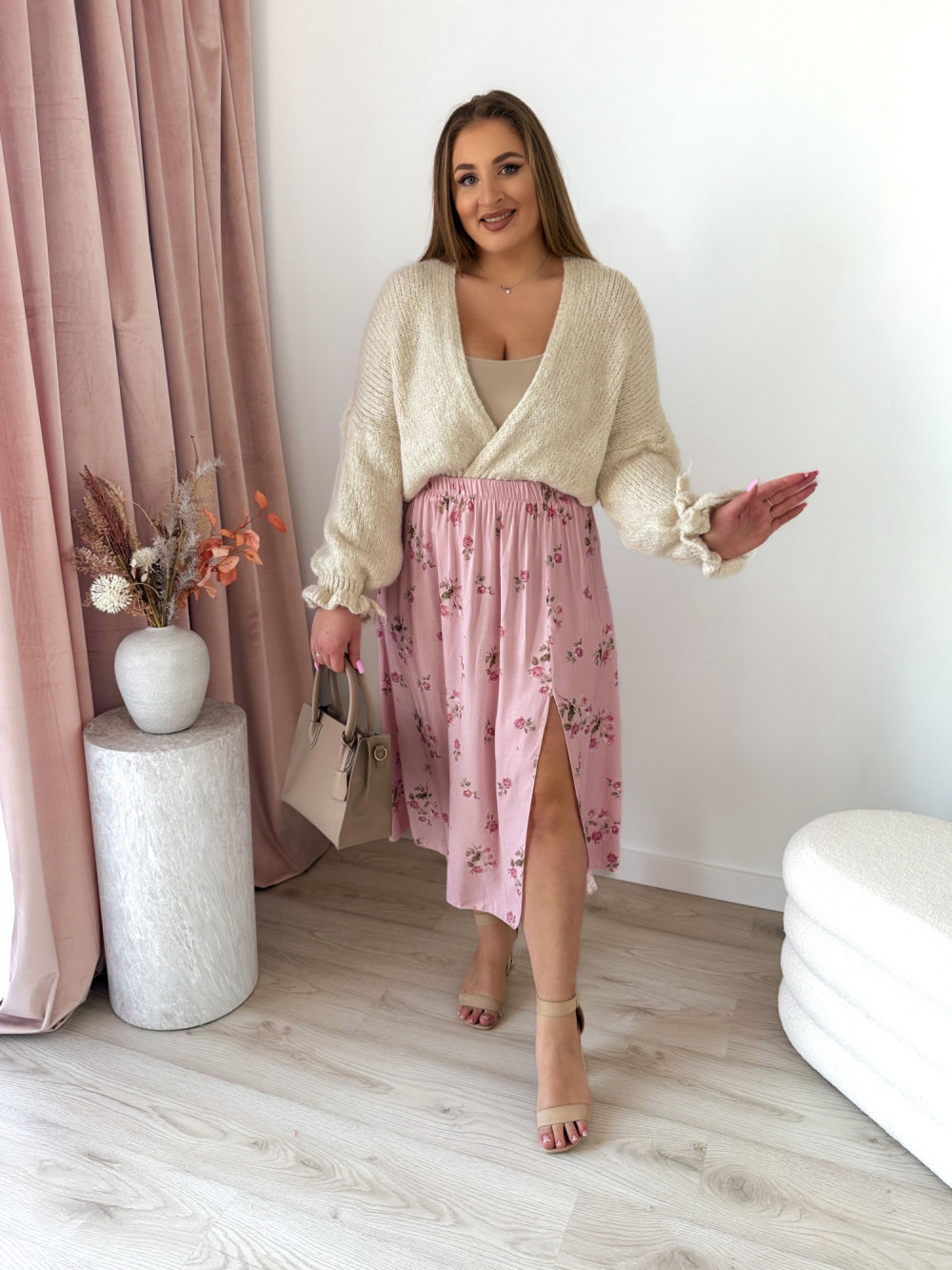 Spódnica z rozcięciem na nodze różowa w kwiatki Lorett