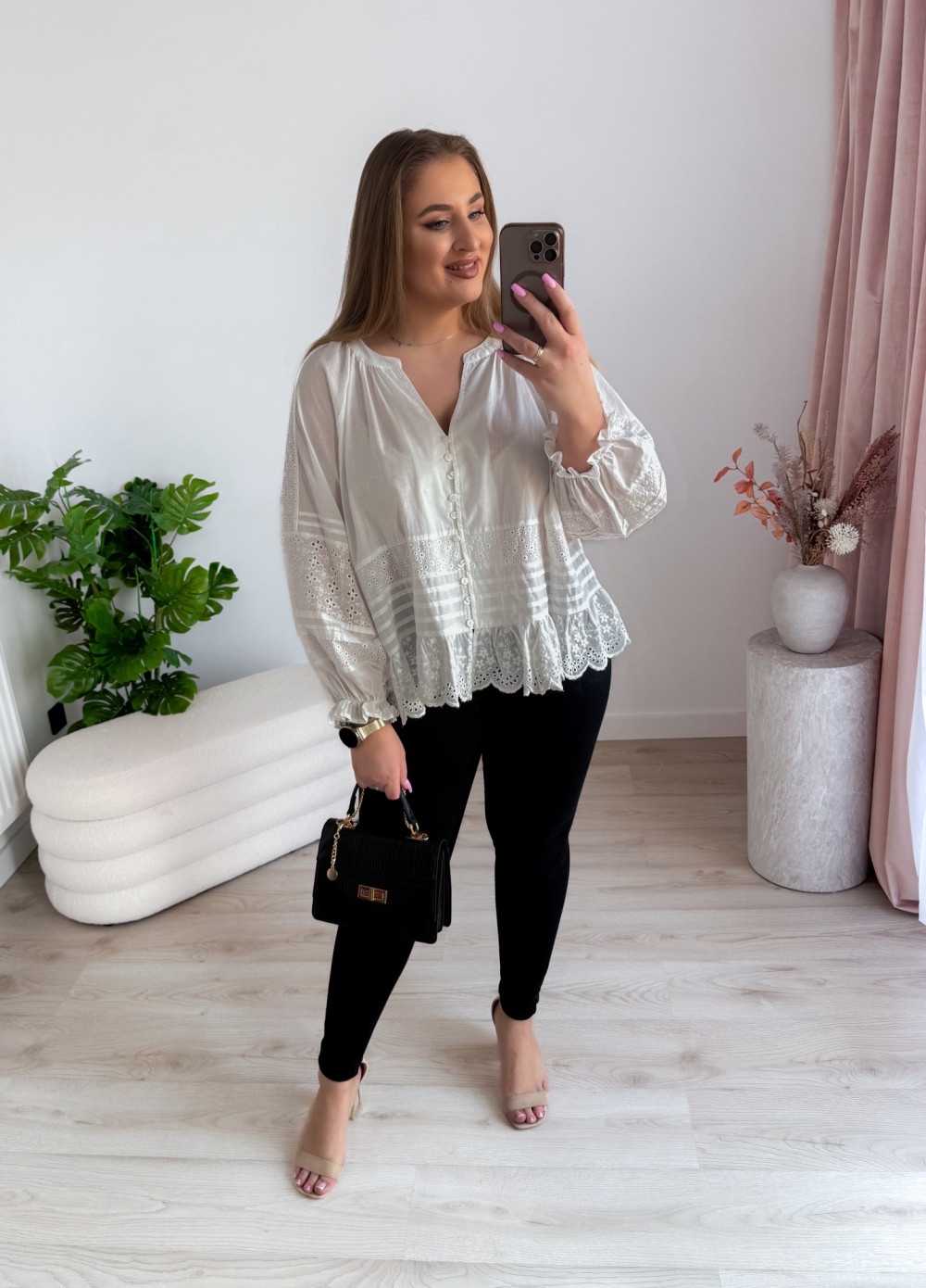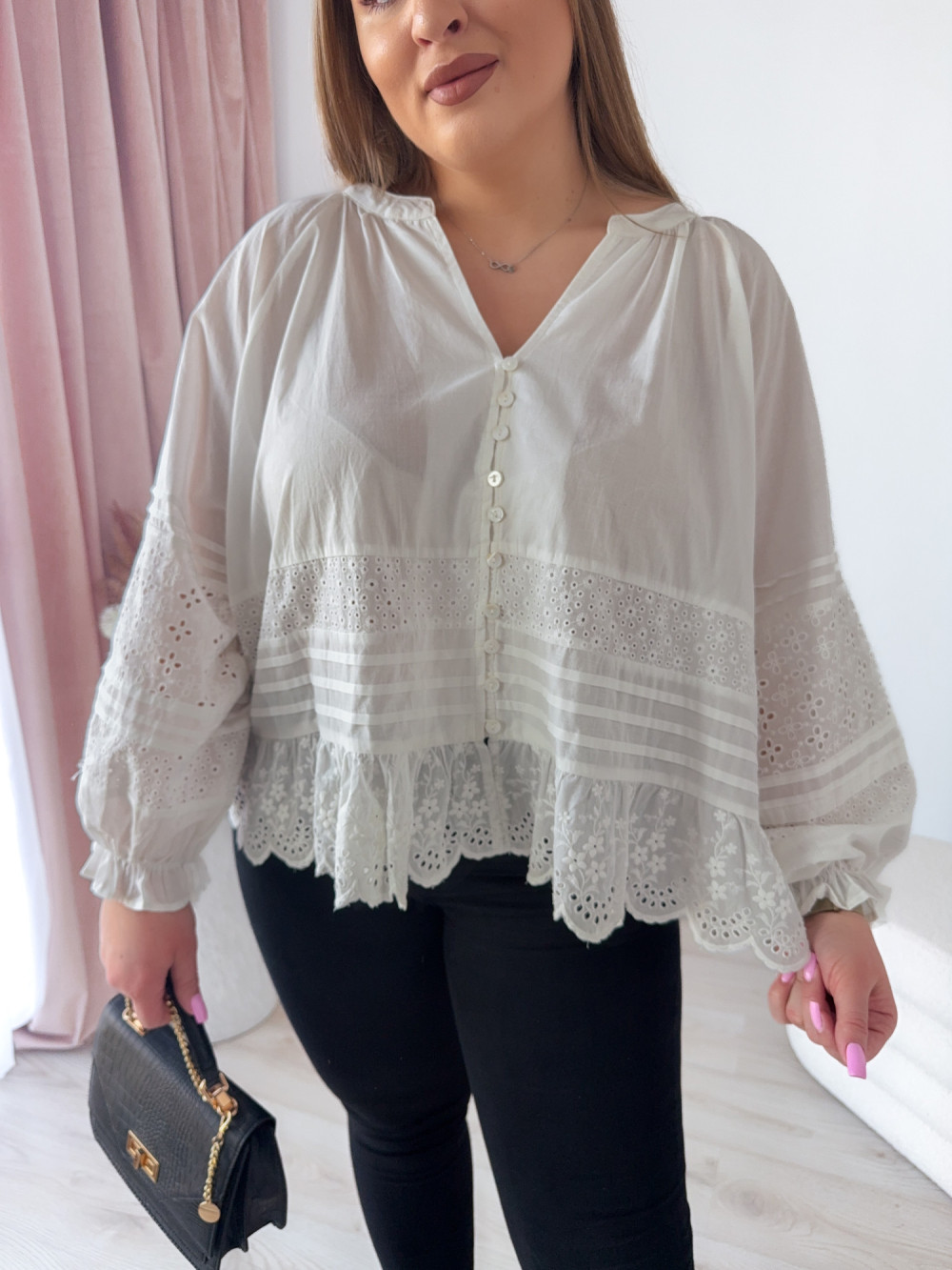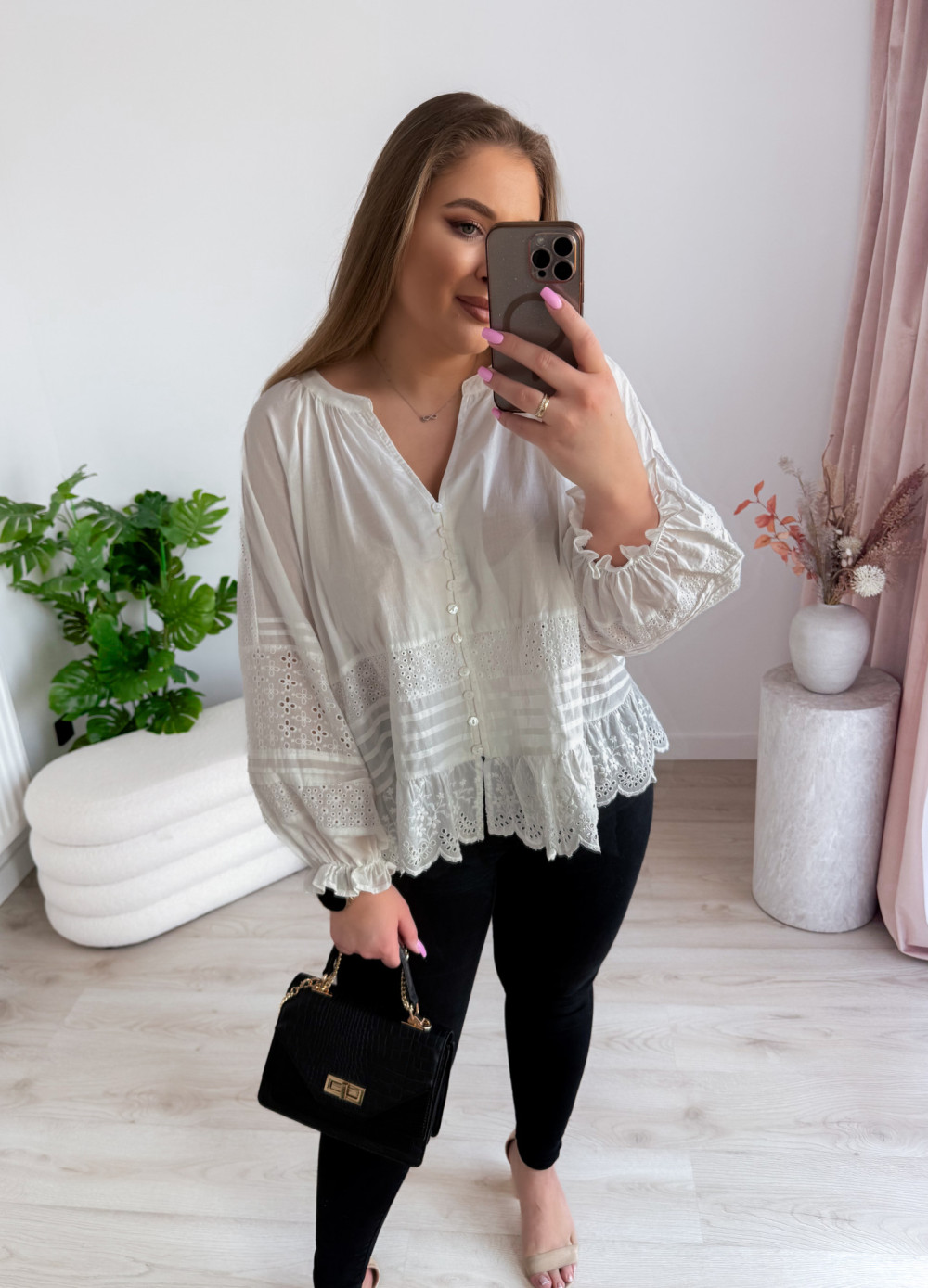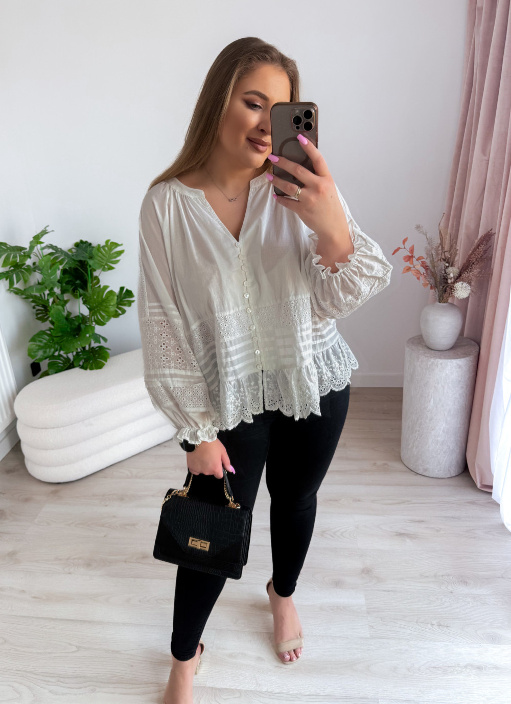 Koszula z koronkowymi wstawkami zapinana na guziki Melty - biała