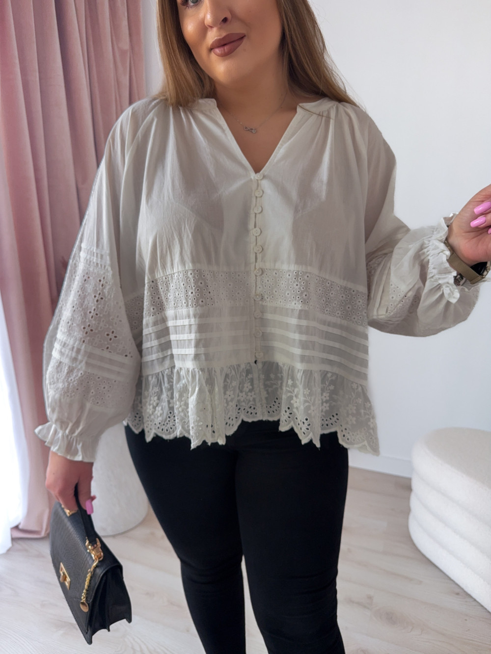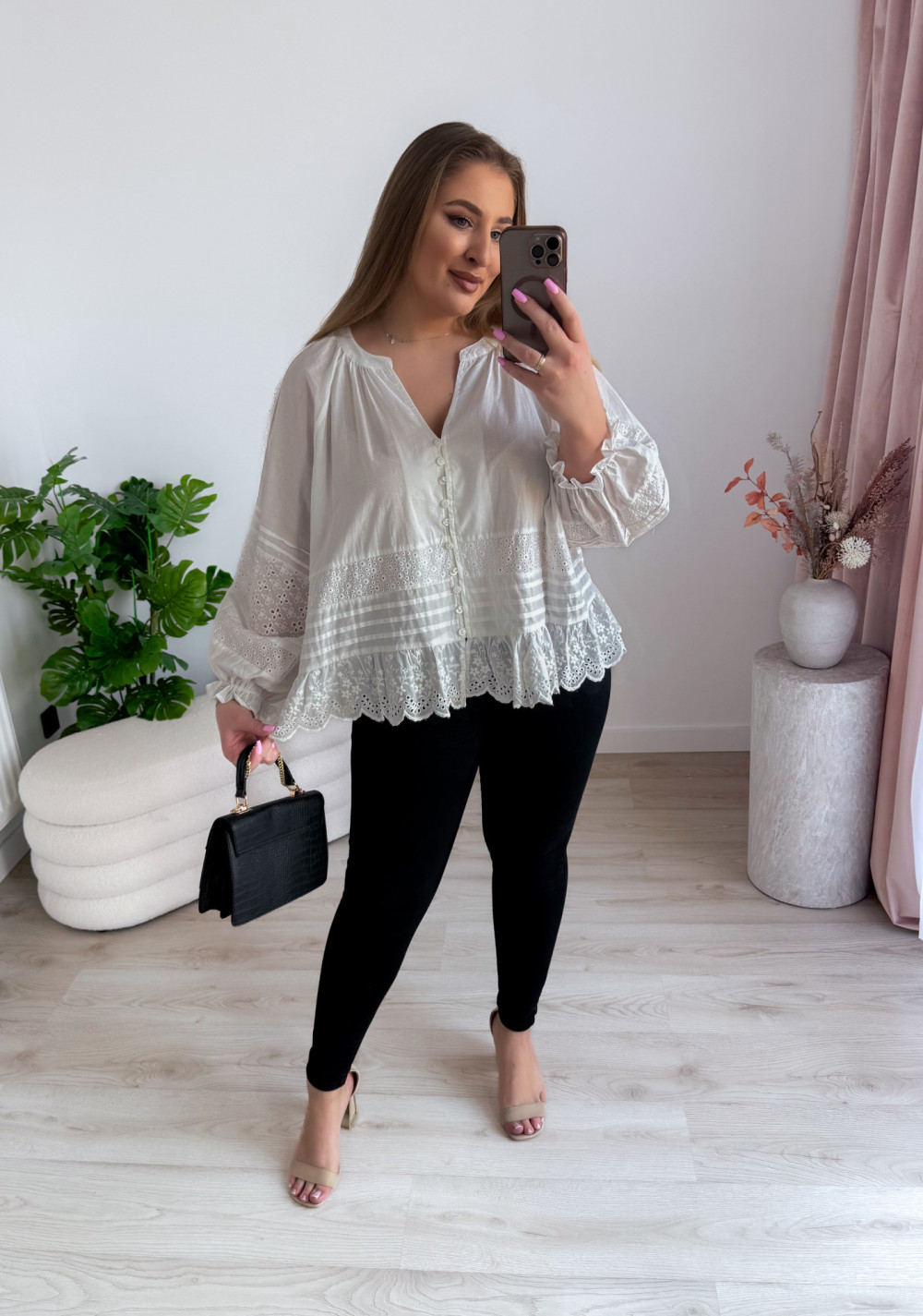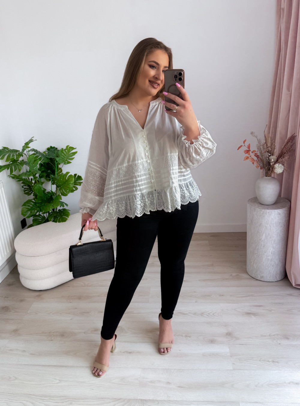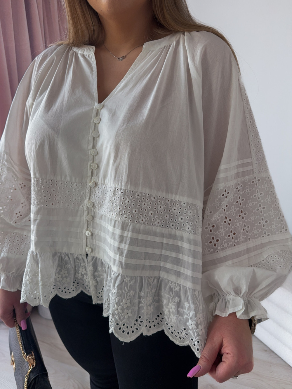 Koszula z koronkowymi wstawkami zapinana na guziki Melty - biała