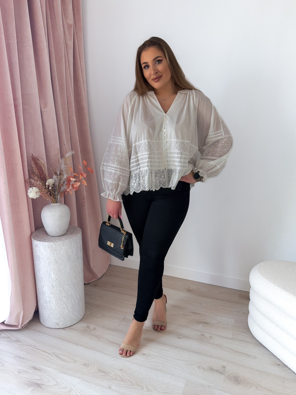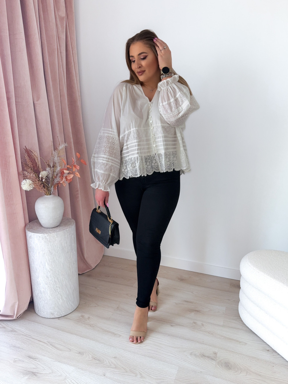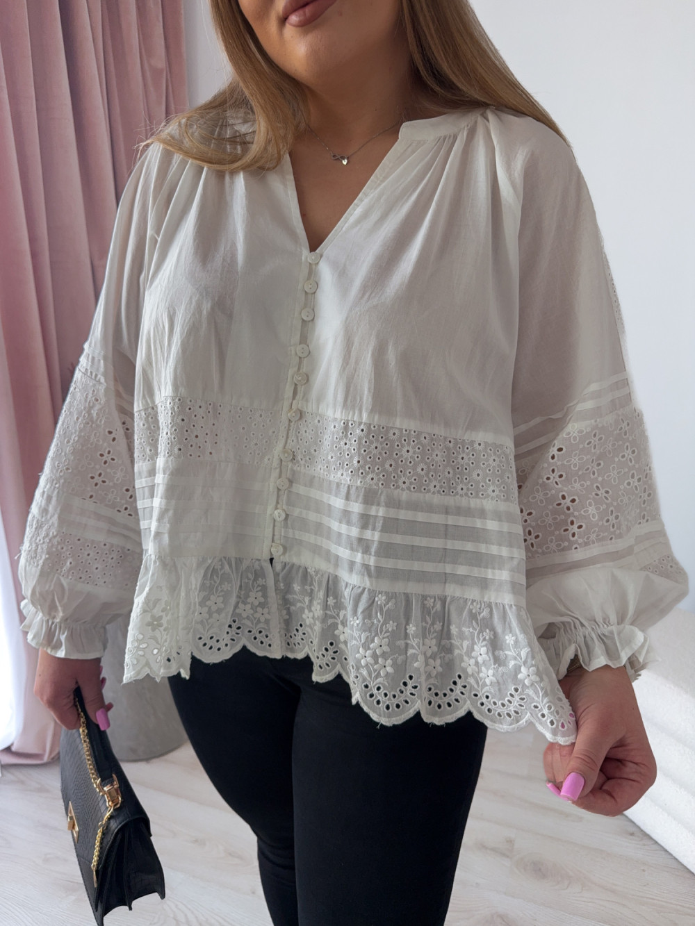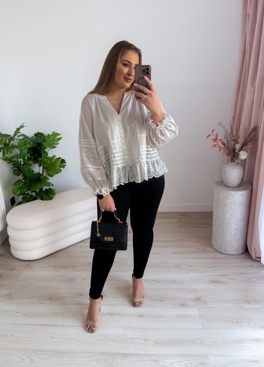 Koszula z koronkowymi wstawkami zapinana na guziki Melty - biała