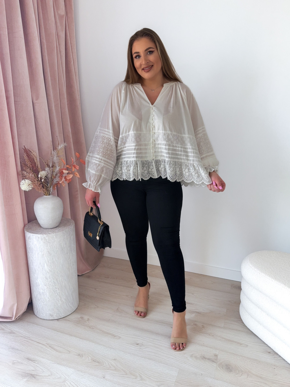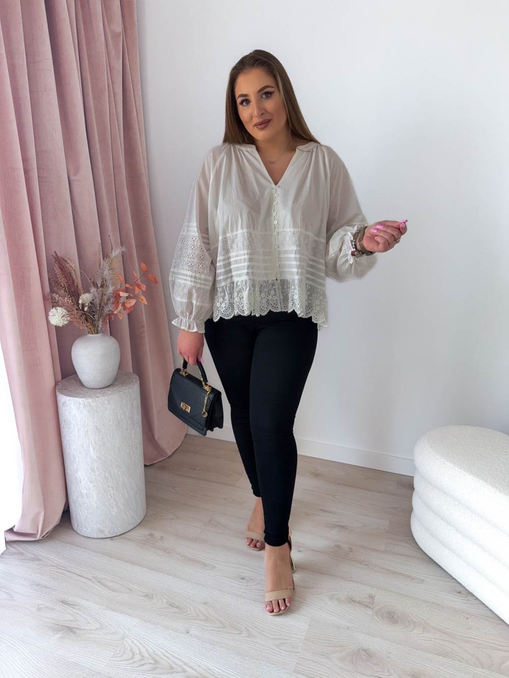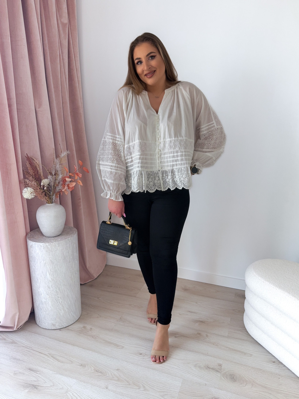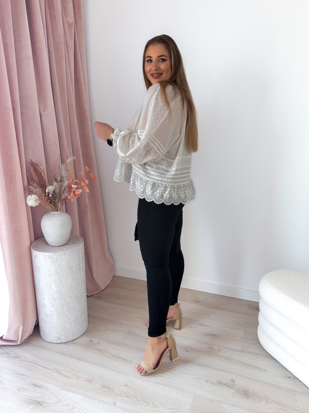 Koszula z koronkowymi wstawkami zapinana na guziki Melty - biała